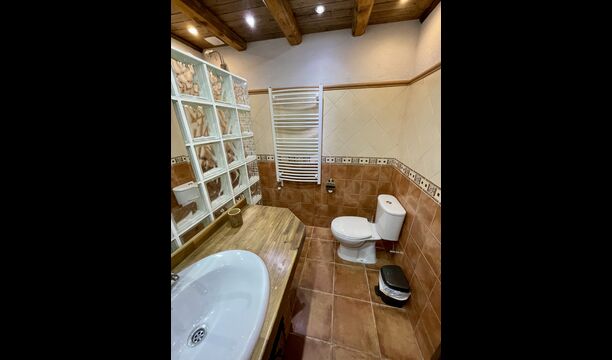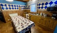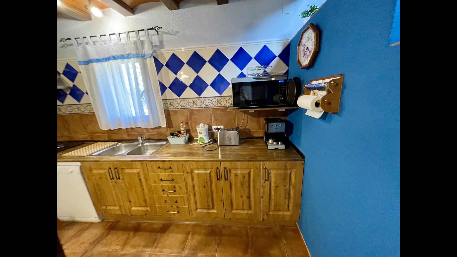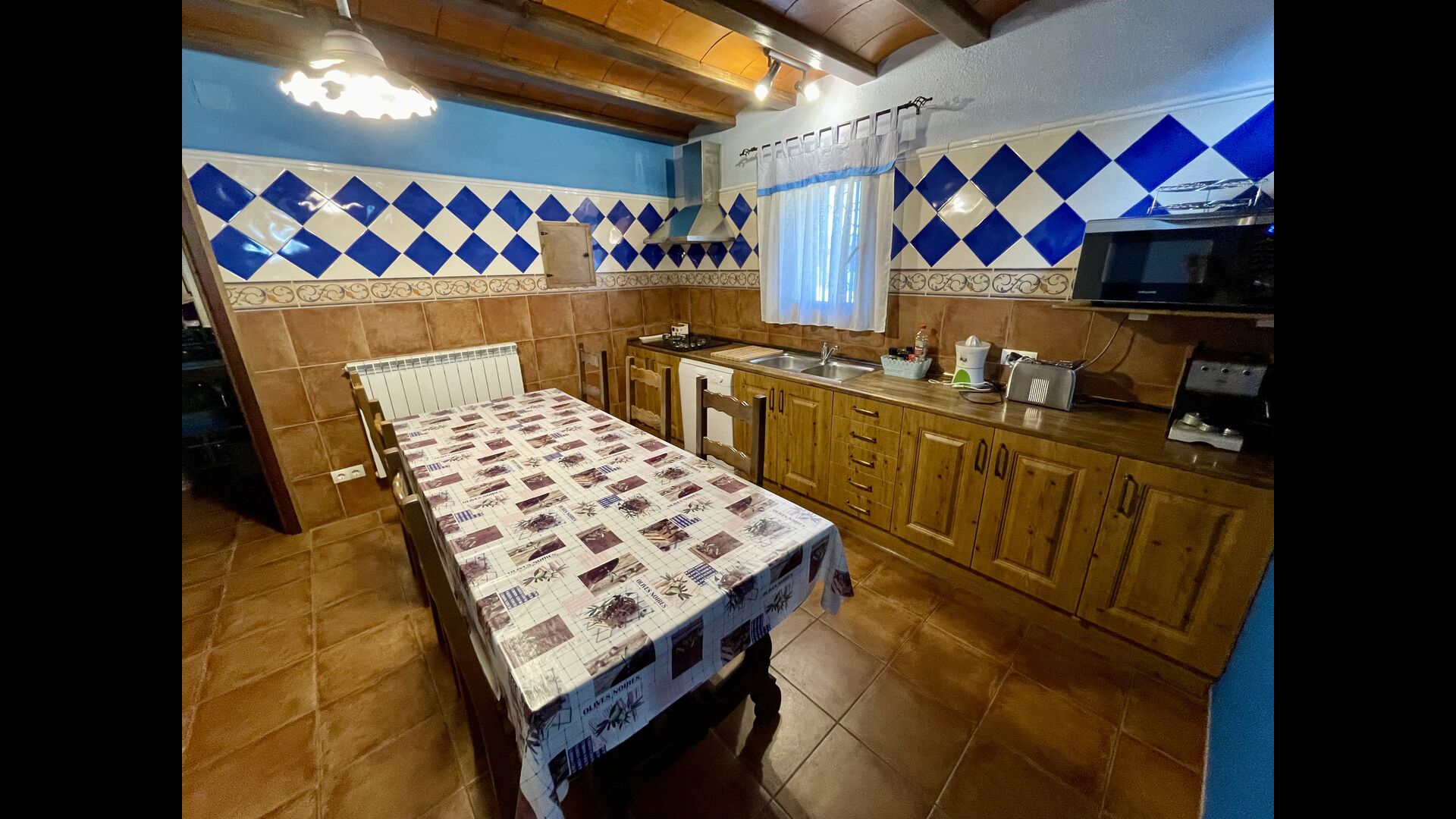 Im Erdgeschoss finden Sie den Küchen-Essbereich, wo Sie in einer kühlen, ruhigen Atmosphäre am Esstisch essen können. Die Küche selbst ist mit allen notwendigen Utensilien ausgestattet – ein Toaster, eine Saftpresse, alle wichtigen Utensilien, ein Geschirrspüler, eine Mikrowelle und ein Backofen mit Herd.