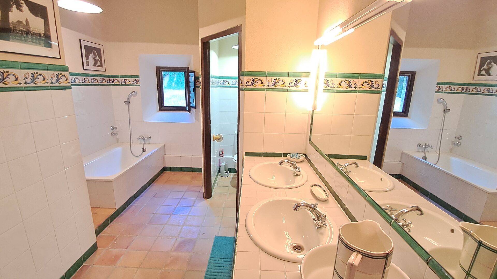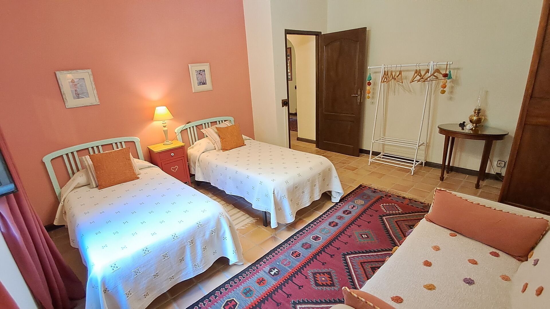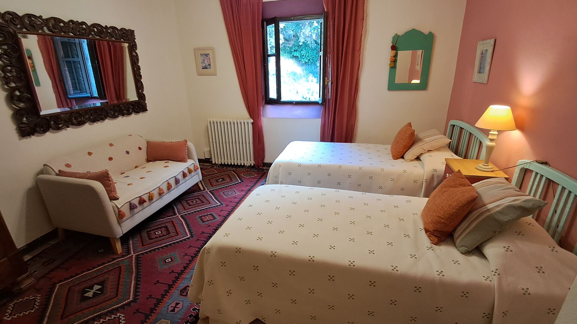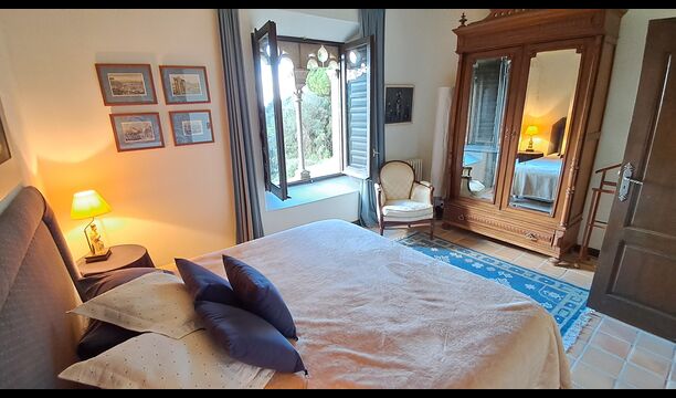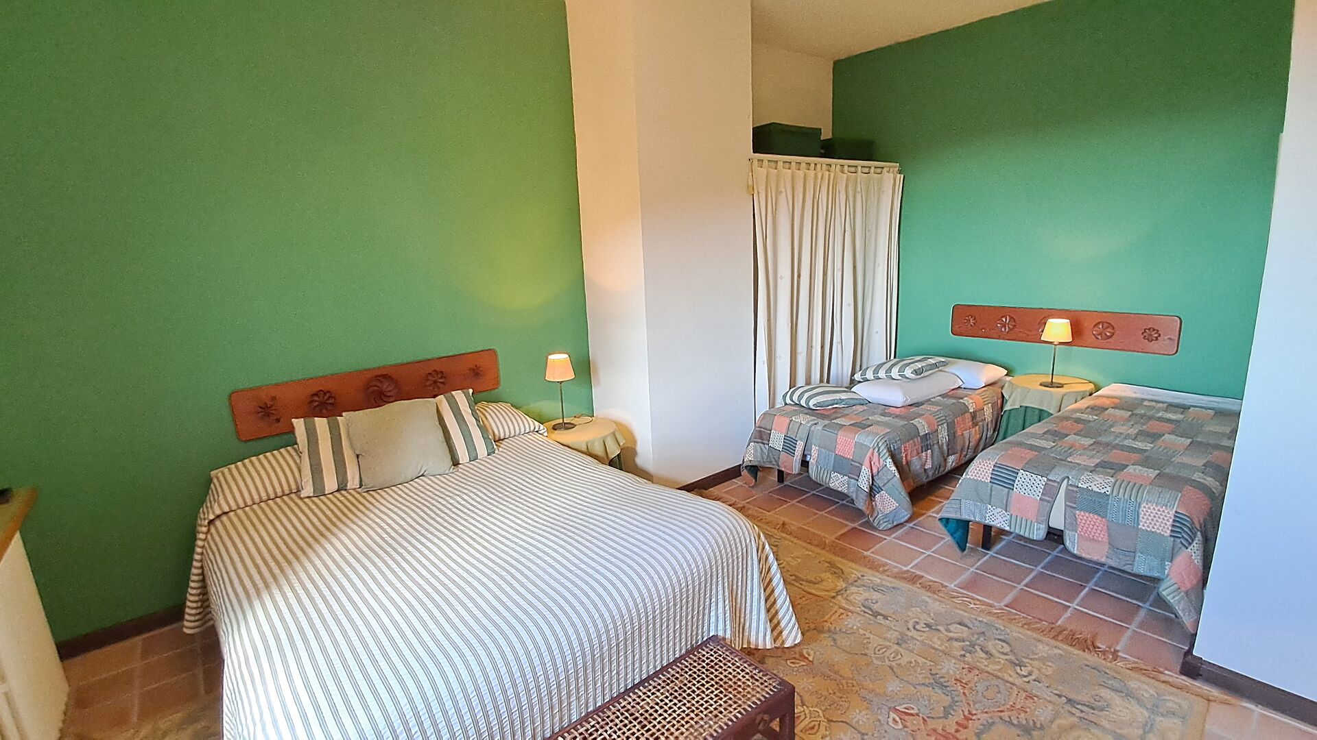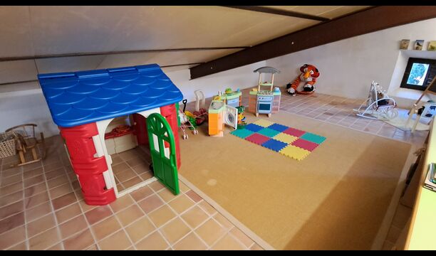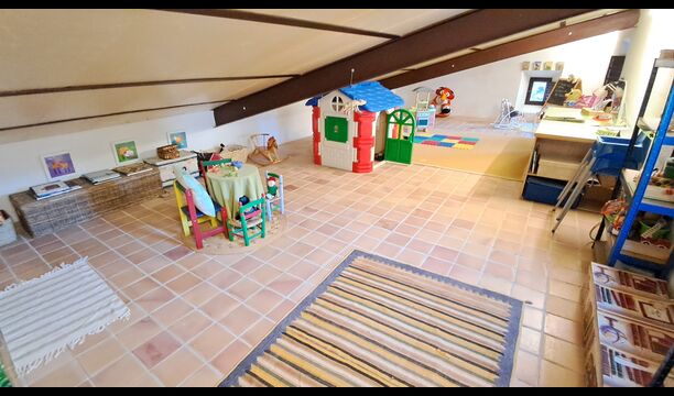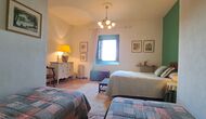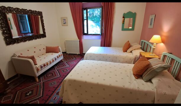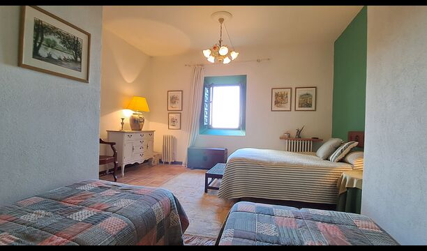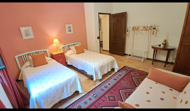 Wenn Sie sich vorstellen können, hier Ihren Urlaub zu verbringen, erwartet Sie ein traumhaftes Ferienhaus. Sie haben eine gemütliche Küche mit sehr hohem Standard. Der Ehemann von Patricia ist Küchendesigner, daher wurde der Herd speziell für das Haus angefertigt. Die Küche ist generell fantastisch, wenn Sie gerne kochen. Es gibt außerdem ein sehr schönes Esszimmer mit direktem Zugang zum Garten. Dort befindet sich eine große, überdachte Terrasse, ideal zum Essen im Freien, und bequeme Sofas zum Entspannen bei einem Drink oder Kaffee und herrlichem Ausblick. Im Erdgeschoss finden Sie außerdem ein geräumiges Wohnzimmer mit Sofas, Fernseher und sogar einer Leinwand, falls Sie einen Beamer mitbringen. Vom Wohnzimmer aus gelangen Sie in einen Flur mit zwei großen, schönen Schlafzimmern, die sich ein Badezimmer mit Badewanne und Dusche teilen. Das schöne Obergeschoss Vom schönen Flur aus erreichen Sie das Obergeschoss und einen großen Flur. Auf der einen Seite befindet sich ein sehr großes Doppelzimmer mit eigenem, ebenfalls sehr großem Badezimmer mit Badewanne. Angrenzend gibt es einen sehr großen Besprechungsraum, der hauptsächlich für Firmenveranstaltungen genutzt wird. Er ist außerdem mit vielen Büchern ausgestattet und dient gleichzeitig als Bibliothek. Sie können die Bücher selbstverständlich gerne lesen. Nebenan befindet sich ein großes Zimmer mit vielen Spielsachen und Büchern für kleinere Kinder. Gegenüber führt ein langer Gang zu vier weiteren Schlafzimmern. Mit Blick ins Tal befinden sich ein gemütliches Doppelzimmer und ein Familienzimmer mit einem Doppelbett und zwei Einzelbetten. Beide bieten eine wunderschöne Aussicht und teilen sich ein Badezimmer mit Badewanne. Auf der anderen Seite befinden sich zwei weitere Doppelzimmer. Wie alles im Haus ist auch dieses geschmackvoll und mit viel Liebe zum Detail eingerichtet und respektiert die Geschichte des Hauses. Es gibt zwei Schlafzimmer, die sich ein großes Badezimmer mit Dusche teilen.