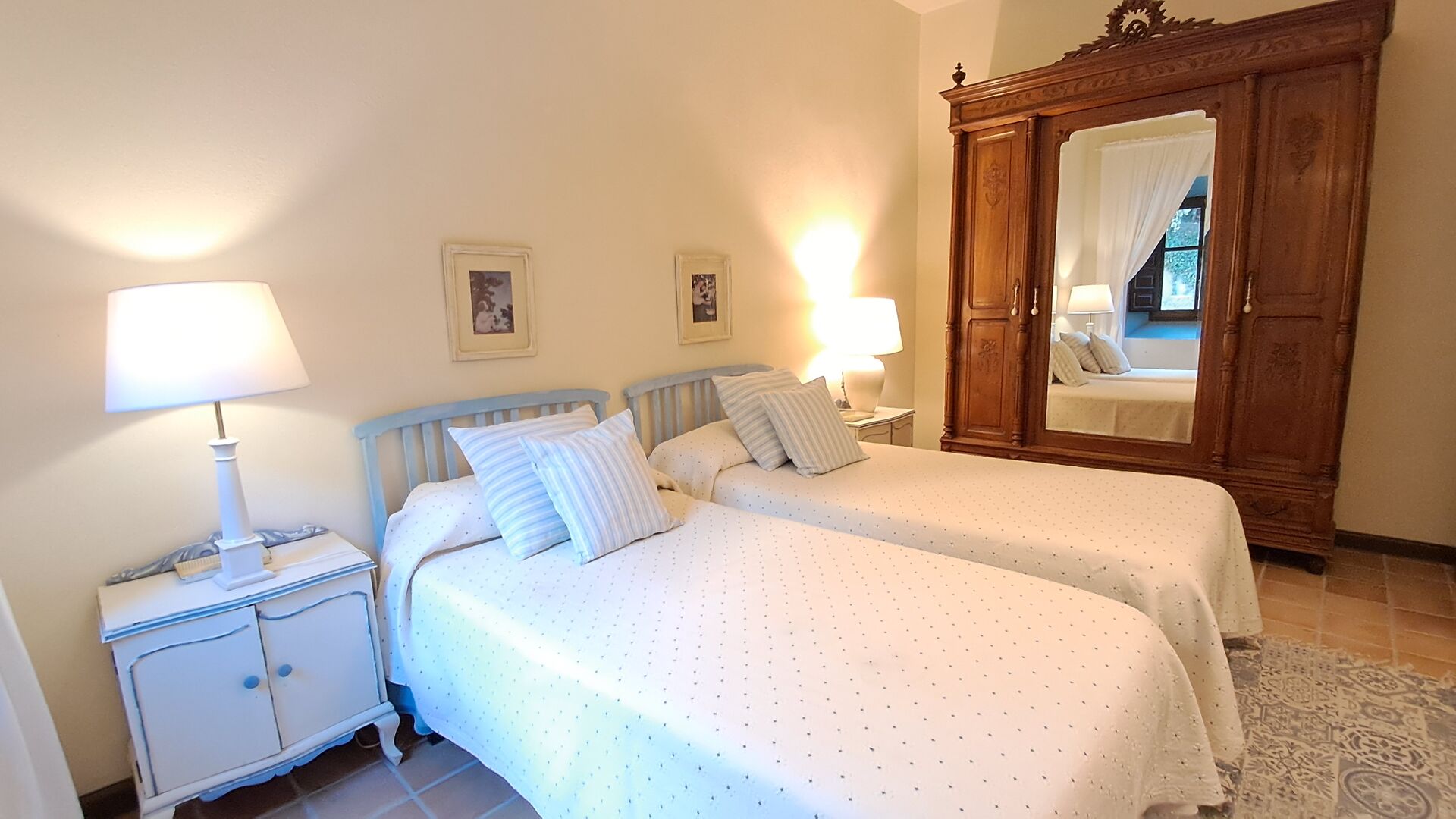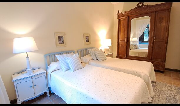 Da Esszimmer und Terrasse für 12 Personen ausgelegt sind und auch die Wasserversorgung des Hauses die maximale Kapazität darstellt, können wir maximal 12 Personen beherbergen. Sie können die sieben Schlafzimmer nach Belieben nutzen, sie sind alle im Mietpreis enthalten.