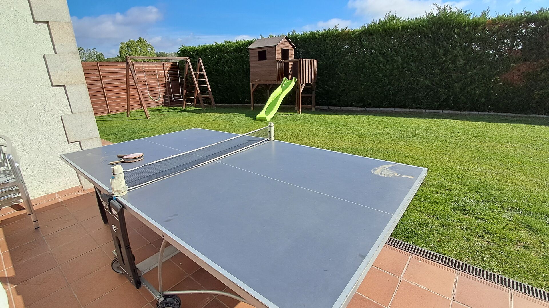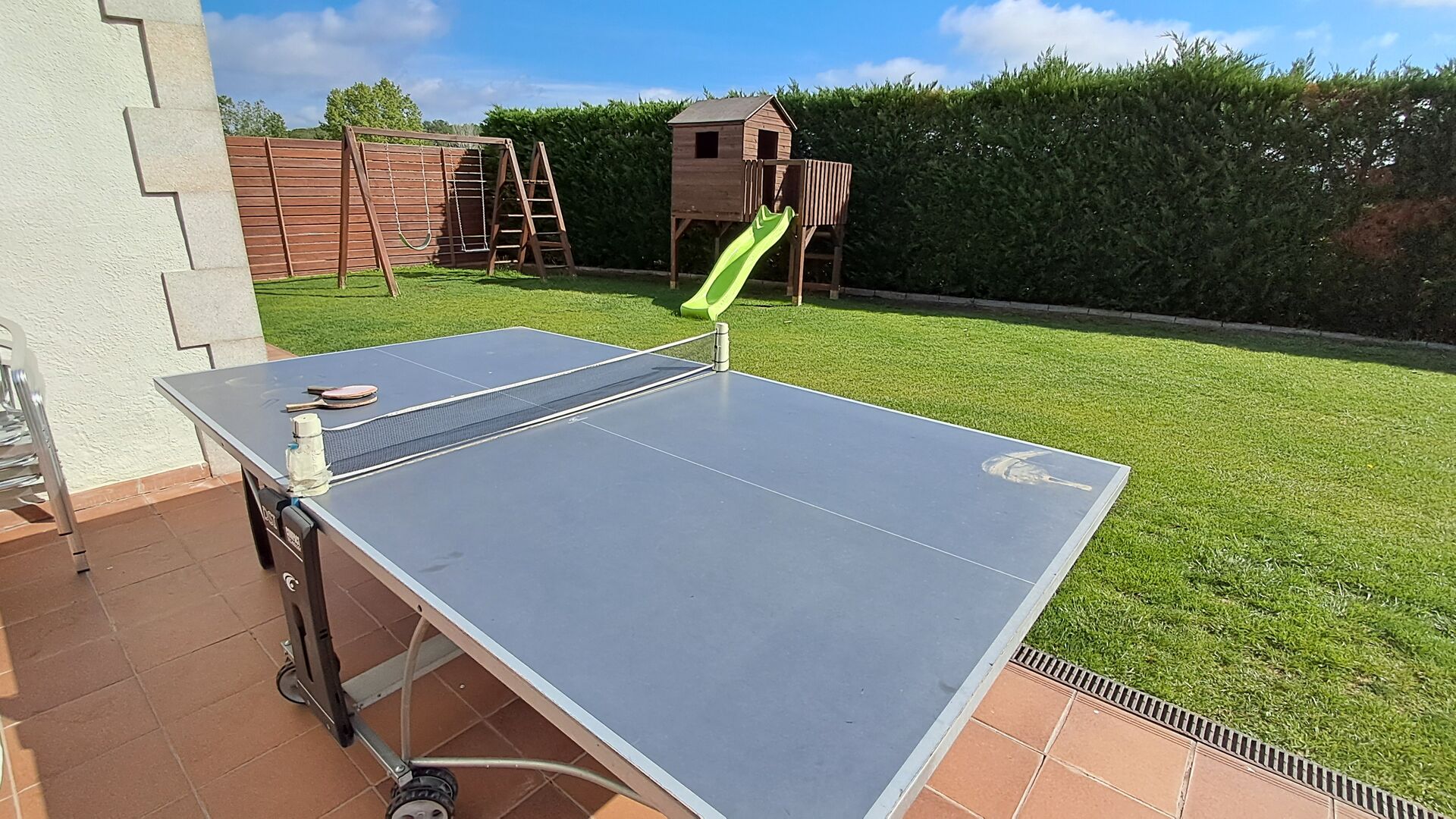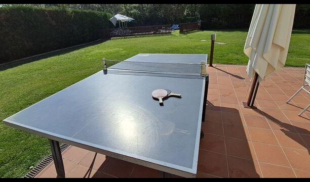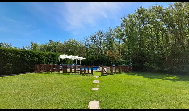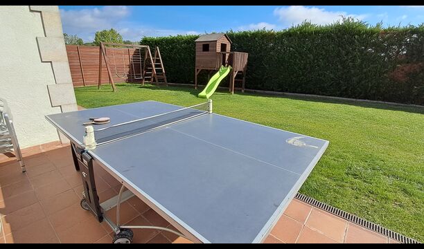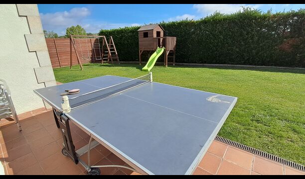 Das Haus verfügt über einen großen, gepflegten Garten und einen schönen Rasen, mit vielen Möglichkeiten für die junge (und ältere) in der Urlaubsgruppe. Der wunderschöne Swimmingpool hat eine Größe von 50m2, wo jeder entspannen und abkühlen kann oder die Sonnenliegen genießen. Dieser Poolbereich ist für die Sicherheit eingezäunt. Das ist eine Erleichterung, wenn Sie im Urlaub mit sehr junge Kindern sind. Darüber hinaus gibt es Tischtennis, Fußball- und Spielplatz. Es gibt WC im Erdgeschoss - auch sehr praktisch, wenn Sie im Garten sind.