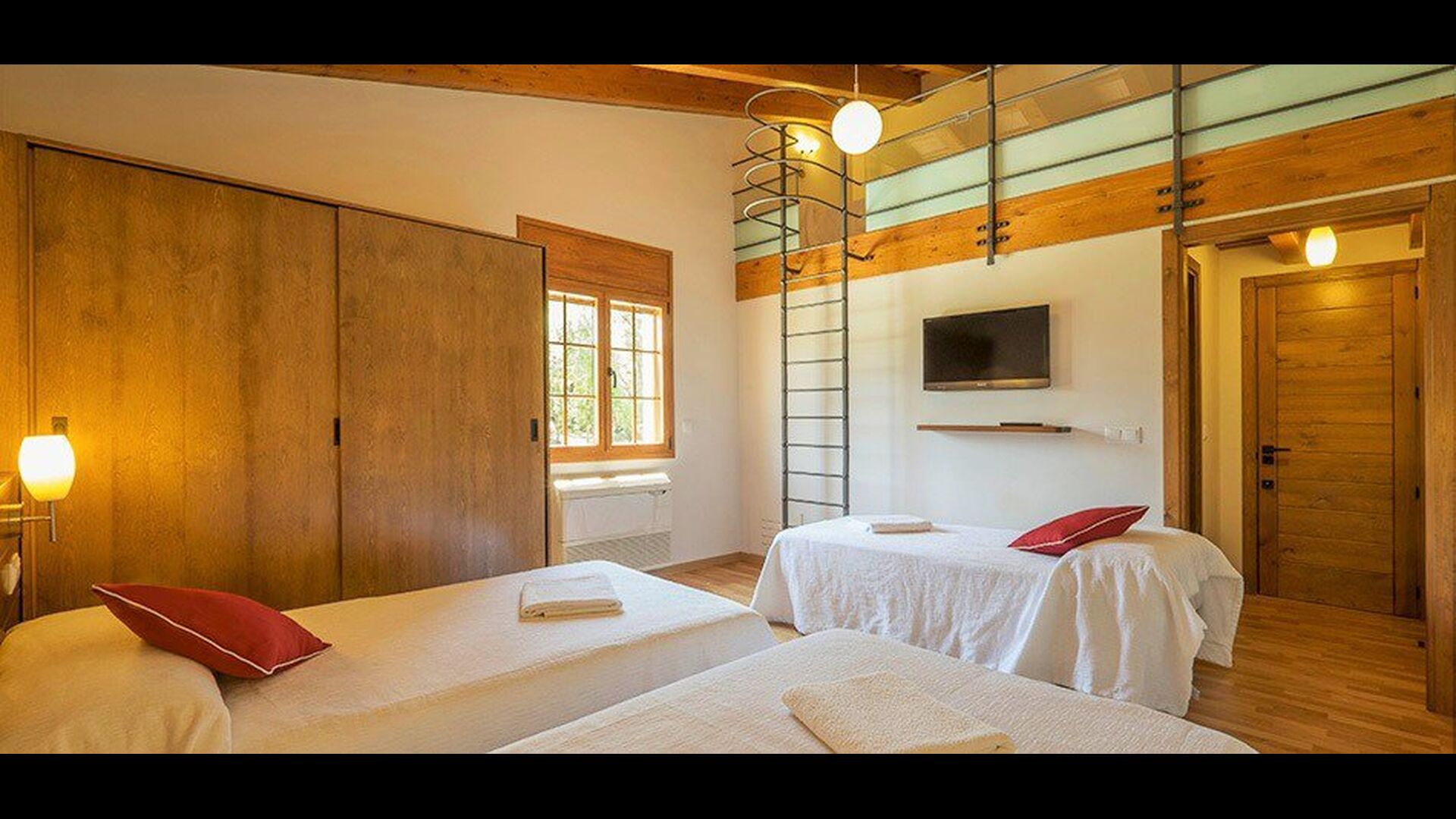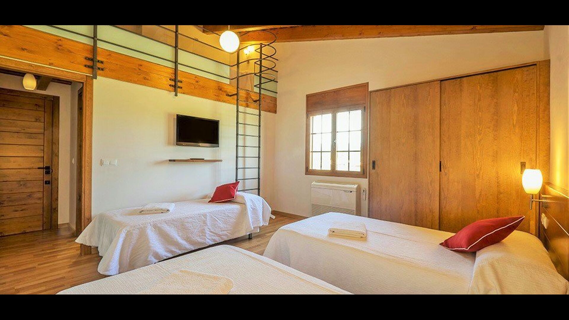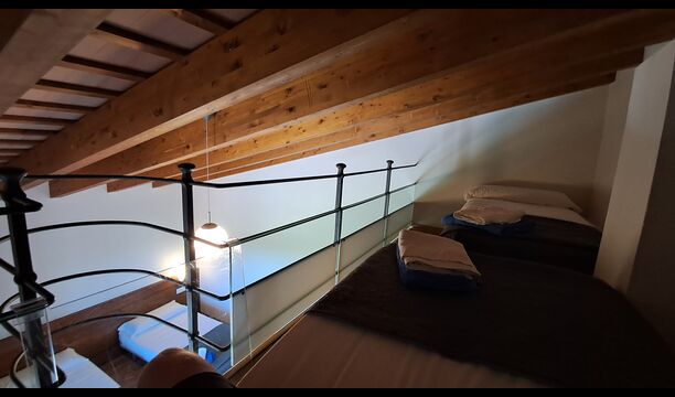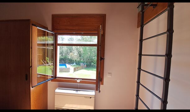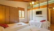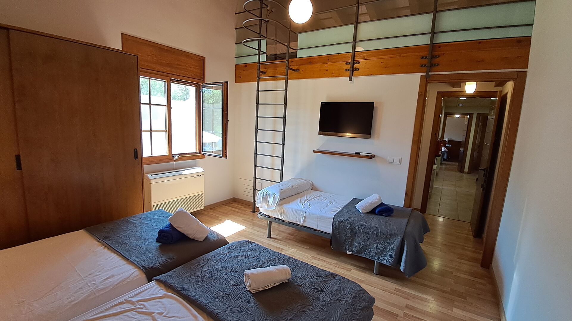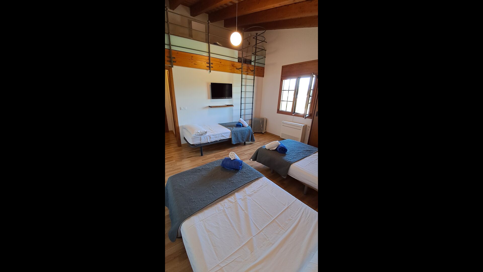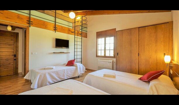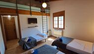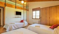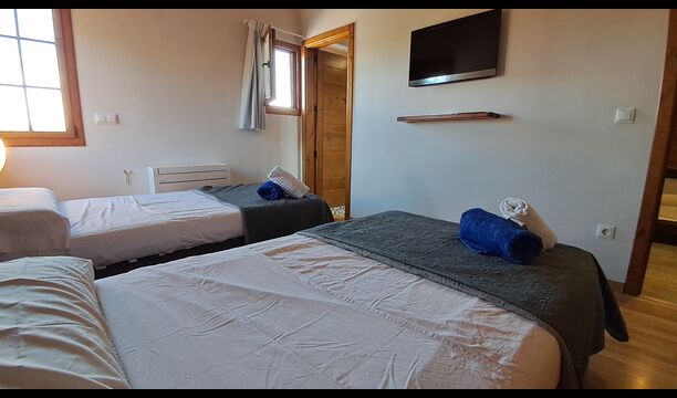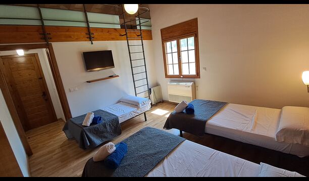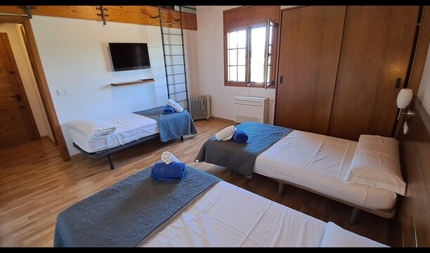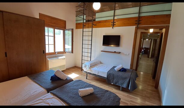 Das Haus hat fünf geräumige Schlafzimmer, alle mit eigenem Bad. Es gibt drei Dreibett-Zimmer, alle mit Hängeboden hoch unter der Decke (nicht für sehr kleine Kinder geeignet). Die Zimmer sind schön mit viel Platz und mit schönen Holzbalken unter der Decke ausgestattet. Darüber hinaus gibt es eine Klimaanlage in jedem Zimmer, damit das Sie Raumklima frei entscheiden können, - das ist sehr bequem in den heißen Tage und Nächte.