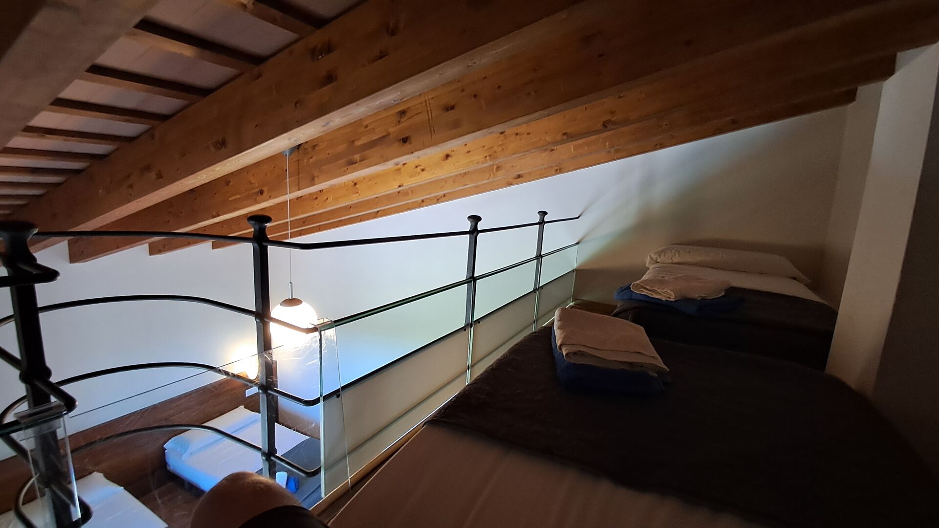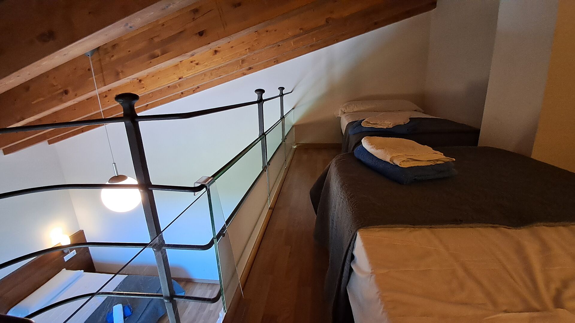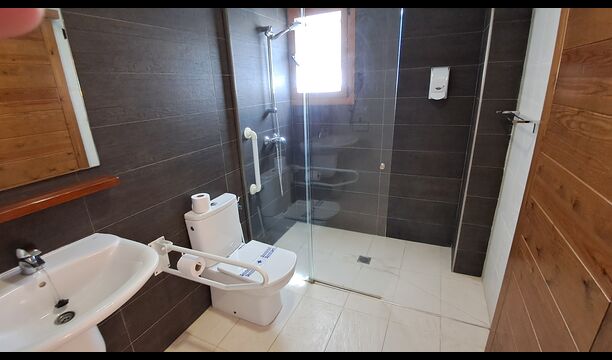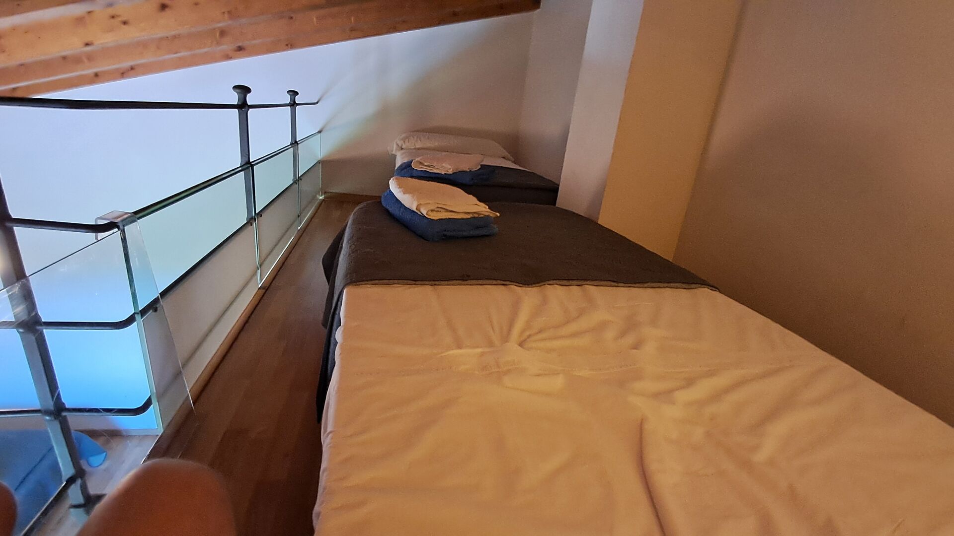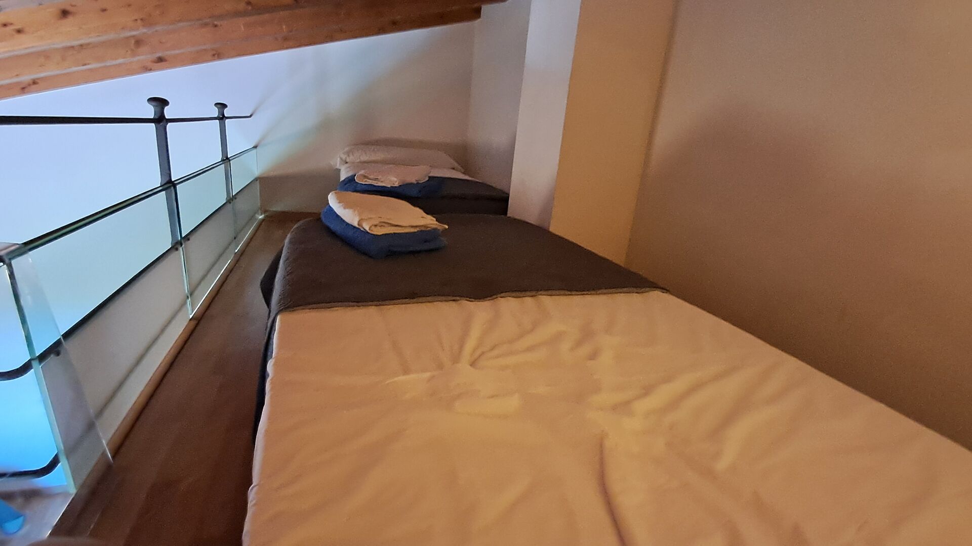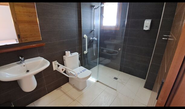 Das Haus hat fünf geräumige Schlafzimmer, alle mit eigenem Bad. Es gibt drei Dreibett-Zimmer, alle mit Hängeboden hoch unter der Decke (nicht für sehr kleine Kinder geeignet). Die Zimmer sind schön mit viel Platz und mit schönen Holzbalken unter der Decke ausgestattet. Darüber hinaus gibt es eine Klimaanlage in jedem Zimmer, damit das Sie Raumklima frei entscheiden können, - das ist sehr bequem in den heißen Tage und Nächte.