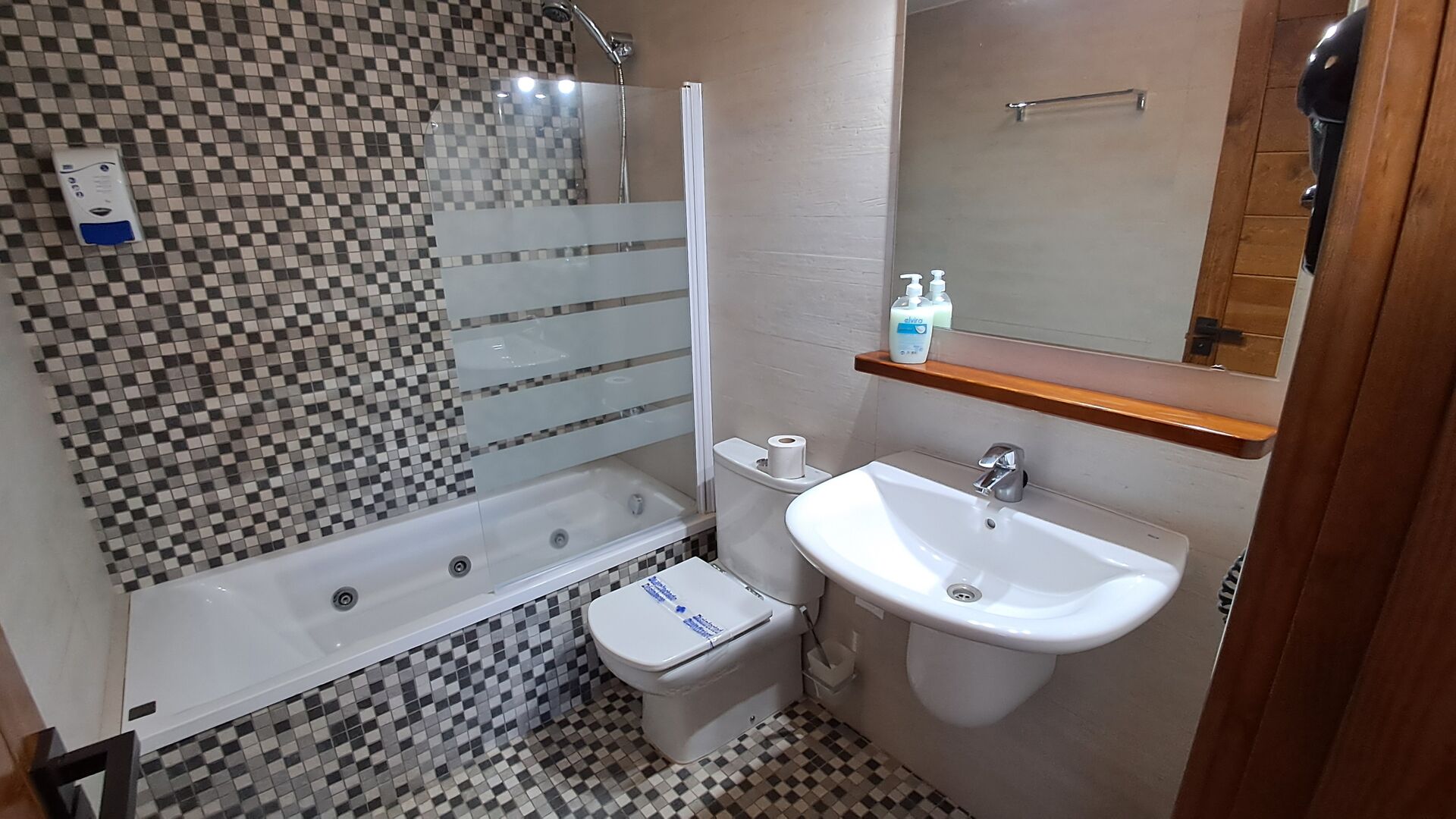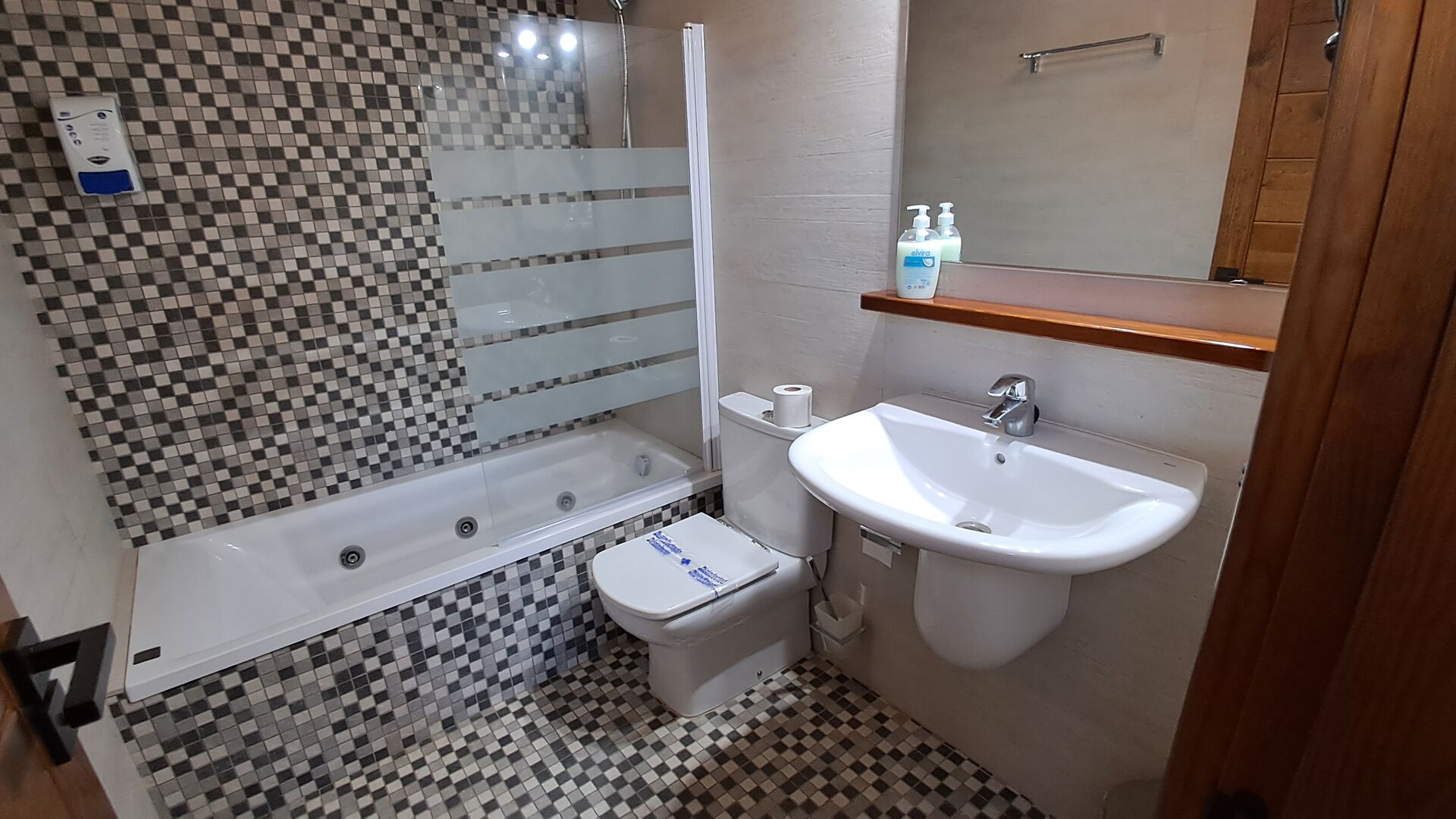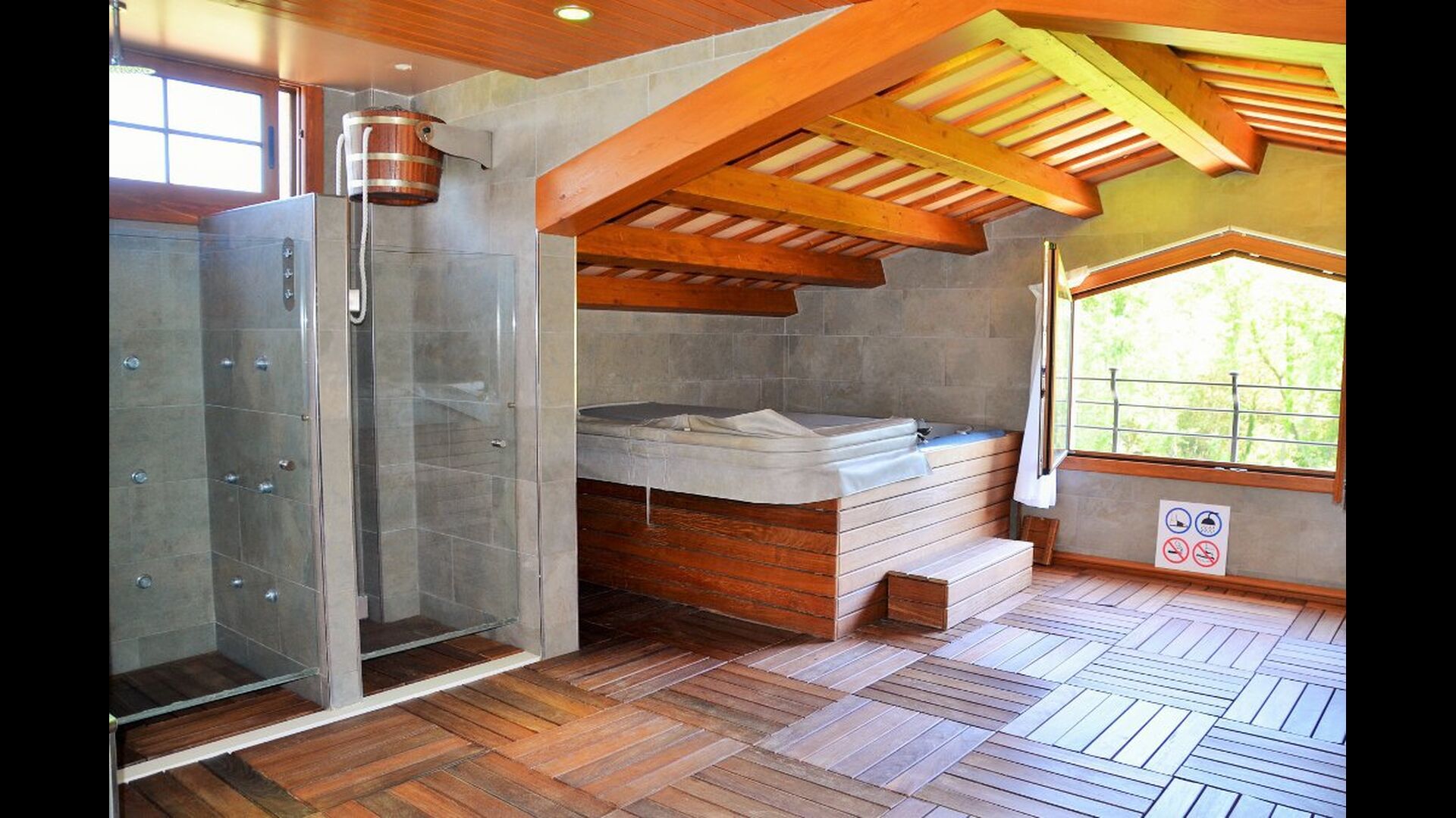 Auf der zweiten Etage, haben die Eigentümer einen kompletten Wellnessbereich gebaut. Wenn Sie hier für Entspannung gekommen sind, haben Sie wirklich die richtige Stelle gewählt. Es gibt zwei Spapools, Kaltwasserbad, Hydromassage-Duschen und zwei Saunen - eine mit Eukalyptus und eine normale. Der Aufzug geht den ganzen Weg hier hoch, und mit vielen verschiedenen Farblichten und Musik, ist die Bühne für ein besonderes Erlebnis gesetzt.