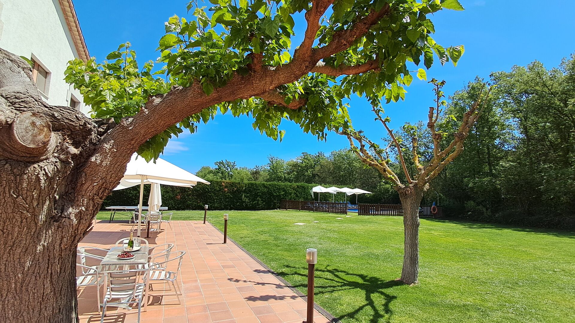 Das Ferienhaus liegt am Ende einer kleinen Straße, und trotz der Tatsache, dass es einen einzigen Nachbarn gibt, ist es sehr abgelegen und privat. Die Hälfte des Gartens ist von Wald, die eine natürliche Atmosphäre bietet, umgeben. Darüber hinaus gibt es einen Pfad zum nächsten Dorf, das innerhalb von 10 Minuten zu Fuß zu erreichen ist. Hier sind sowohl Einkaufsmöglichkeiten als Restaurants. Darüber hinaus gibt es nur 30 Minuten mit dem Auto nach den Stränden der Costa Brava.