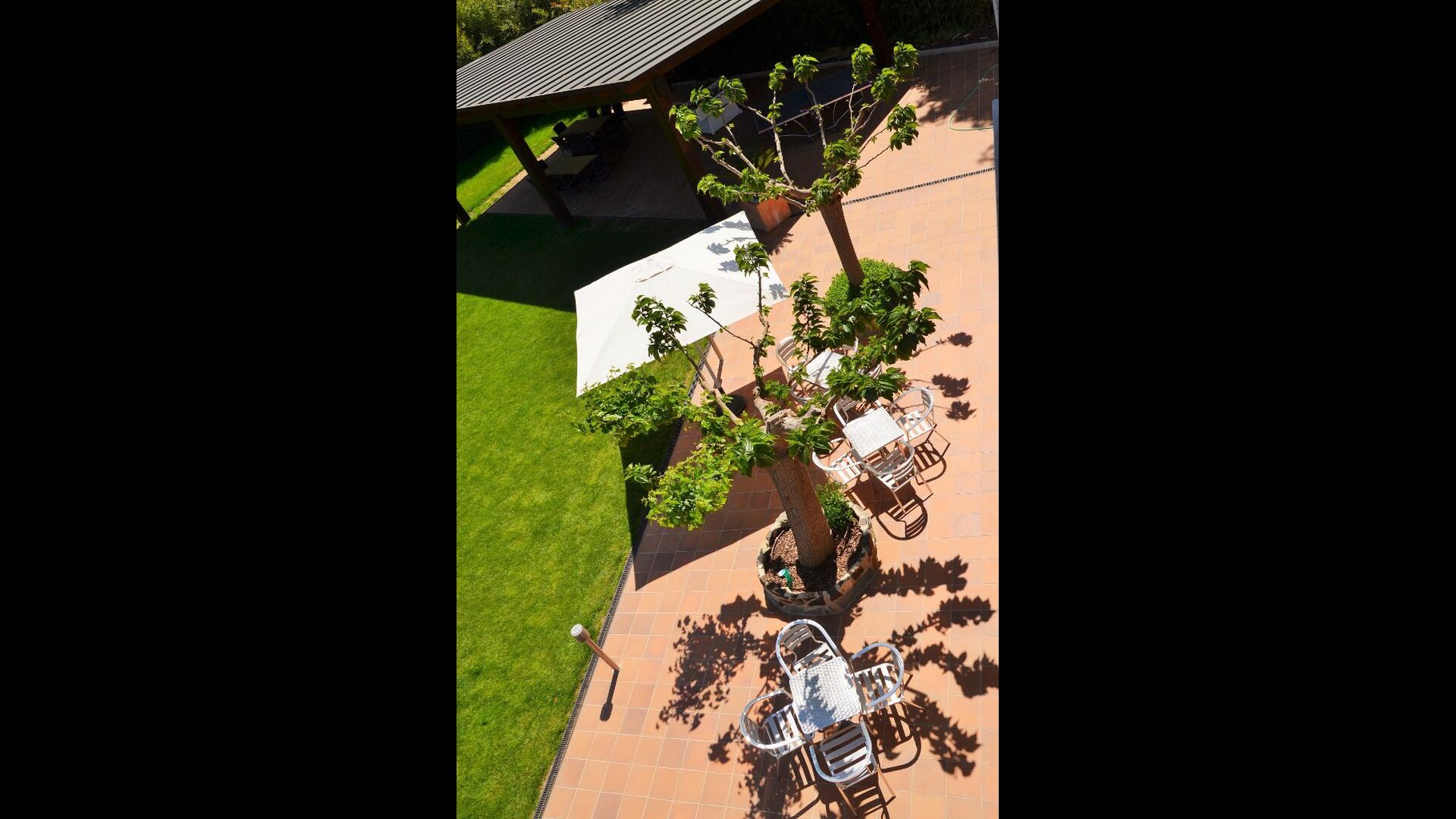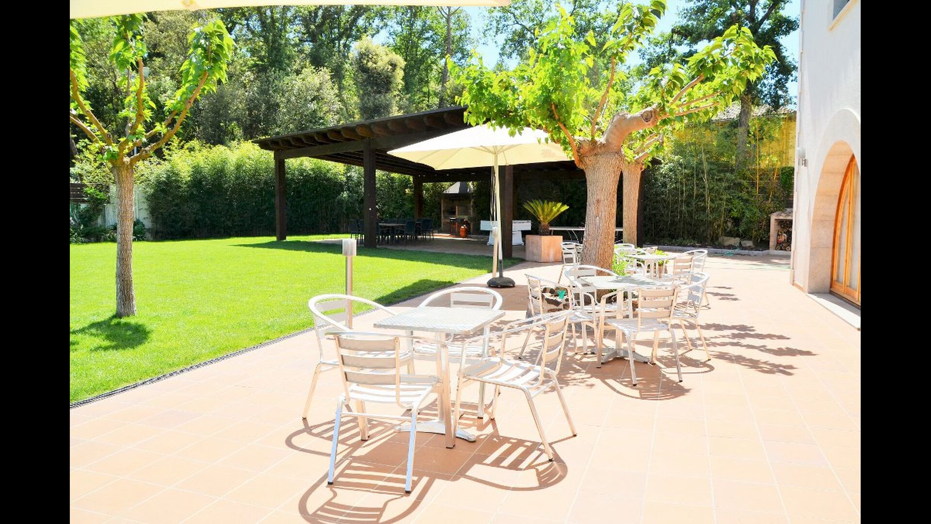 • Große überdachte Terrasse mit Essbereich und Grill