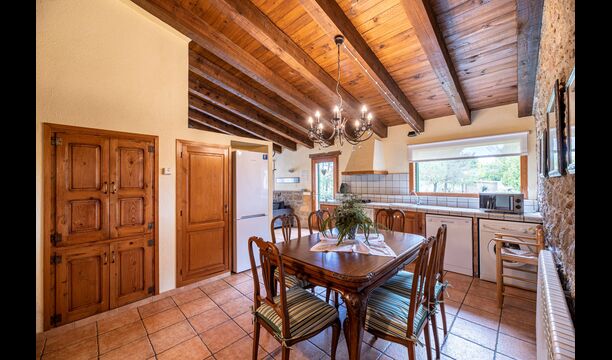 Casa Koral-Cubert ist eine 120m2 Ferienwohnung mit eigener Terrasse und Garten. Die Wohnung hat eine Küche mit Spülmaschine und Mikrowelle, ein großes Wohn / Esszimmer mit Kamin und direktem Zugang zur überdachten Terrasse, auch mit Tisch zum Essen. Die Wohnung hat drei Doppelzimmer und drei Bäder und man kann zwei weitere Betten haben.