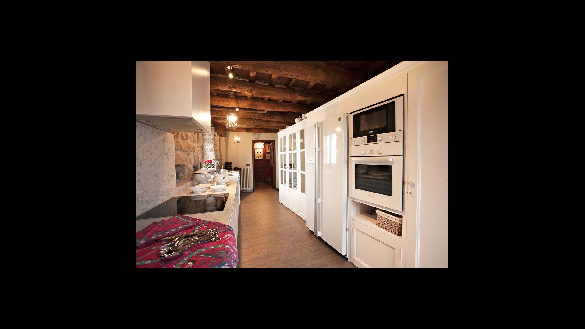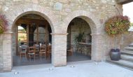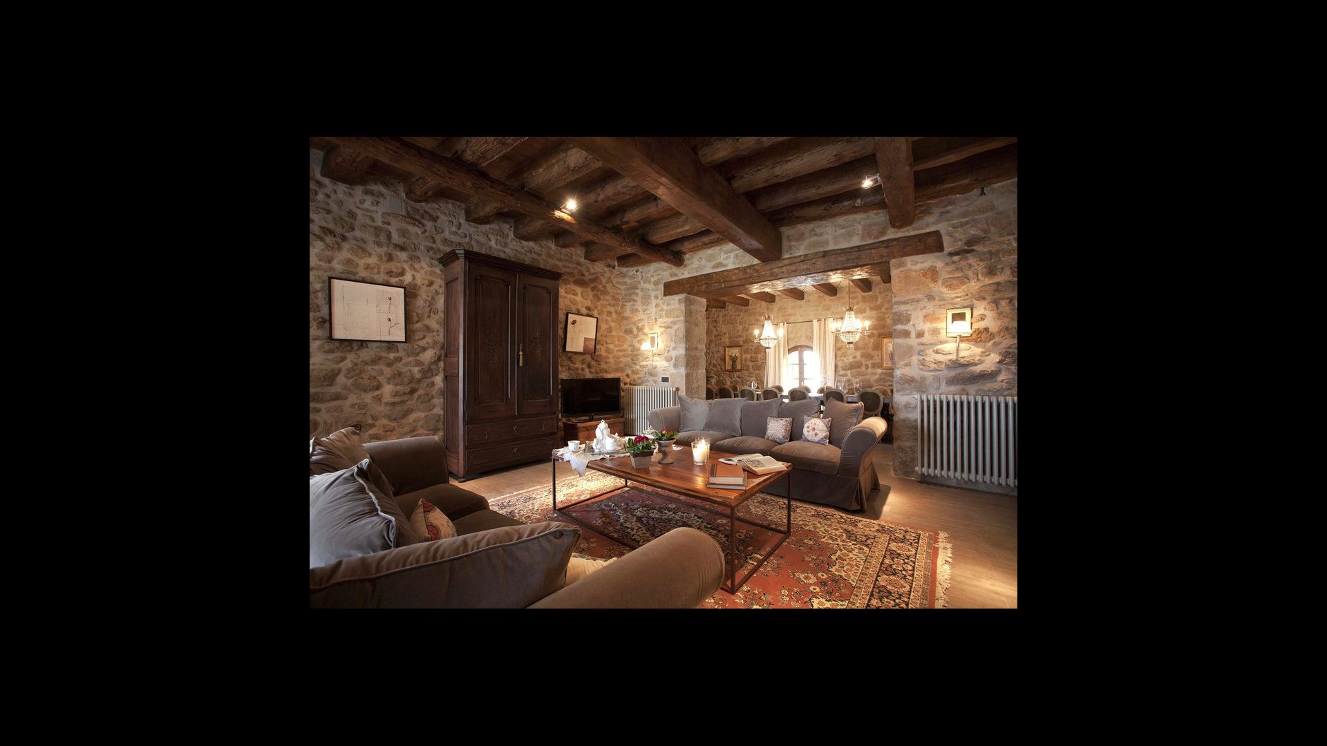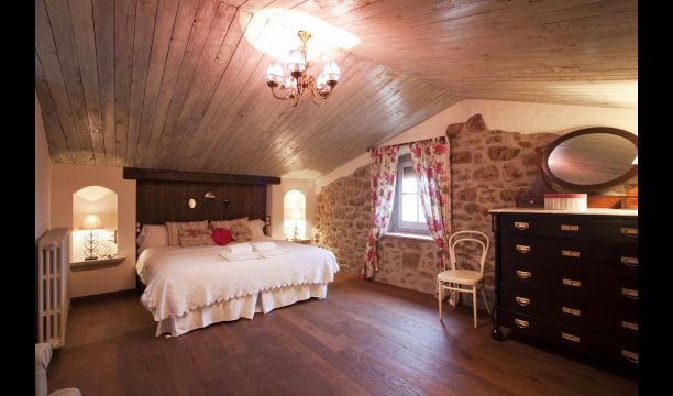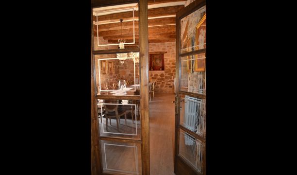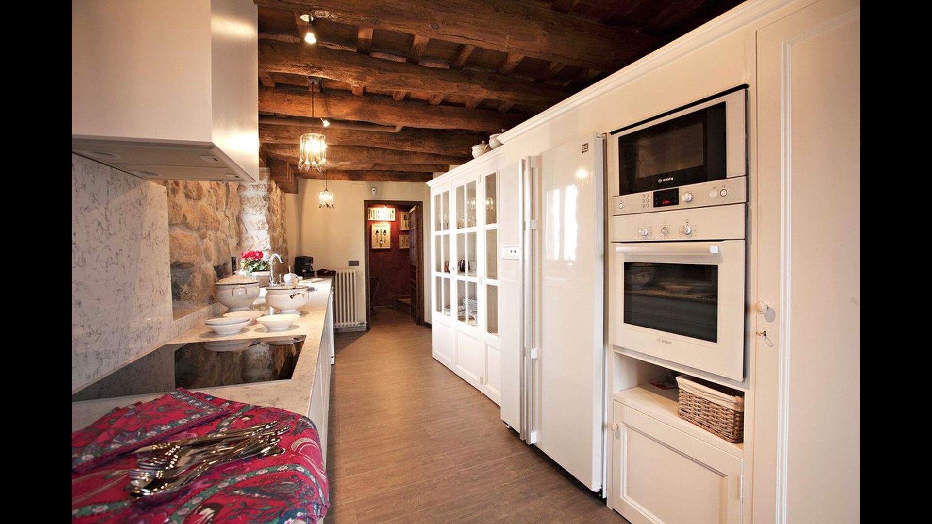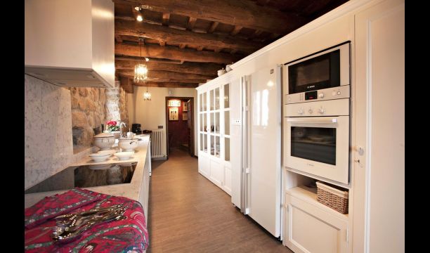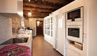 Im unteren Stock des Hauses gibt es ein schönes und beeindruckendes Wohnzimmer mit Sofas und Fernseher mit Flachbildschirm. Das Wohnzimmer hat direkten Zugang zum exklusiven Esszimmer mit Kronleuchter und einem schönen langen Tisch mit Platz für alle unsere Gäste. In jedem Zimmer gibt es hohe Decken mit schönen Deckenbalken. Vom Wohnzimmer gibt es Blick auf einen der Terrassenbereiche des Hauses. Die Terrasse hat dekorative Bögen und auch hier gibt es einen langen Tisch, Grill und auch eine kleine Küche im Freien damit der Kontext hier für lange warme Sommerabende mit gutem Essen vom Grill perfekt ist. Im unteren Stock findet man auch die ausgezeichnete Küche. Die Küche ist hell und sehr lecker bequem gelegen, weil die Küche eine Tür zu den überdachten Terrassen mit BBQ hat damit das Essen nicht so weit zu transportieren ist. Die Küche hat alle modernen Annehmlichkeiten und es gibt 2 große Kühlschränke, 2 Geschirrspülern, leckere Backöfen und was Sie sonst von Komfort wünschen können.