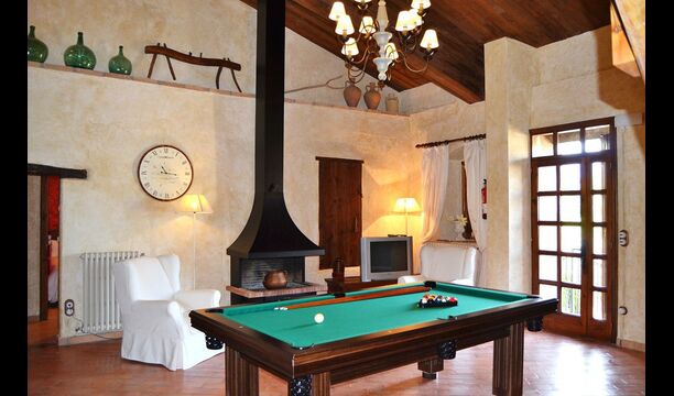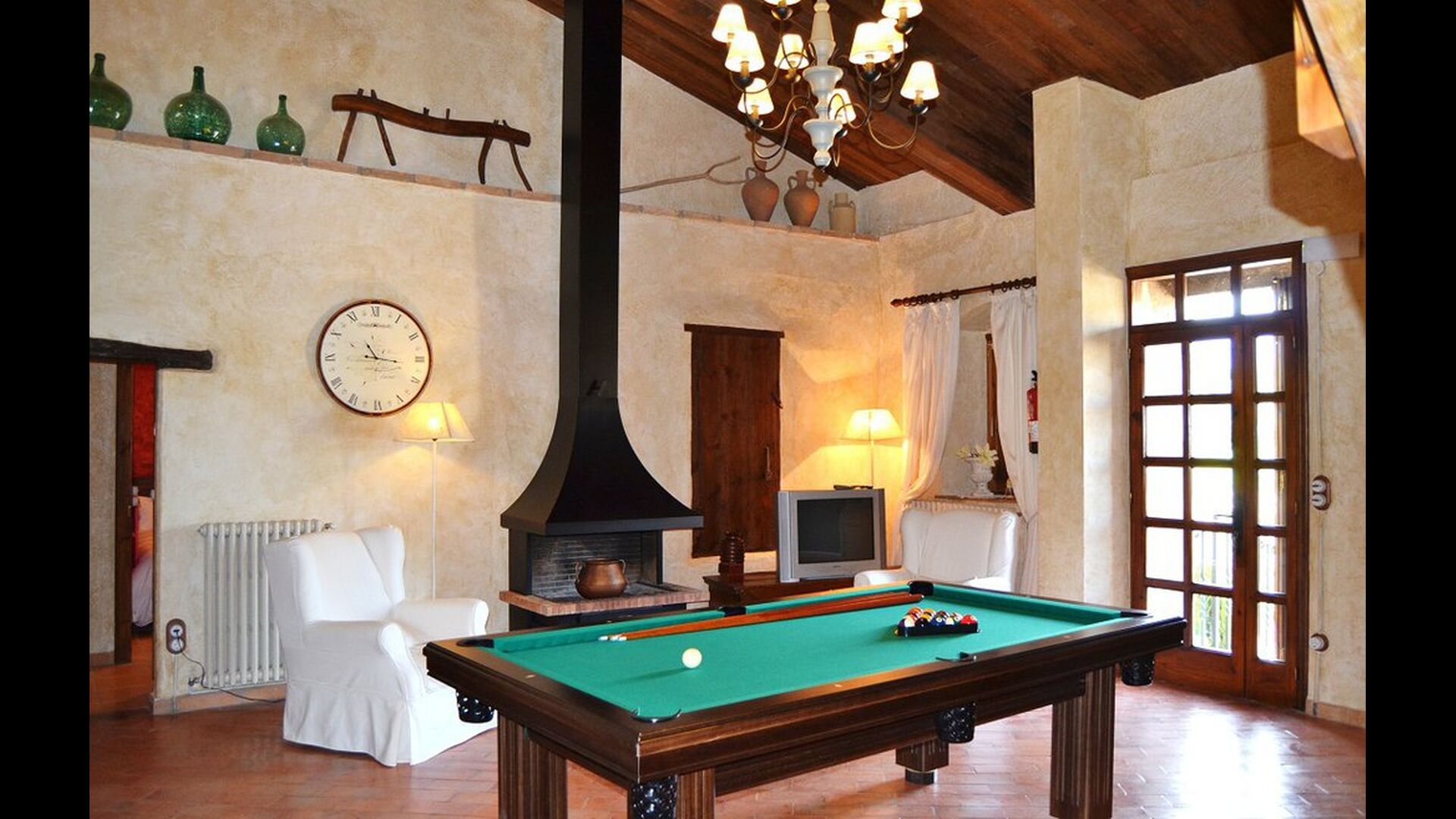Auf der oberen Etage von Masia de Lavell gibt es noch einen Raum mit einem Billardtisch und eine halbe Etage höher gibt es auch einen kleinen Bereich mit einem Schreibtisch, wo man lesen, arbeiten oder Computer anwenden, da es Wi-Fi im Haus gibt.