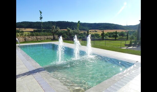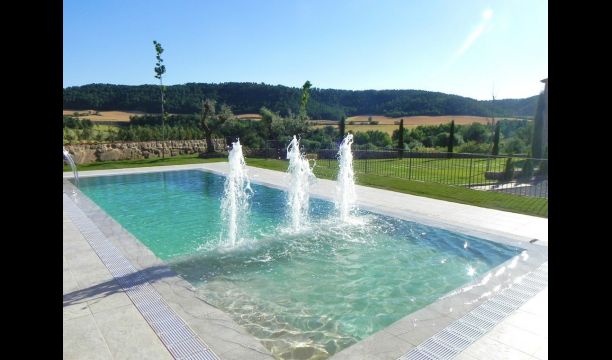 Der Pool-Bereich ist angenehm und attraktiv eingerichtet. Der Swimmingpool ist 11 Meter lang und die erste 3 Meter hat eine Tiefe von 0,5 m. für die jüngsten Kinder der Gruppe (separat aufgeteilt) und die restlichen 8 Meter (1,6 m. tief) sind für ältere Kinder und Erwachsene. Das Gebiet hat auch einen überdachten Bereich mit Sofas, wo Sie das Leben rund um den Pool genießen können. Es gibt auch eine kleine Halle mit einem Spa. Es gibt auch Tischtennis. Der Garten ist groß und von hier aus hat man auch eine schöne Blick auf der Natur.