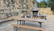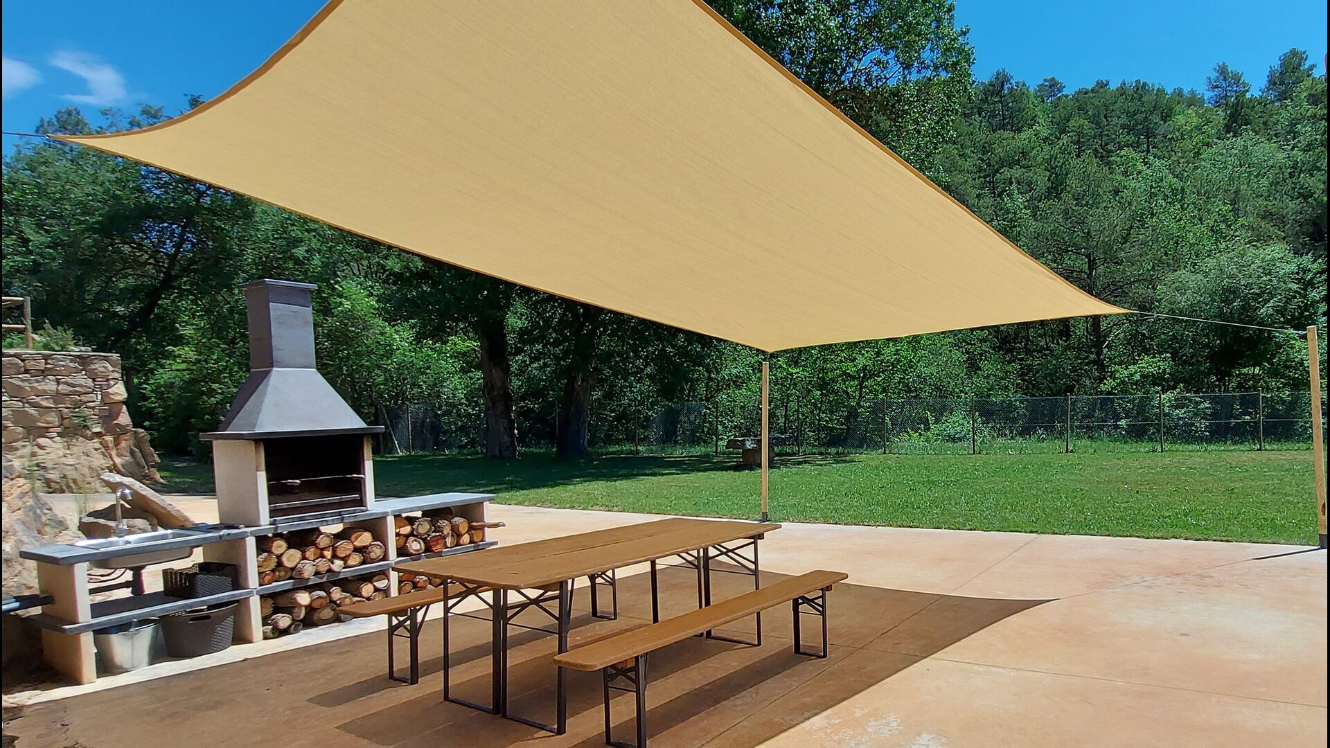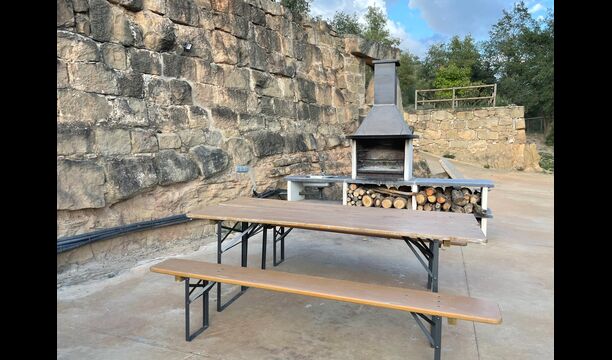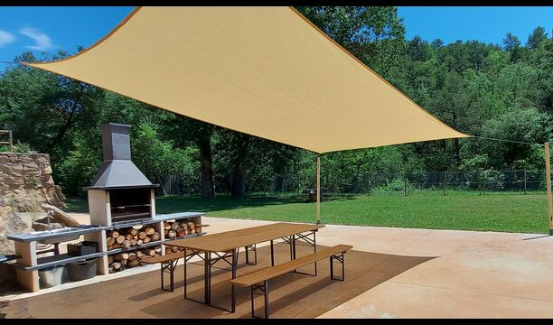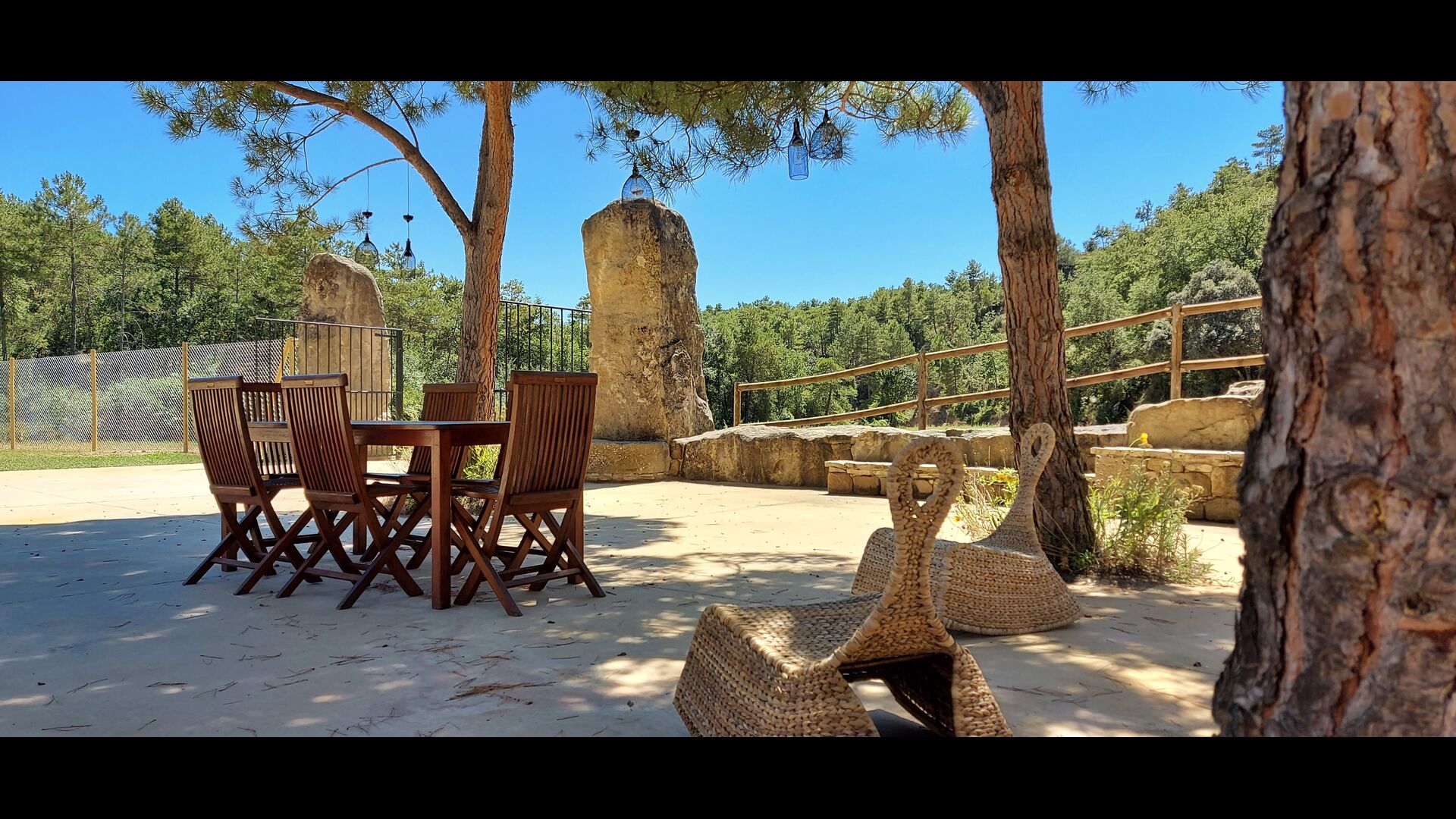 Außerhalb des Hauses haben Sie den Gartentisch, den Sie leicht verschieben können, sodass Sie Ihre Mahlzeiten im Grunde dort einnehmen können, wo Sie es bevorzugen. Es könnte im Schatten unter einem der Bäume sein, am Swimmingpool oder neben dem Grill, wenn Sie ein schönes Grillabendessen mögen. Es gibt auch einige Sessel, sodass Sie sich mit einem Buch entspannen können.