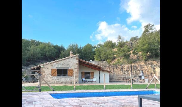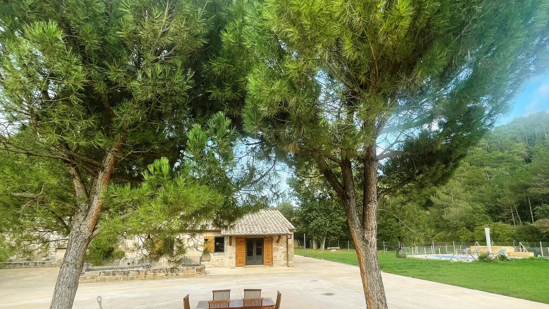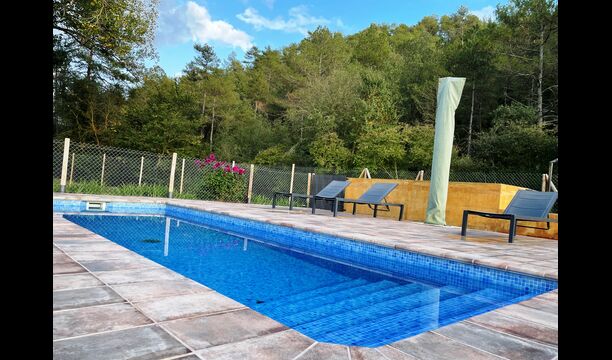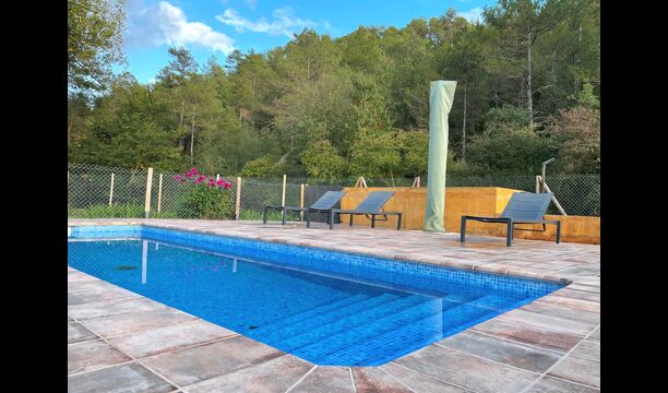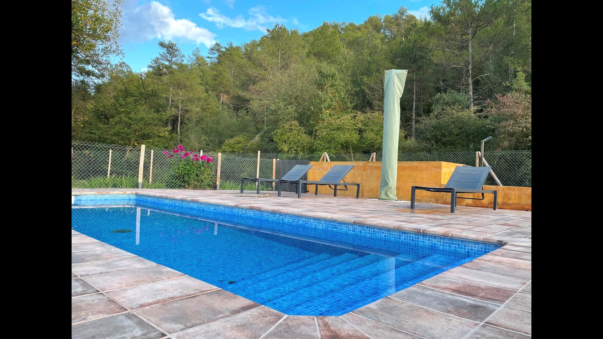 In der Mitte des Gartens befindet sich der eingezäunte Poolbereich, wo Sie sich auf den Sonnenliegen entspannen oder im warmen katalanischen Sommer ein erfrischendes Bad nehmen können. Da das Schwimmbad über eine römische Treppe verfügt, ist es auch ideal, wenn Sie kleine Kinder haben, damit sie in ihrem eigenen Tempo ins Wasser gehen und spielen können.