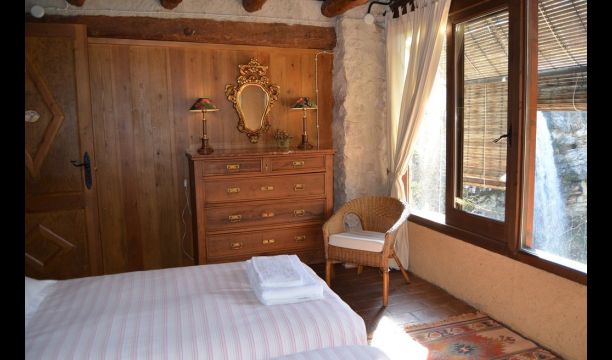 Die Besitzer Pilar und Jordi haben fantastische Arbeit geleistet, indem sie die Wassermühle sorgfältig renoviert und mit geschmackvollen Möbeln ausgestattet haben, um die Authentizität zu bewahren. Das Gebäude hat mehrere Stockwerke und ist direkt an der Seite eines Felsens errichtet, der eigentlich als eine der Wände des Hauses dient.