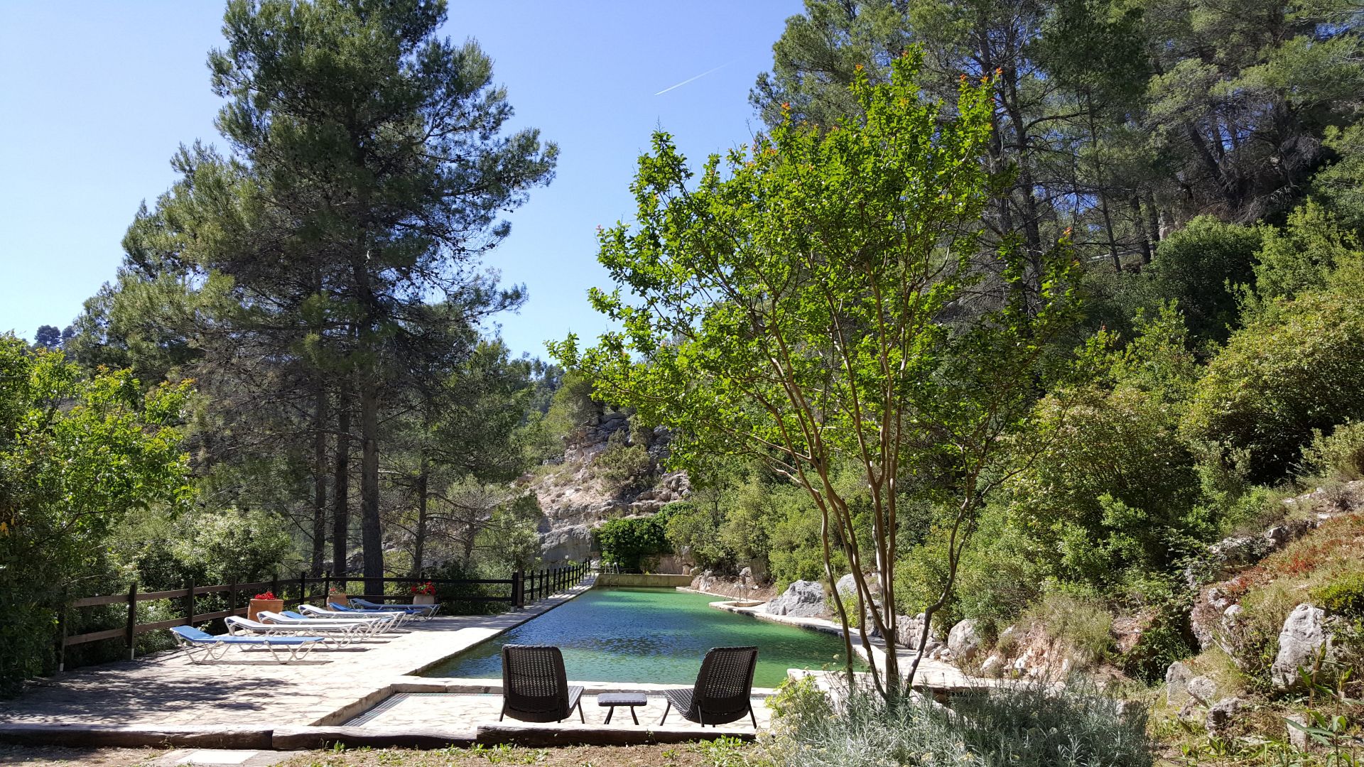 Die Atmosphäre draußen ist schwer mit Worten zu beschreiben, da der Ort etwas ganz Besonderes ist. Der Wasserfall sorgt für Frische und die umliegenden Felsen sorgen für viele schattige Ecken und ein Gefühl, eins mit der Natur zu sein. Die Kanalsysteme, mit denen das Wasser geleitet wird, um den Strom für die Wassermühle zu erzeugen, wurden intelligent zu einem Schwimmbad, wo dieses saubere Wasser, direkt aus der Quelle wenige Kilometer vom Haus entfernt, durch das 45 Meter lange Schwimmbecken geleitet wird, und dann am anderen Ende wieder zum Fluss. Sie können auch unter dem Wasserfall und an verschiedenen Stellen im Fluss schwimmen.