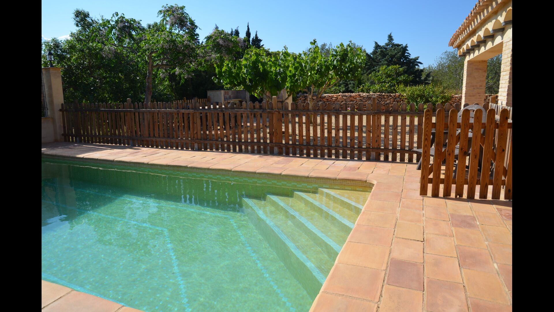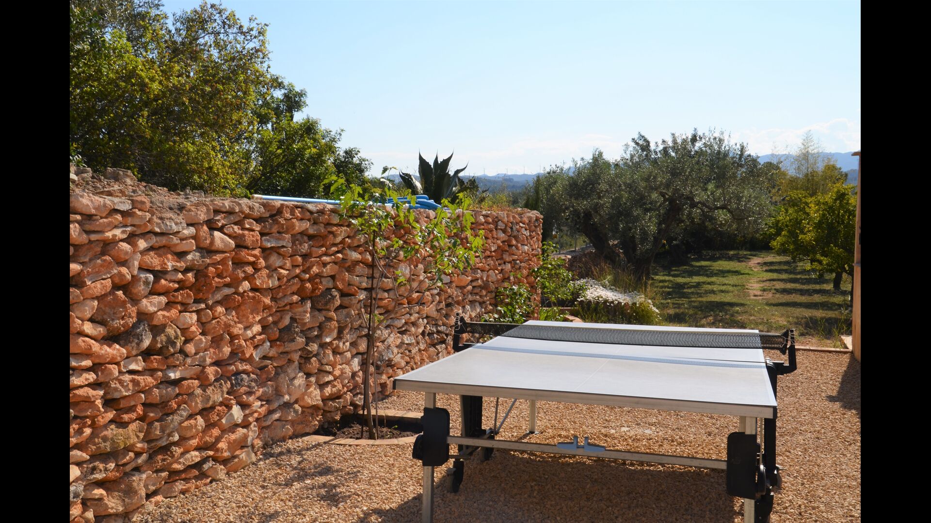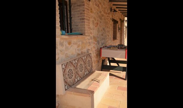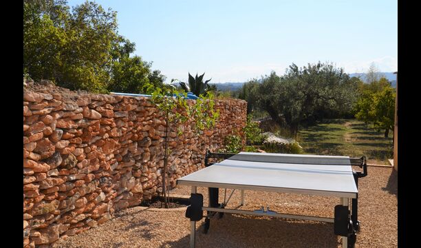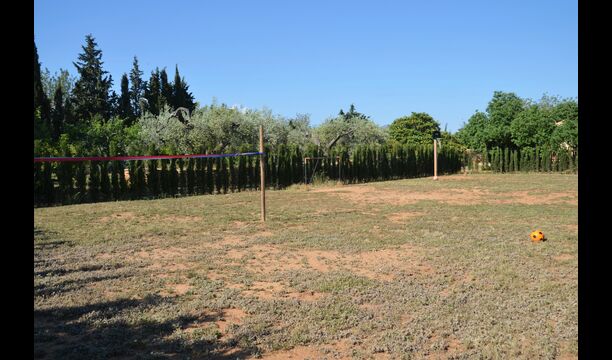 The outdoor area of Masia Melivel is quite unique. The house has a fenced, 8x4 meter private swimming pool with a great pool area with sun loungers, parasols, showers, etc. In addition, there are a lot of other activities, including a large swing set, table tennis, table football, bicycles, basketball and a football- and badminton field, which the house shares with the neighboring holiday home. In addition, the large, beautiful garden offers a petanque court, a terrace with dining table and BBQ grill. To put it short: You will probably not run out of things to do here.