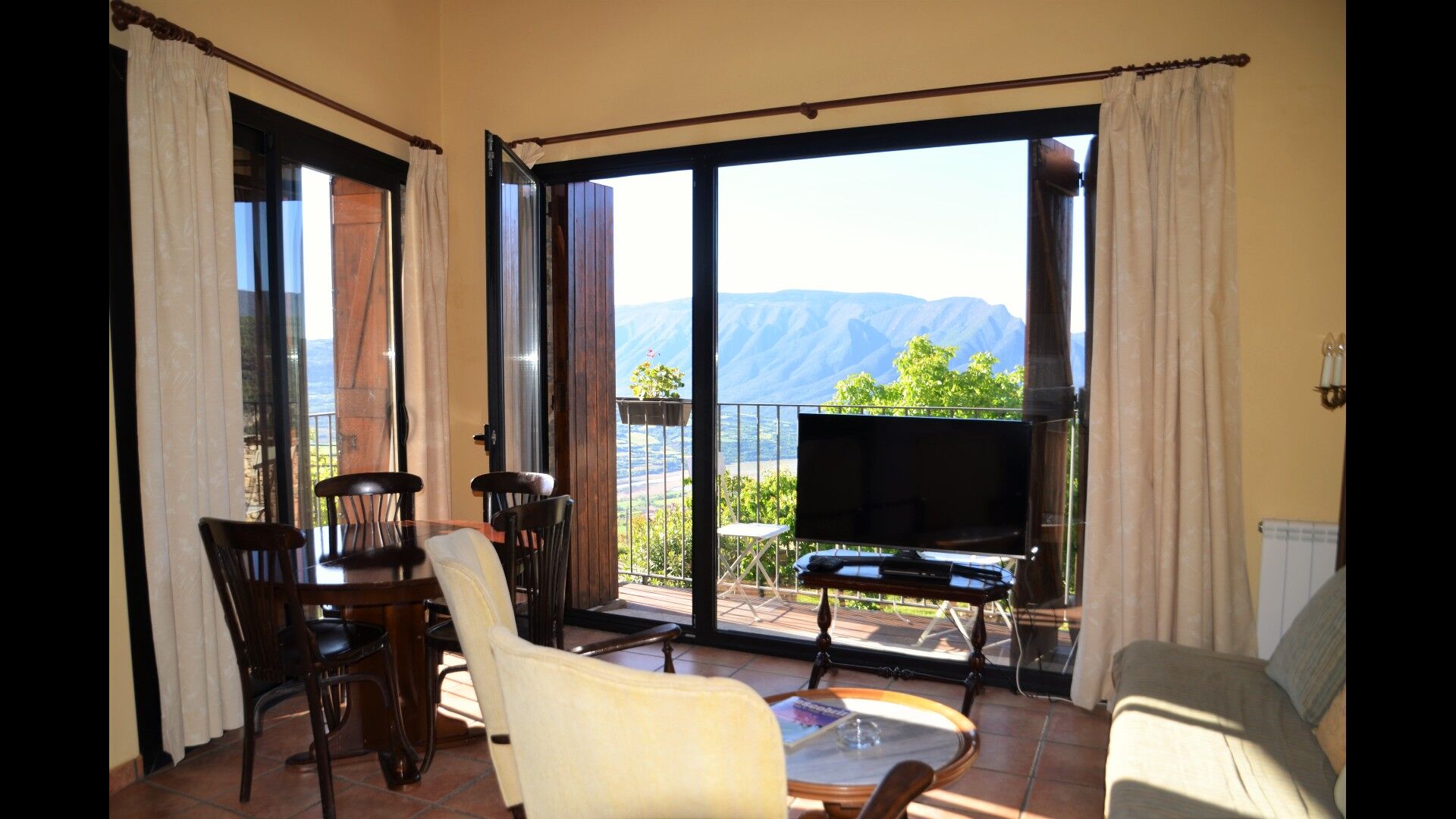 Can Soledad mean ’being alone’ and this is a very fitting description: You can enjoy a private holiday, accompanied with fantastic nature, at 800 meters altitude. The property is in the mountains with the most extraordinary view over the valley and the ‘Noguera river’, which runs through the hills and later adjacent to the Ebro river. The area is optimal for all kind of hikes, and furthermore, there’s plenty of opportunities to do water sports on the river and at the lake by Tallarn. This is truly an extraordinarily beautiful area.