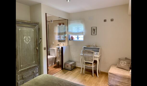 Insgesamt gibt es drei schöne Schlafzimmer, alle die hübsch dekoriert sind und hohe Decken haben. Alle Schlafzimmer haben bequeme Doppelbetten und en-suite Badezimmer, die ebenfalls von sehr hohem Standard sind.