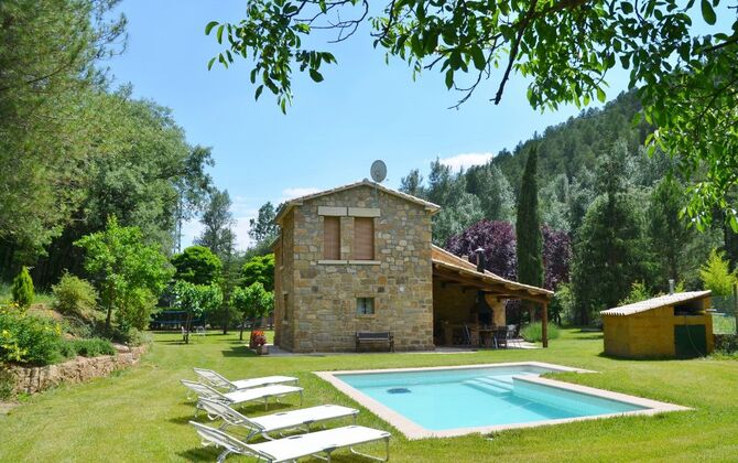 Am Ferienhaus angekommen, treten Sie durch ein Tor in einen großen, gepflegten Garten ein. Das erste, was Sie sehen, ist ein wunderschönes Schwimmbad. Ein kleiner, flacher Bereich bietet den ganz Kleinen die Möglichkeit, das kühle Nass zu genießen. Um den Pool herum stehen Sonnenliegen, sodass Sie die katalanische Sommersonne in vollen Zügen genießen können. Wenn Sie es vorziehen, im Schatten zu entspannen, gibt es Bäume und Sitzgelegenheiten auf der gepflegten Rasenfläche. Außerdem gibt es für die Aktiven einen Badmintonplatz. In der Nähe des Pools platziert, damit Sie sich nach einem Spiel im Pool abkühlen können!