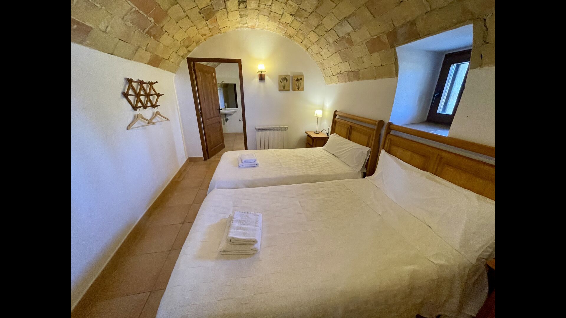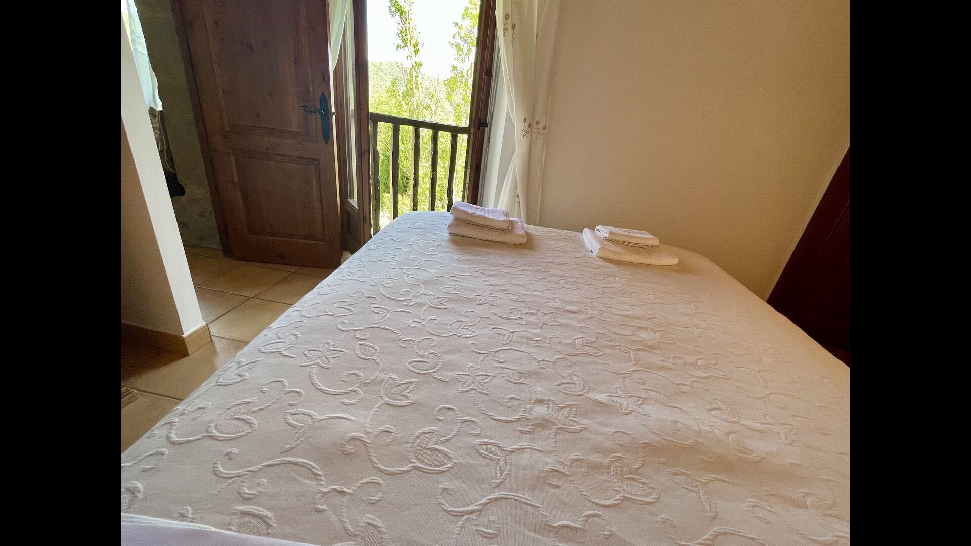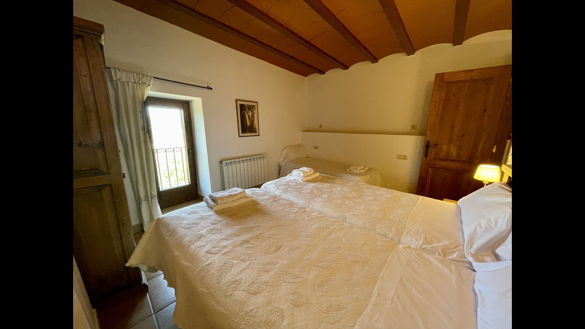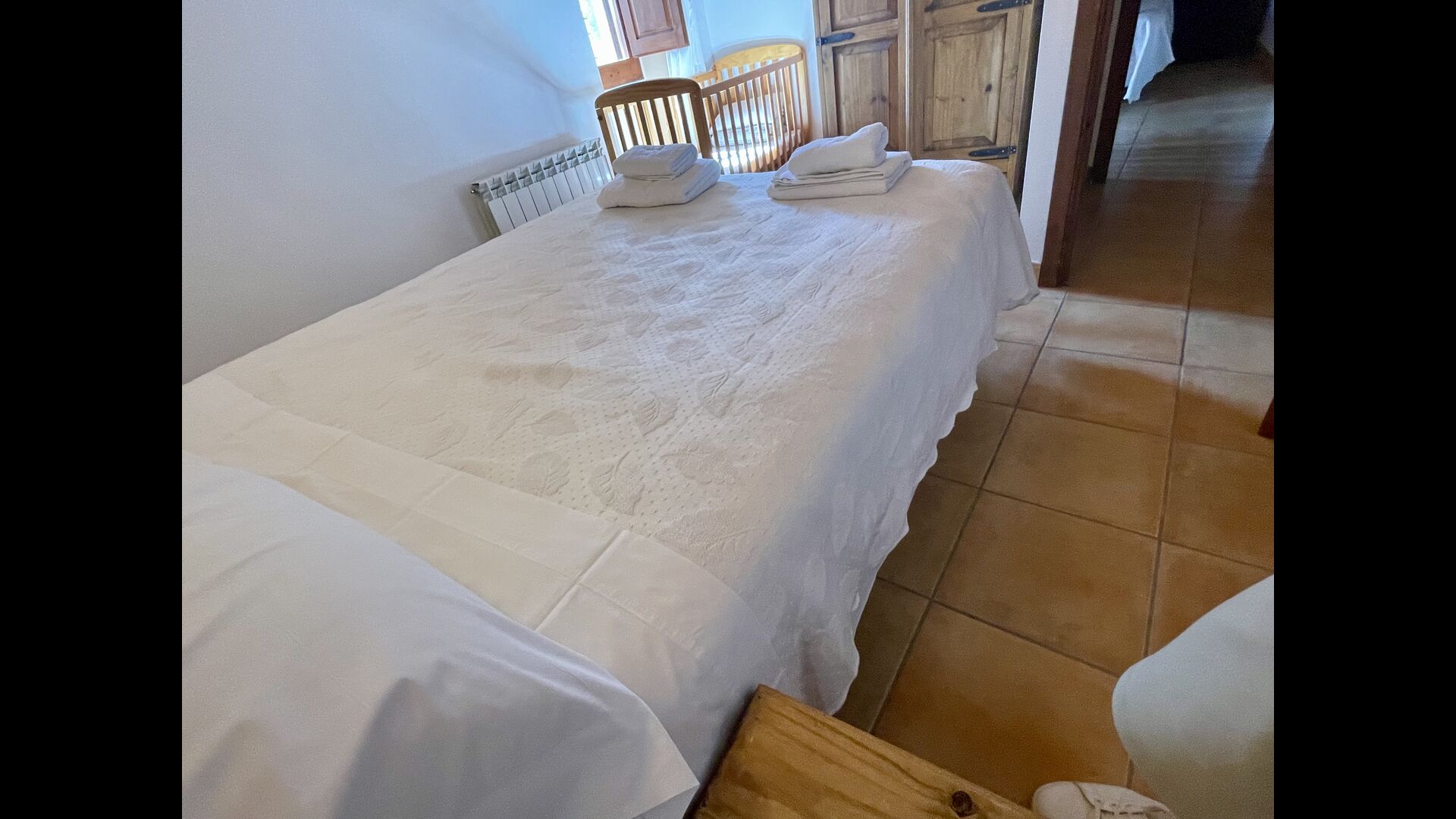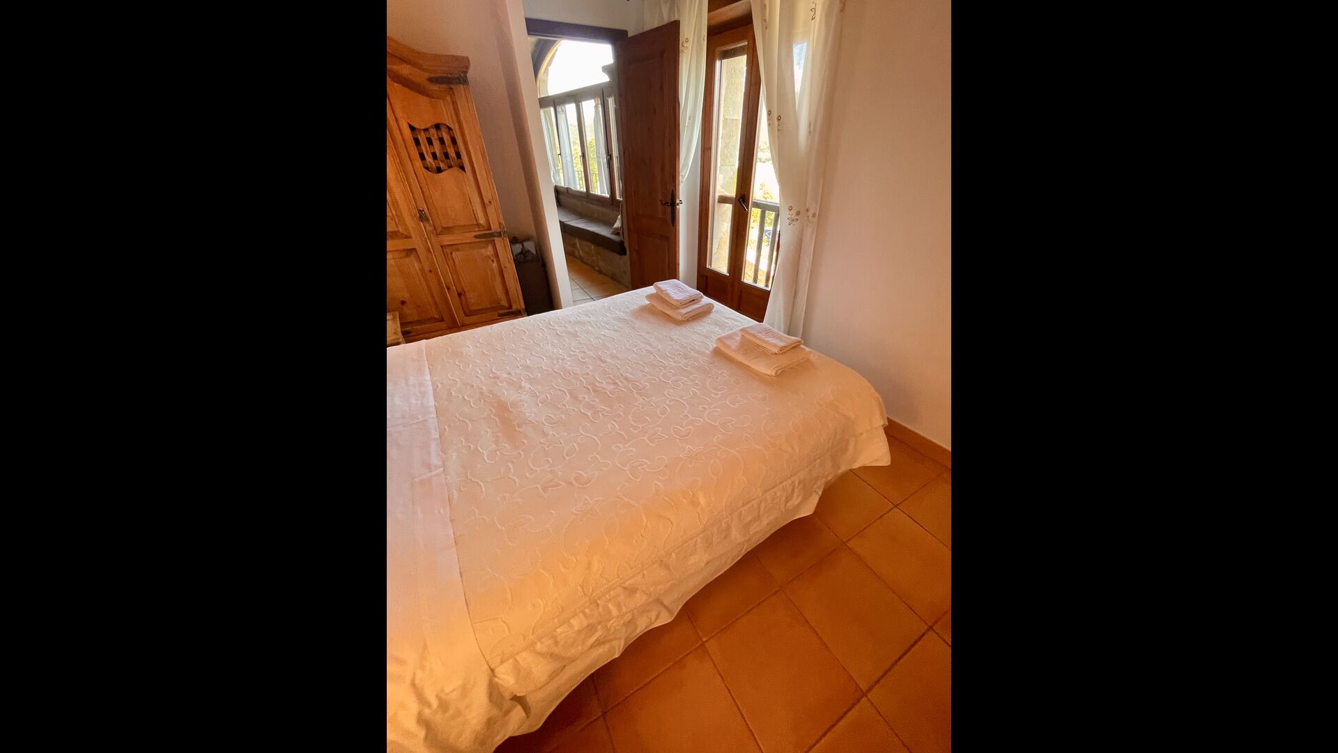 Im ersten Stock finden Sie noch 5 Doppelzimmer (3 mit Doppelbetten und 2 mit Einzelbetten) und drei Bäder. In diesem Stock gibt es auch einen gewölbten Raum, wirklich für Kinder geeignet. Im zweiten Stock gibt es zwei Schlafzimmer mit Einzelbetten und ein Badezimmer. Und im dritten und letzten Stock gibt es noch ein Zweibettzimmer. Einige der Zimmer haben französischen Balkonen, damit Sie beim Aufwachen den schönen Aussicht genießen können.