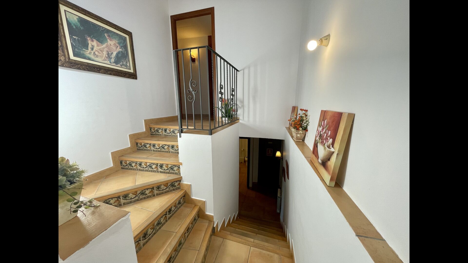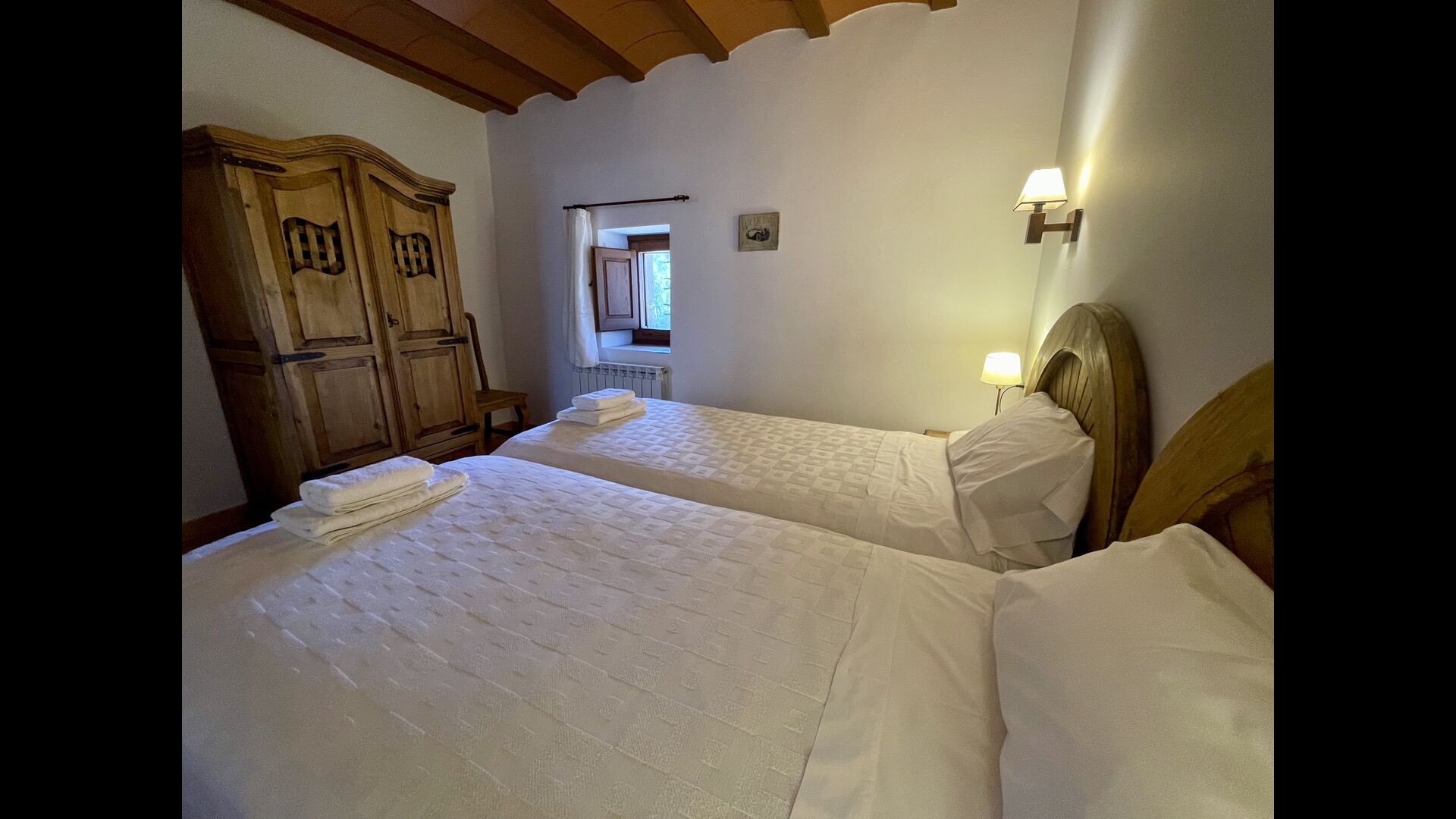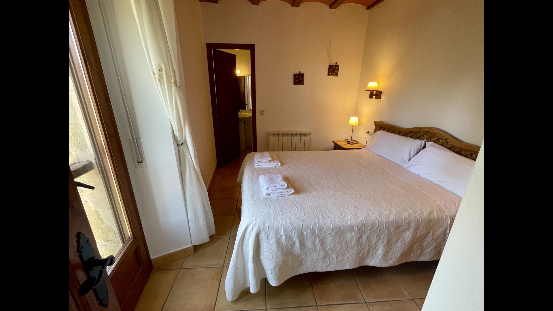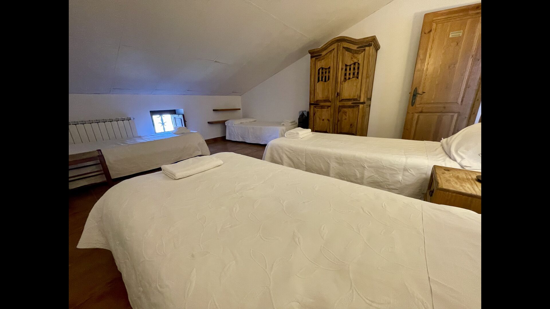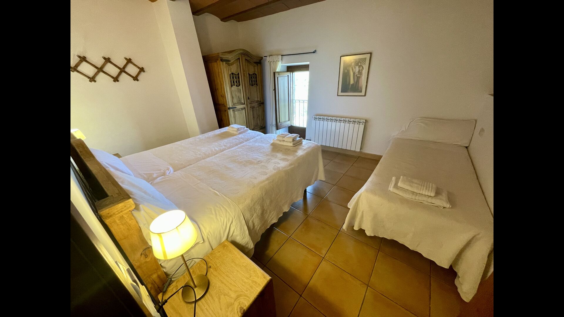 Im ersten Stock finden Sie noch 5 Doppelzimmer (3 mit Doppelbetten und 2 mit Einzelbetten) und drei Bäder. In diesem Stock gibt es auch einen gewölbten Raum, wirklich für Kinder geeignet. Im zweiten Stock gibt es zwei Schlafzimmer mit Einzelbetten und ein Badezimmer. Und im dritten und letzten Stock gibt es noch ein Zweibettzimmer. Einige der Zimmer haben französischen Balkonen, damit Sie beim Aufwachen den schönen Aussicht genießen können.