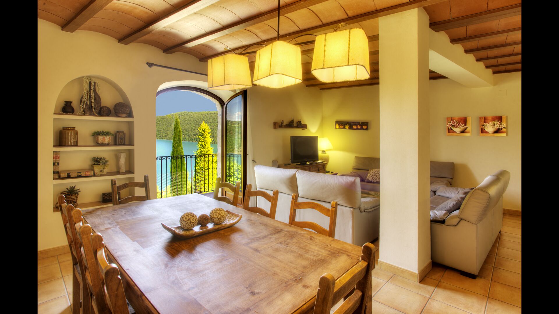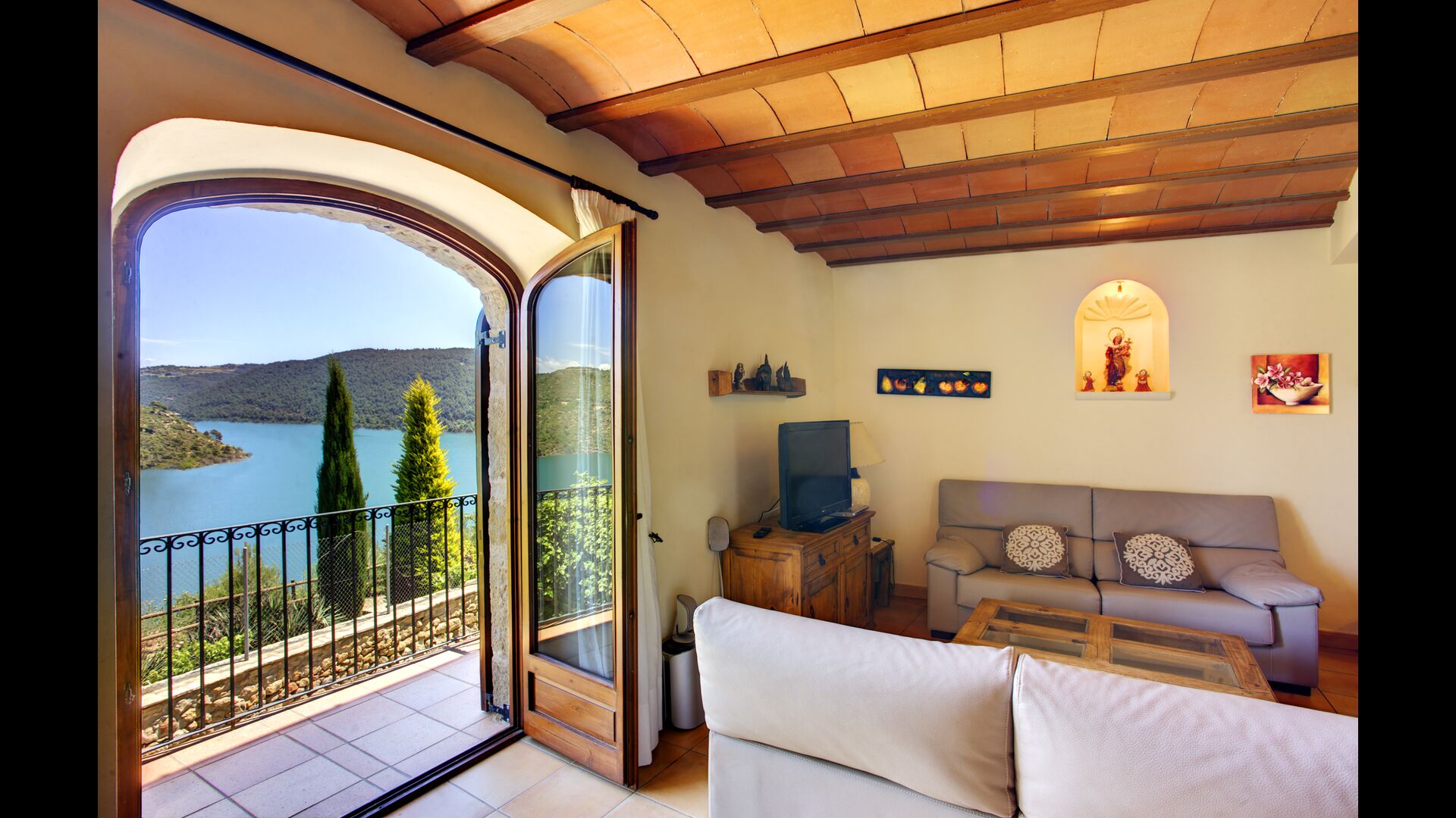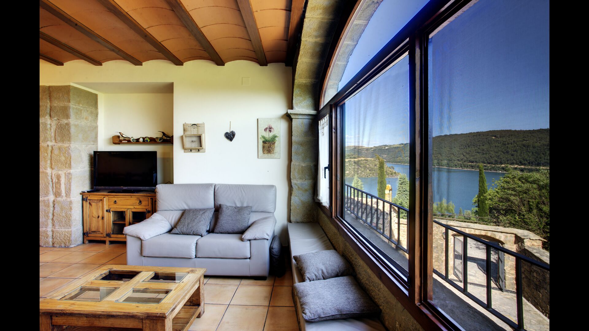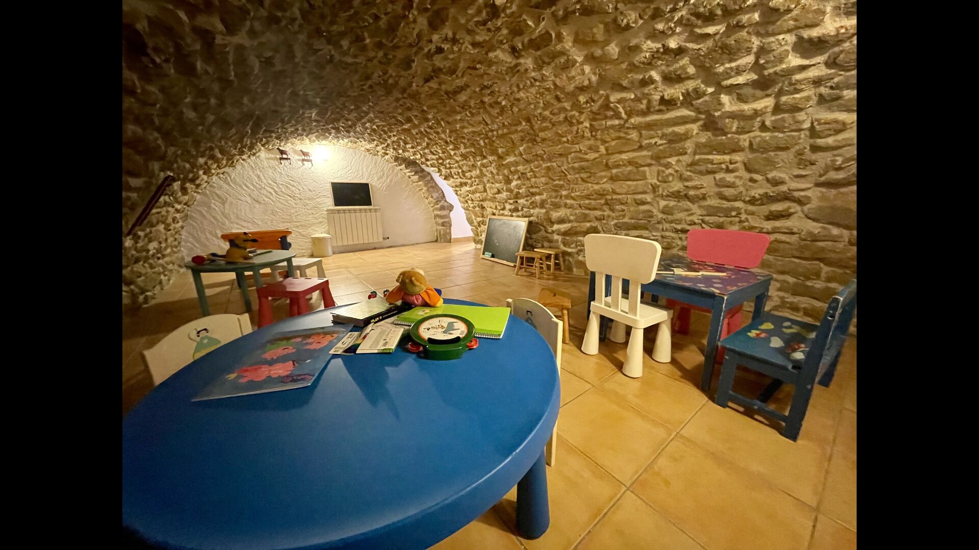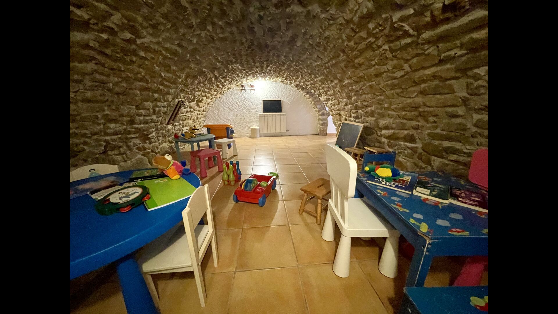 Im ersten Stock finden Sie noch 5 Doppelzimmer (3 mit Doppelbetten und 2 mit Einzelbetten) und drei Bäder. In diesem Stock gibt es auch einen gewölbten Raum, wirklich für Kinder geeignet. Im zweiten Stock gibt es zwei Schlafzimmer mit Einzelbetten und ein Badezimmer. Und im dritten und letzten Stock gibt es noch ein Zweibettzimmer. Einige der Zimmer haben französischen Balkonen, damit Sie beim Aufwachen den schönen Aussicht genießen können.