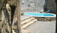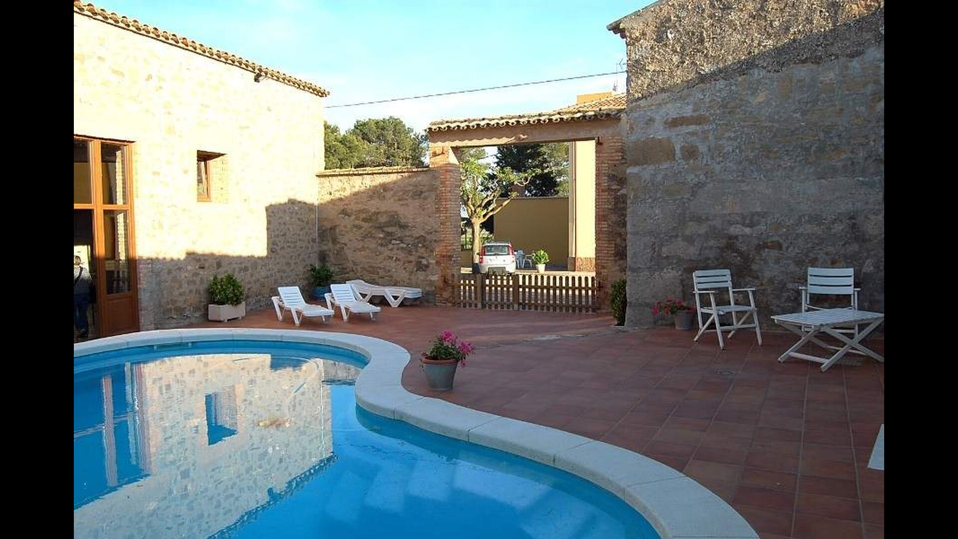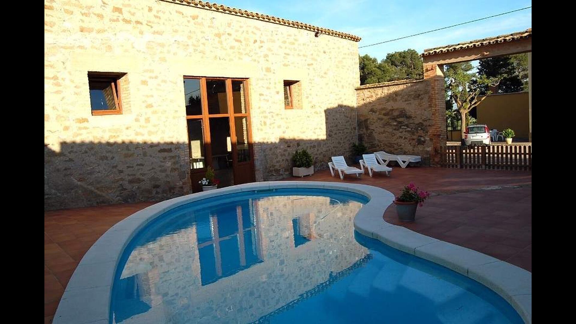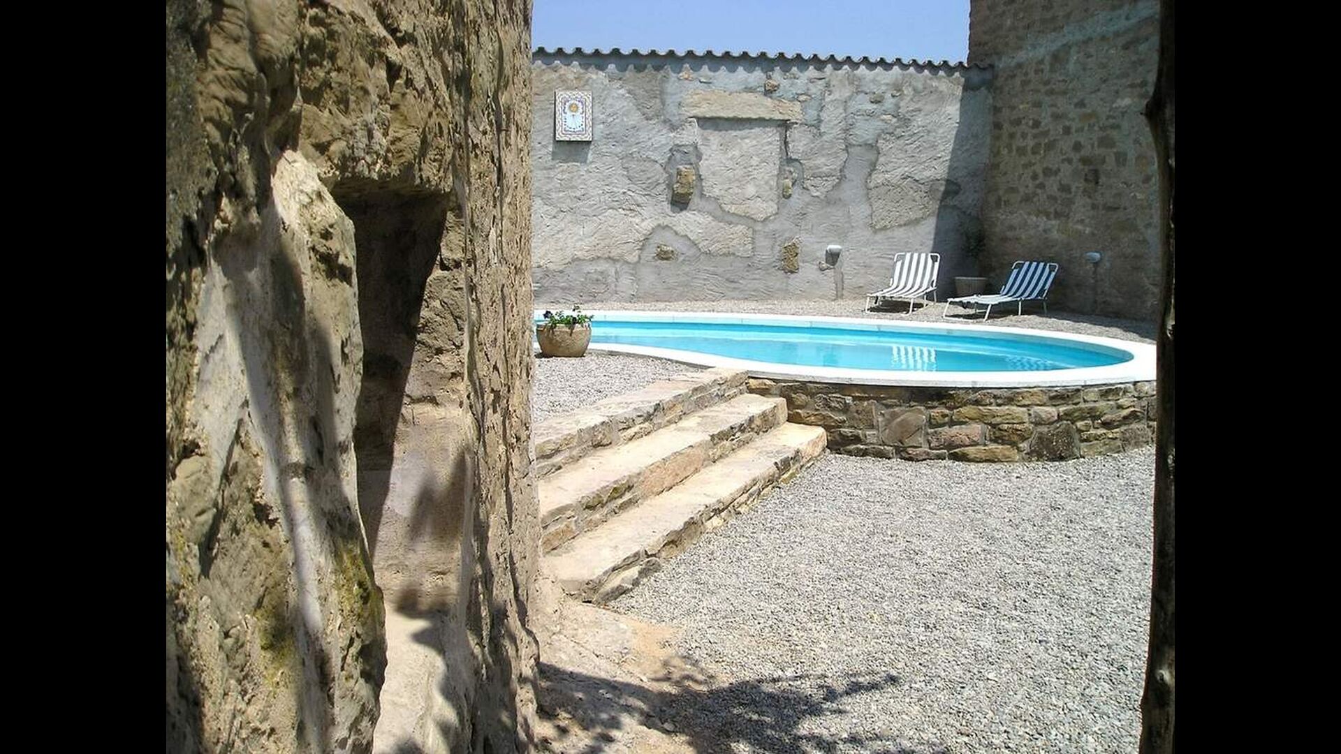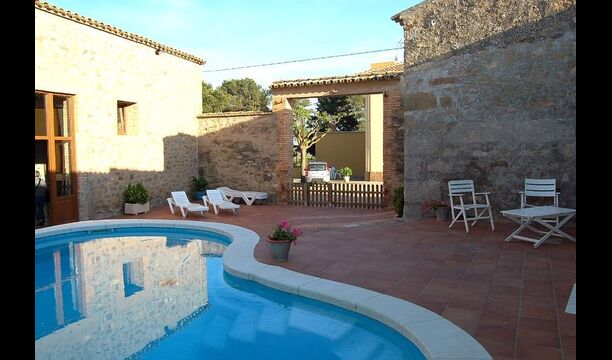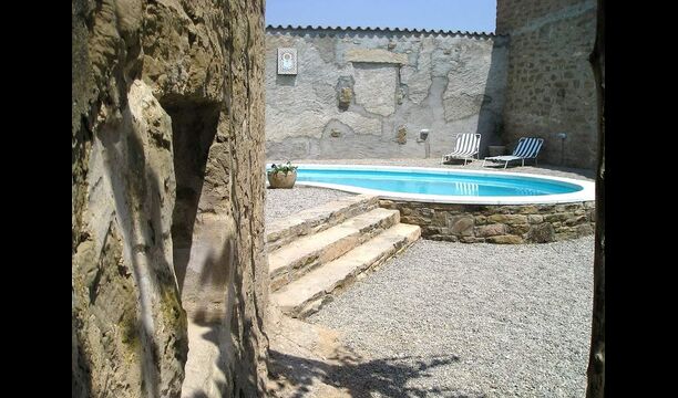 Der Pool-Bereich befindet sich zwischen den beiden Gebäuden. Es hat einen schönen Swimmingpool mit Liegestühlen und den Pool-Bereich kann durch ein Tor geschlossen werden, wenn Sie kleine Kinder mitbringen. In dieser Bereich gibt es eine überdachte Terrasse, die auch für Feierlichkeiten verwendet werden kann. Außerdem gibt es im Pool-Bereich zwei Toiletten.