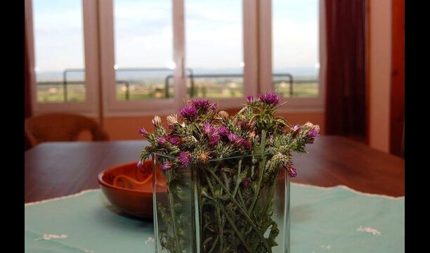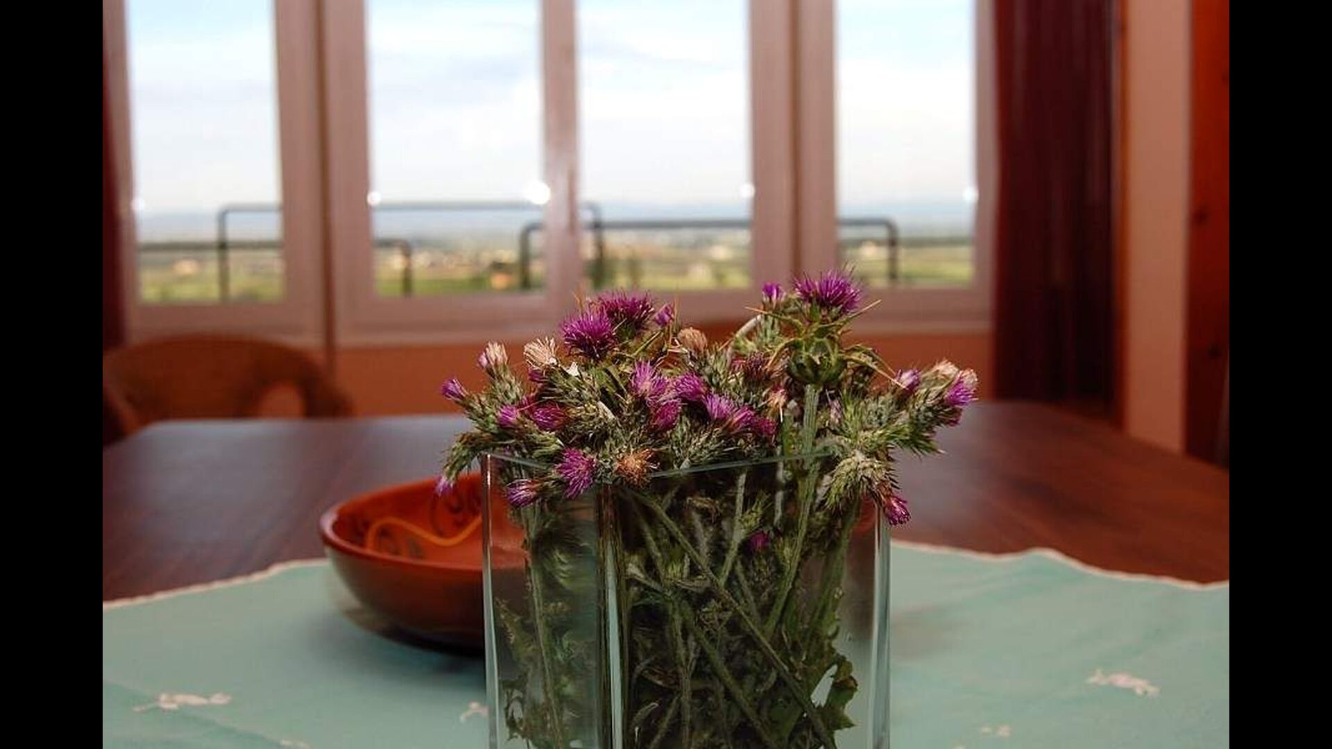 Im ersten Stock gibt es ein großes Esszimmer/Wohnzimmer mit Kamin, vier Doppelzimmer, drei von ihnen mit einzelnen Betten und eins mit Doppelbett. Die Zimmer teilen sich zwei Badezimmer. Das Haus verfügt über mehrere Balkone und Terrassen mit herrlichen Aussichten.