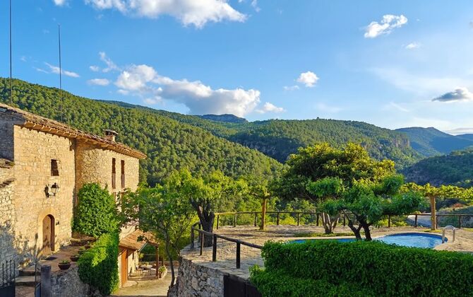 Can de Toriña bietet großzügige Innen- und Außenbereiche, umgeben von Wäldern und Berglandschaften, und ist damit ein ideales Ziel für Familien oder Gruppen, die Natur, Geschichte und Erholung in den Pyrenäen erleben möchten.