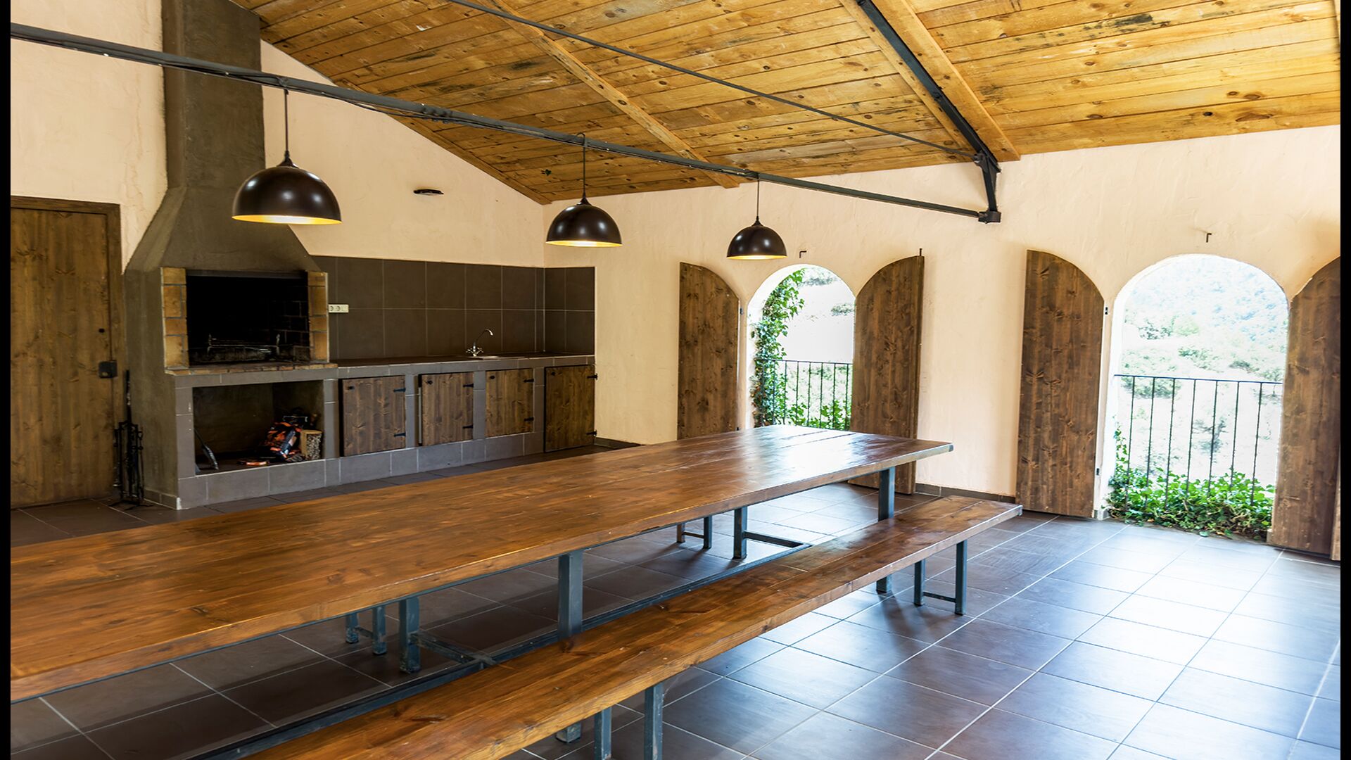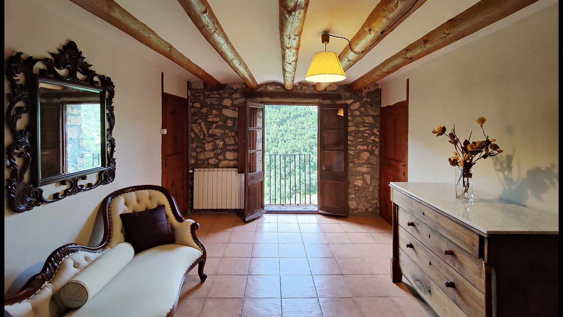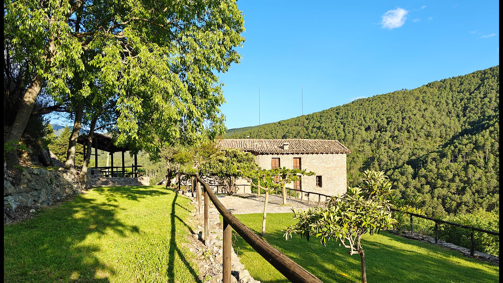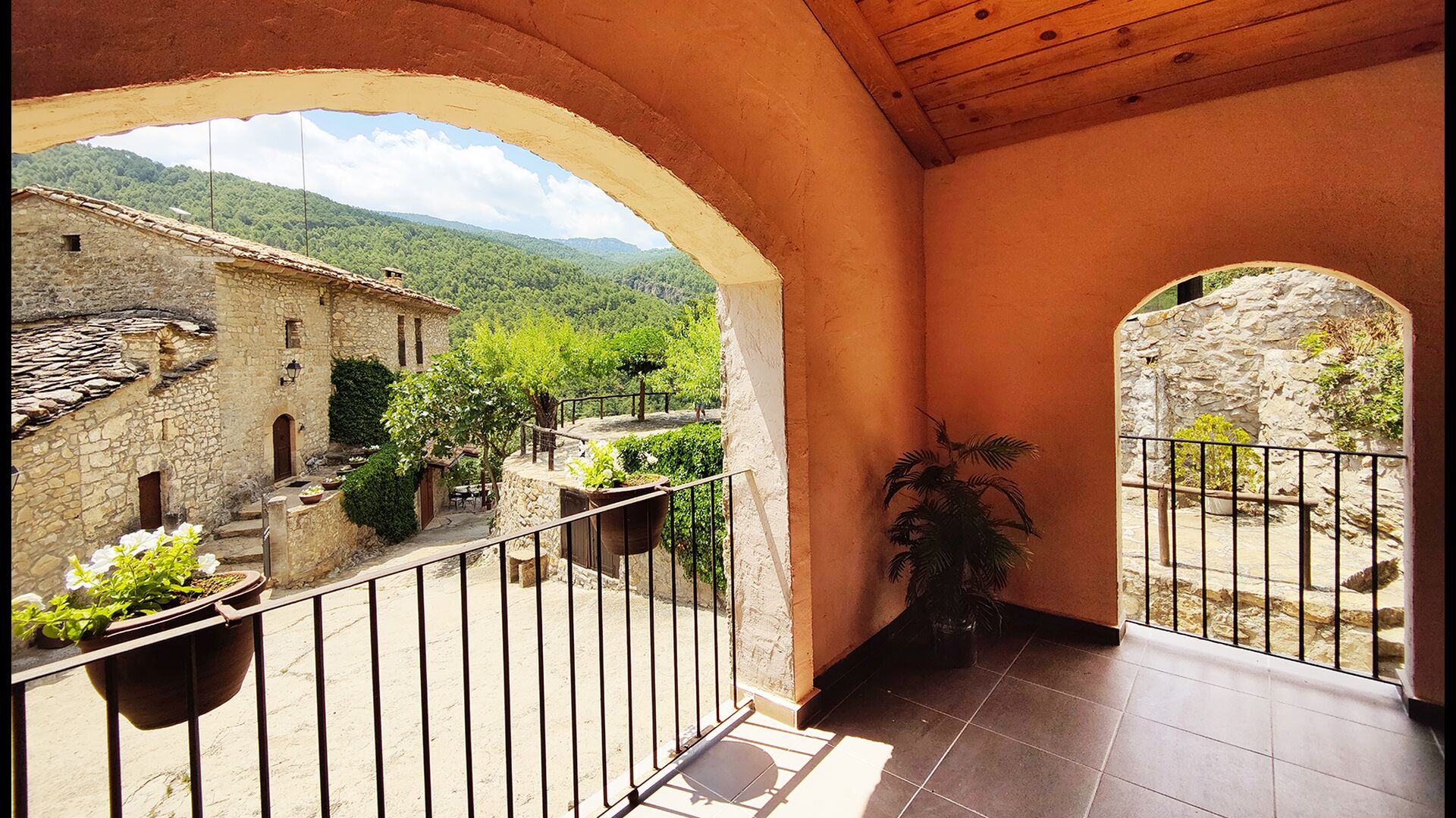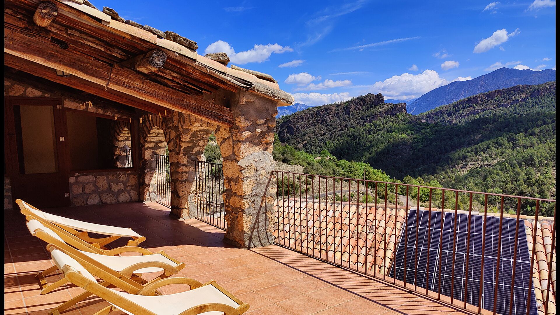 Die überdachte Terrasse ist einer der charmantesten Orte des Hauses und perfekt für ein Frühstück oder zum Entspannen, während man dem nahegelegenen Valldarques-Bach lauscht.