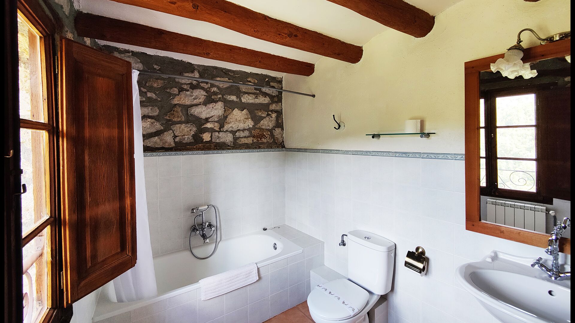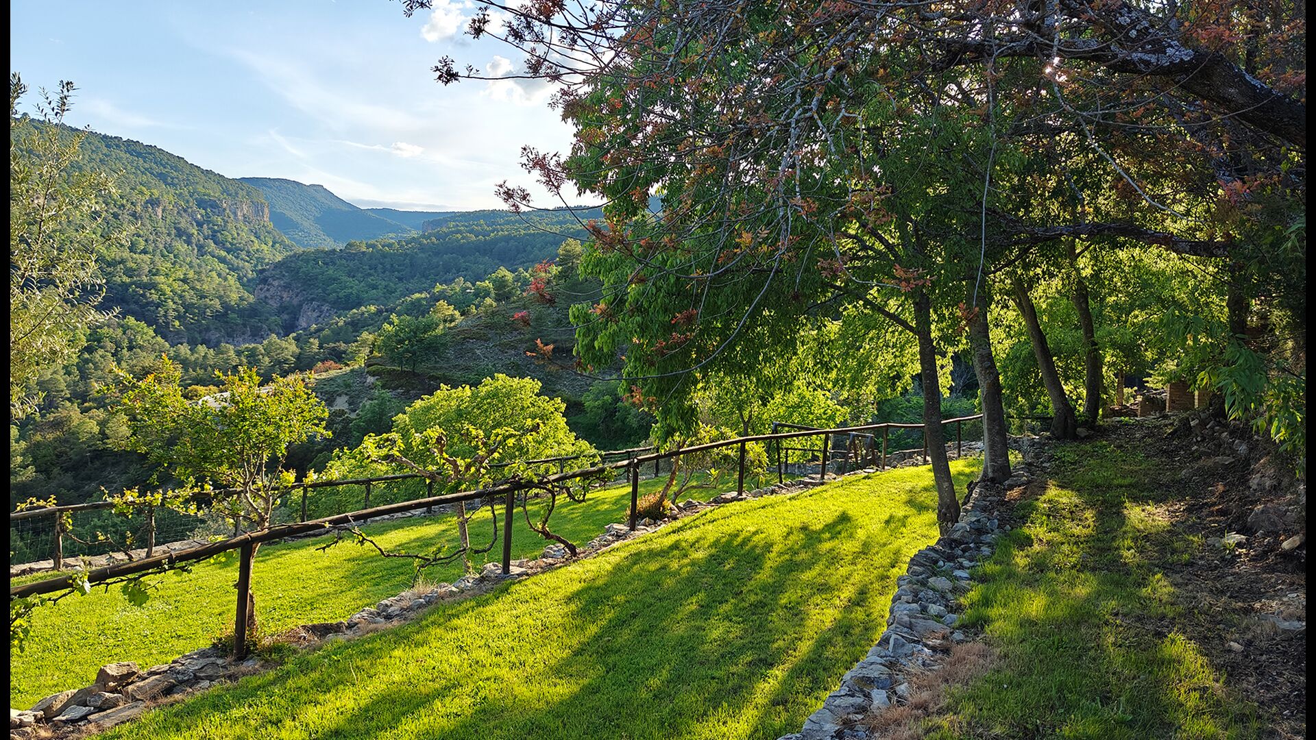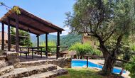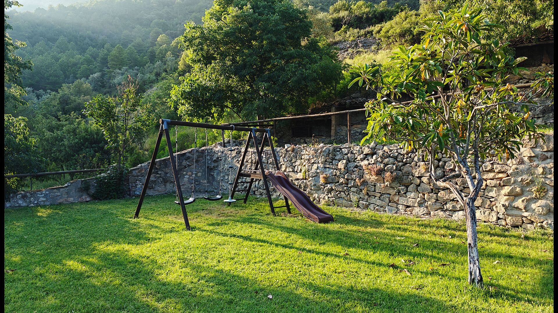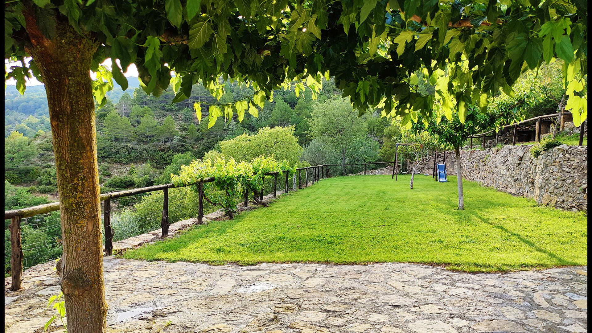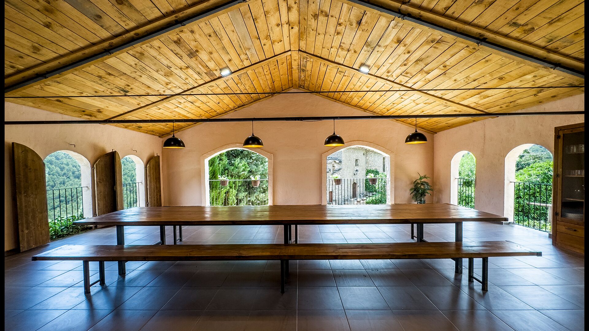 Die überdachte Terrasse ist einer der charmantesten Orte des Hauses und perfekt für ein Frühstück oder zum Entspannen, während man dem nahegelegenen Valldarques-Bach lauscht.