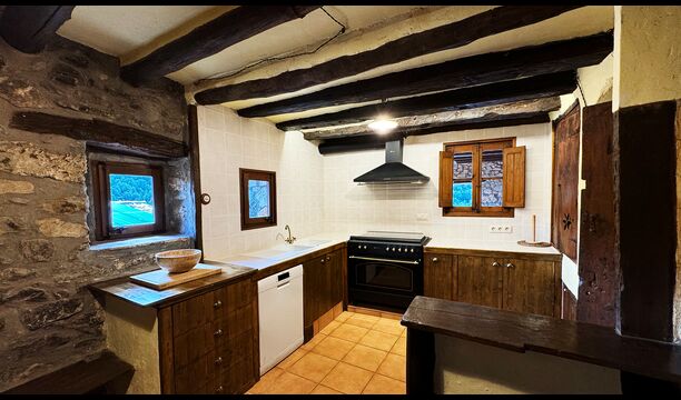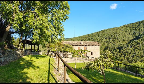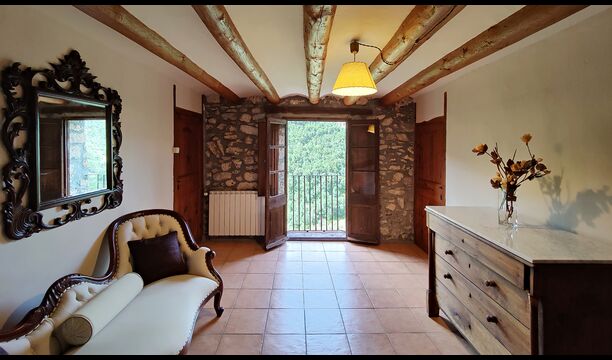 Can de Toriña ist eine beeindruckende historische katalanische Masia aus dem 10. Jahrhundert, gelegen in der wunderschönen Berglandschaft der katalanischen Pyrenäen nahe dem Dorf Coll de Nargó in der Region Alt Urgell. Das Haus wurde sorgfältig restauriert und verbindet traditionelle pyrenäische Architektur mit modernem Komfort, während es seinen ursprünglichen Charme und seinen historischen Charakter bewahrt.