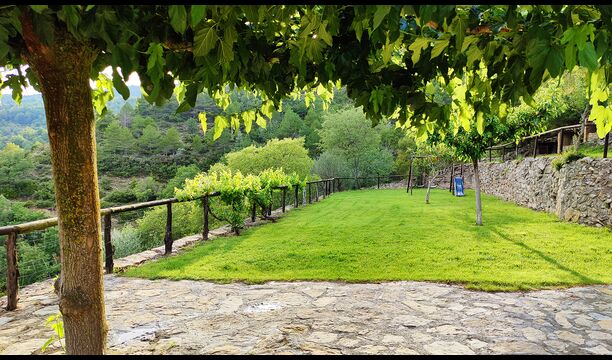 Der Außenbereich von Can de Toriña ist auf Erholung und Leben im Freien ausgelegt. Gäste können einen großen Garten mit Blick auf die Berge sowie mehrere Terrassen und schattige Sitzbereiche genießen.