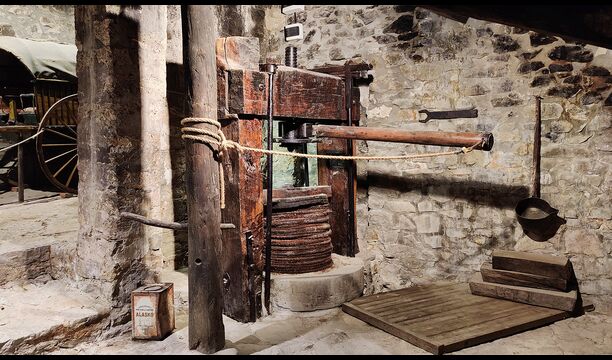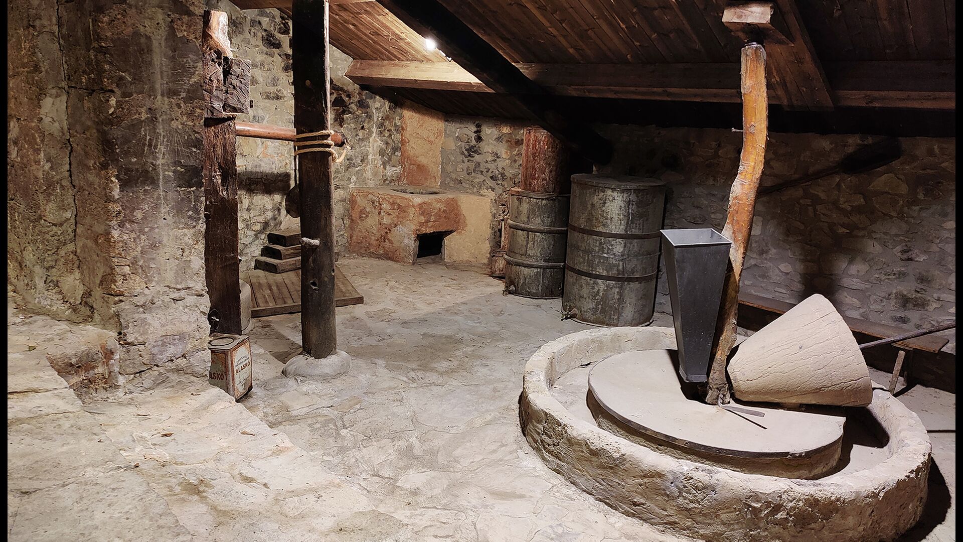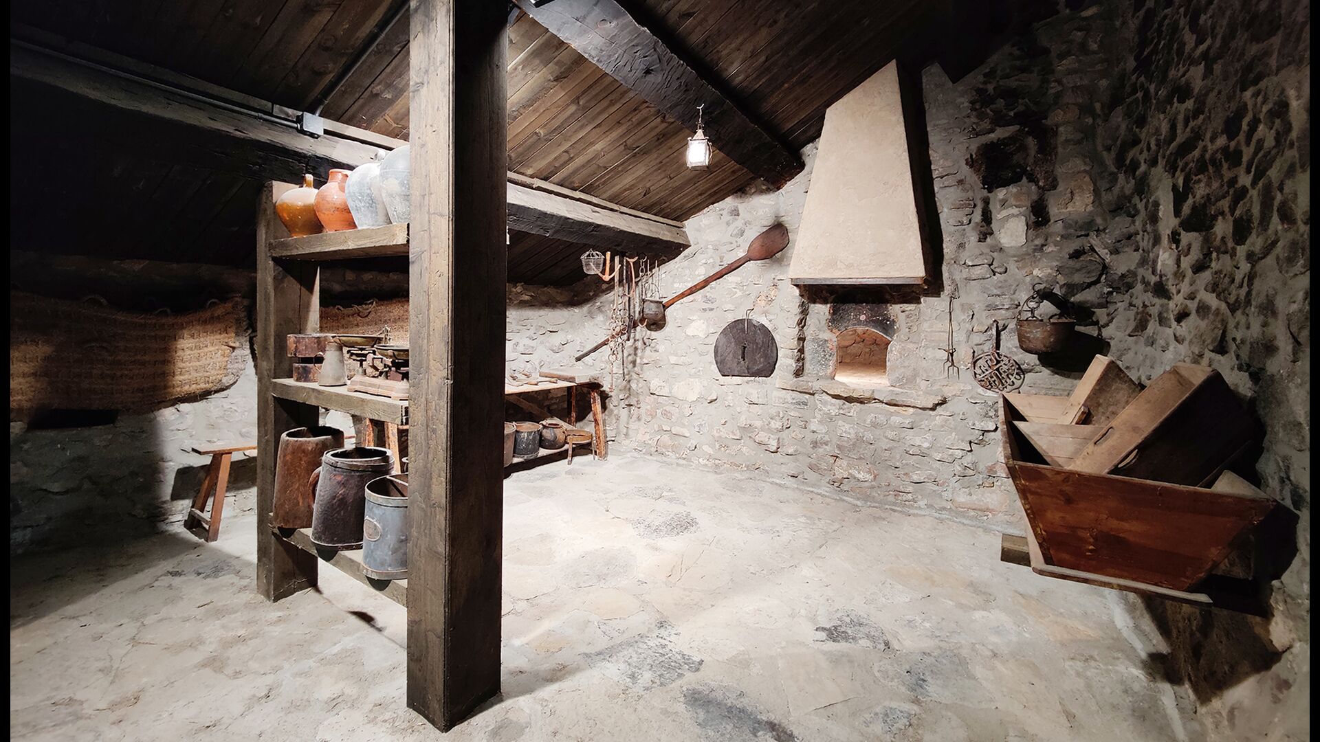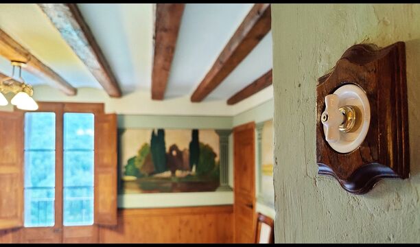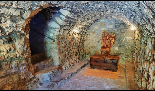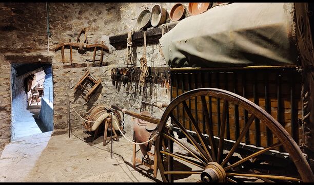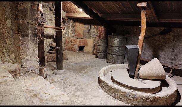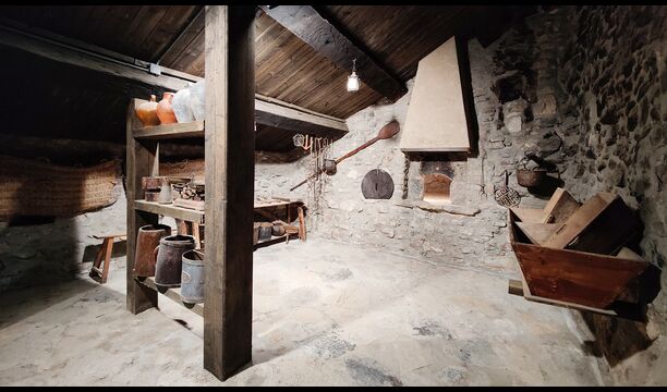 Das Anwesen verfügt über dicke Steinmauern, einen massiven Holzeingang und sogar erhaltene Fresken aus dem 18. Jahrhundert, die die lange Geschichte dieses traditionellen Landgutes widerspiegeln. Eine kleine Kapelle und ein Museum, die mit dem Haus verbunden sind, zeigen Werkzeuge und Räume, die das tägliche Leben in einem selbstversorgenden Bergbauernhof in früheren Zeiten veranschaulichen.