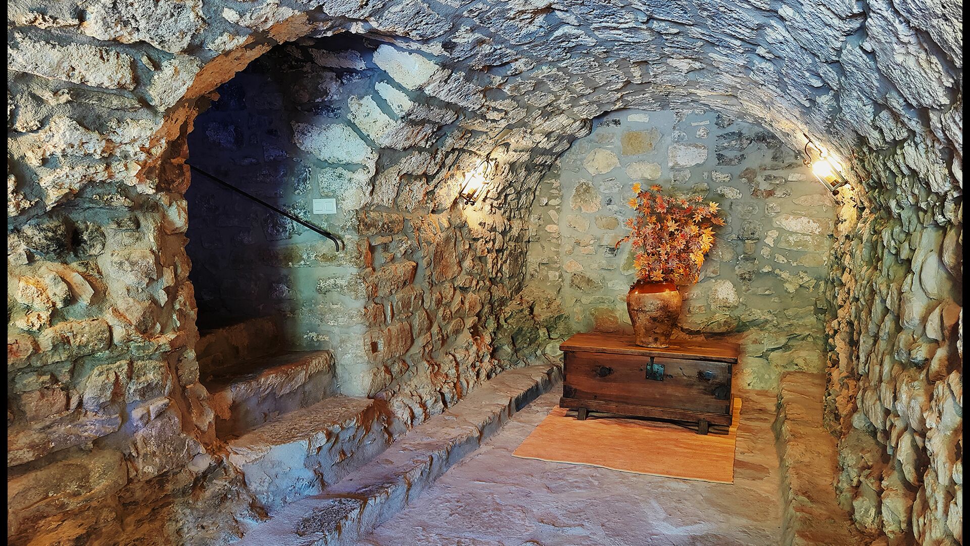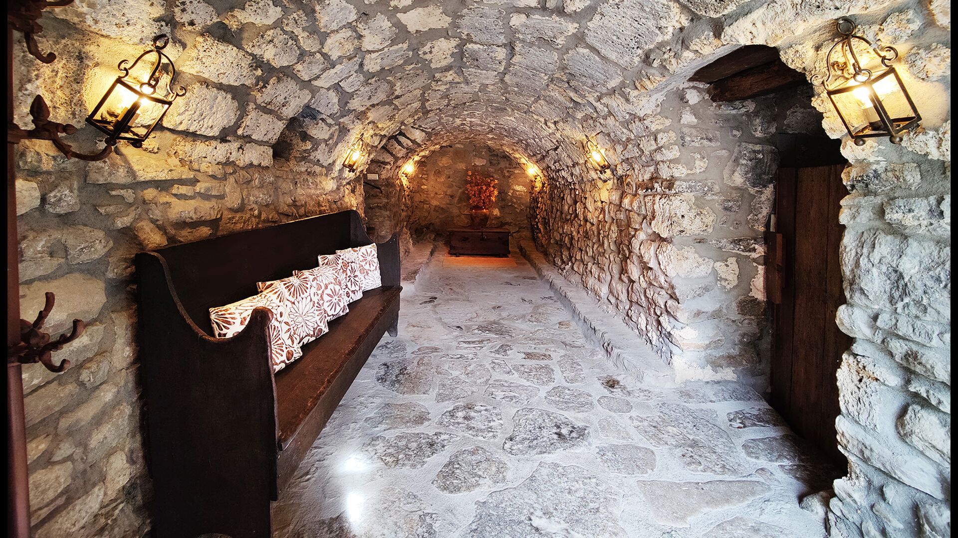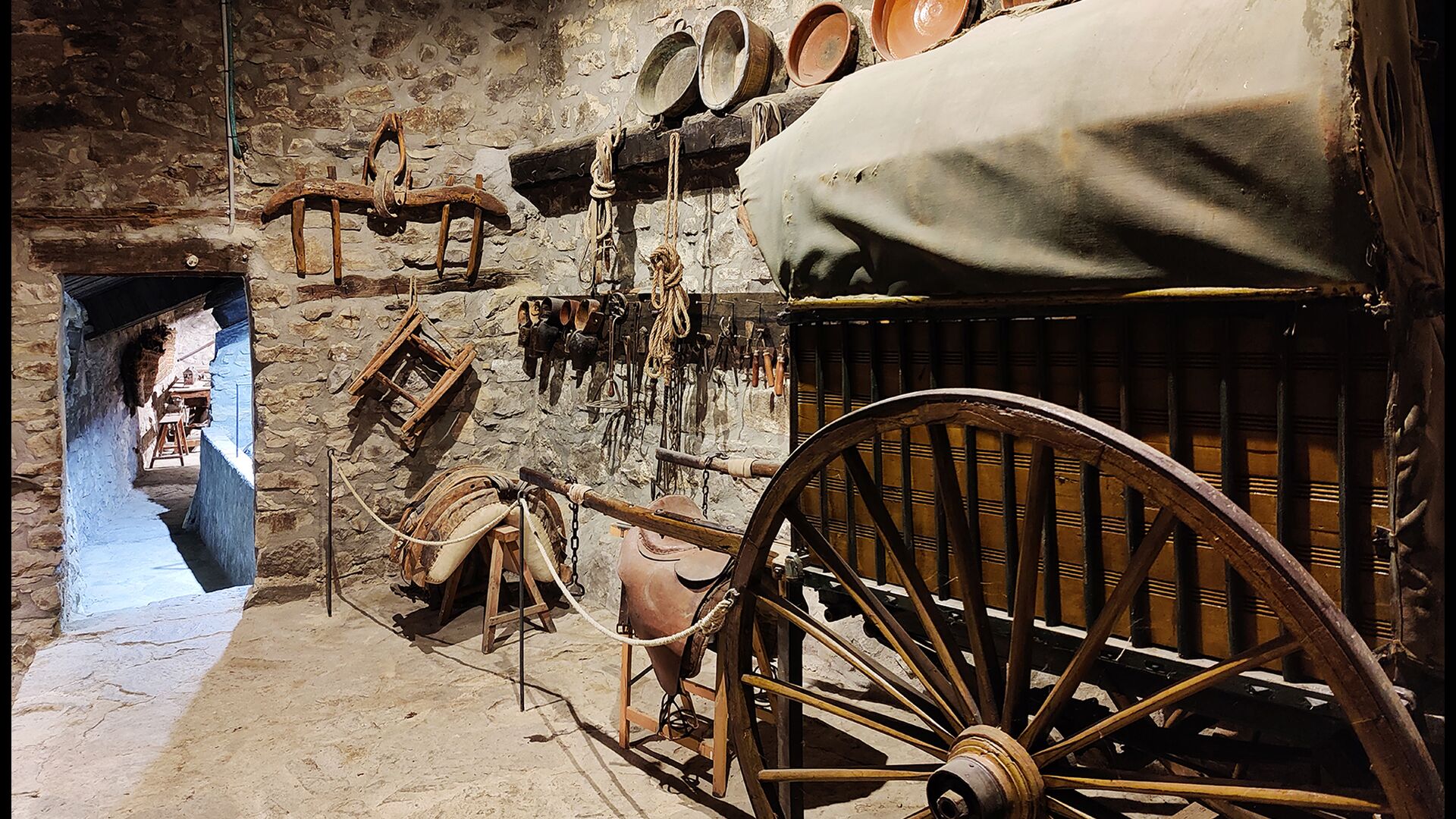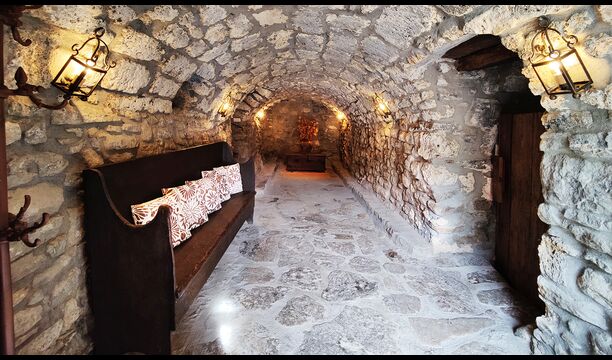 Das Anwesen verfügt über dicke Steinmauern, einen massiven Holzeingang und sogar erhaltene Fresken aus dem 18. Jahrhundert, die die lange Geschichte dieses traditionellen Landgutes widerspiegeln. Eine kleine Kapelle und ein Museum, die mit dem Haus verbunden sind, zeigen Werkzeuge und Räume, die das tägliche Leben in einem selbstversorgenden Bergbauernhof in früheren Zeiten veranschaulichen.