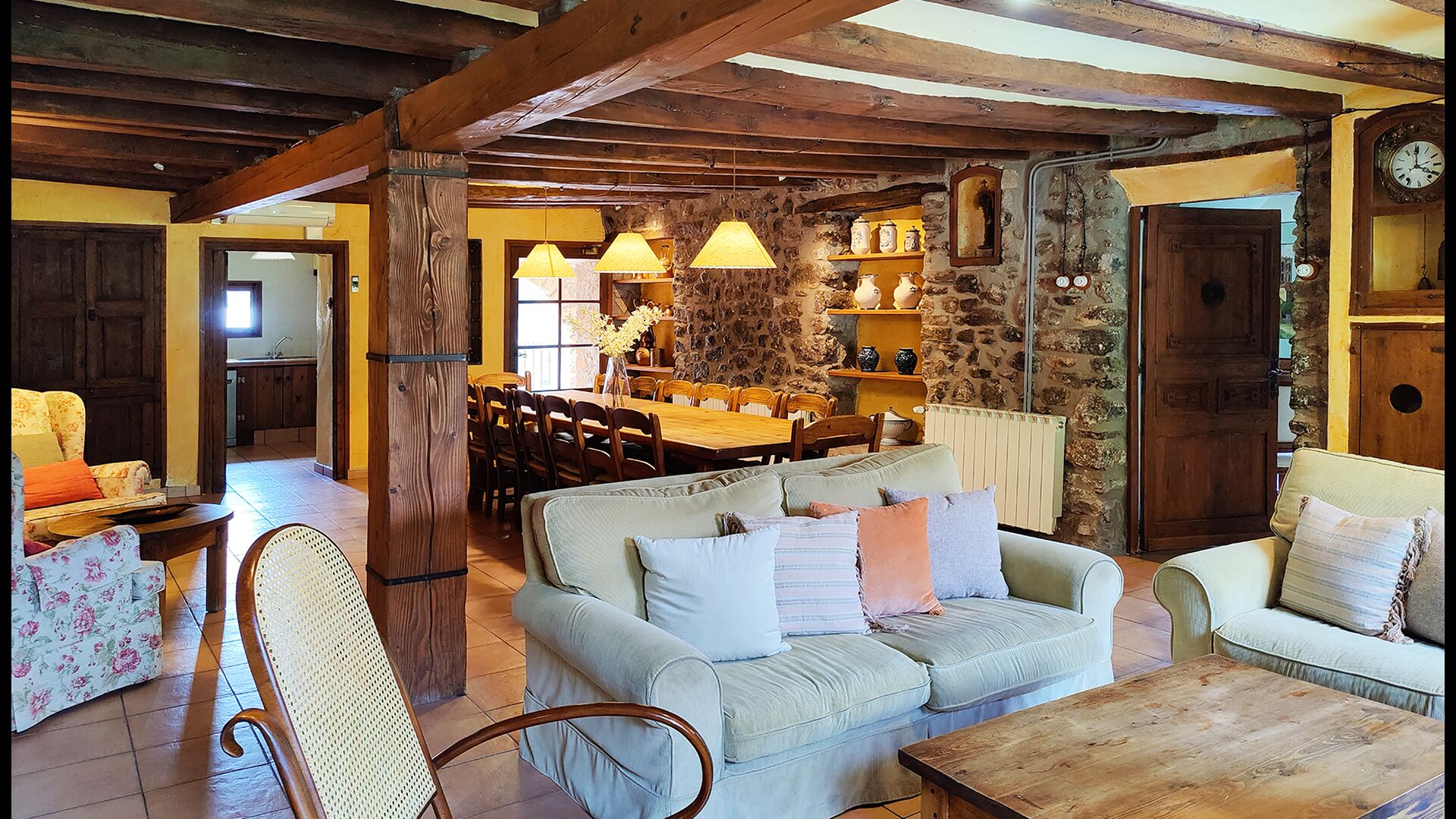 Das Haus verfügt über 7 Doppelzimmer und 10 Badezimmer, was Komfort und Privatsphäre für gemeinsam reisende Gruppen gewährleistet. Einige Zimmer verfügen über ein eigenes Badezimmer, während andere in der Nähe gemeinsamer Einrichtungen liegen.