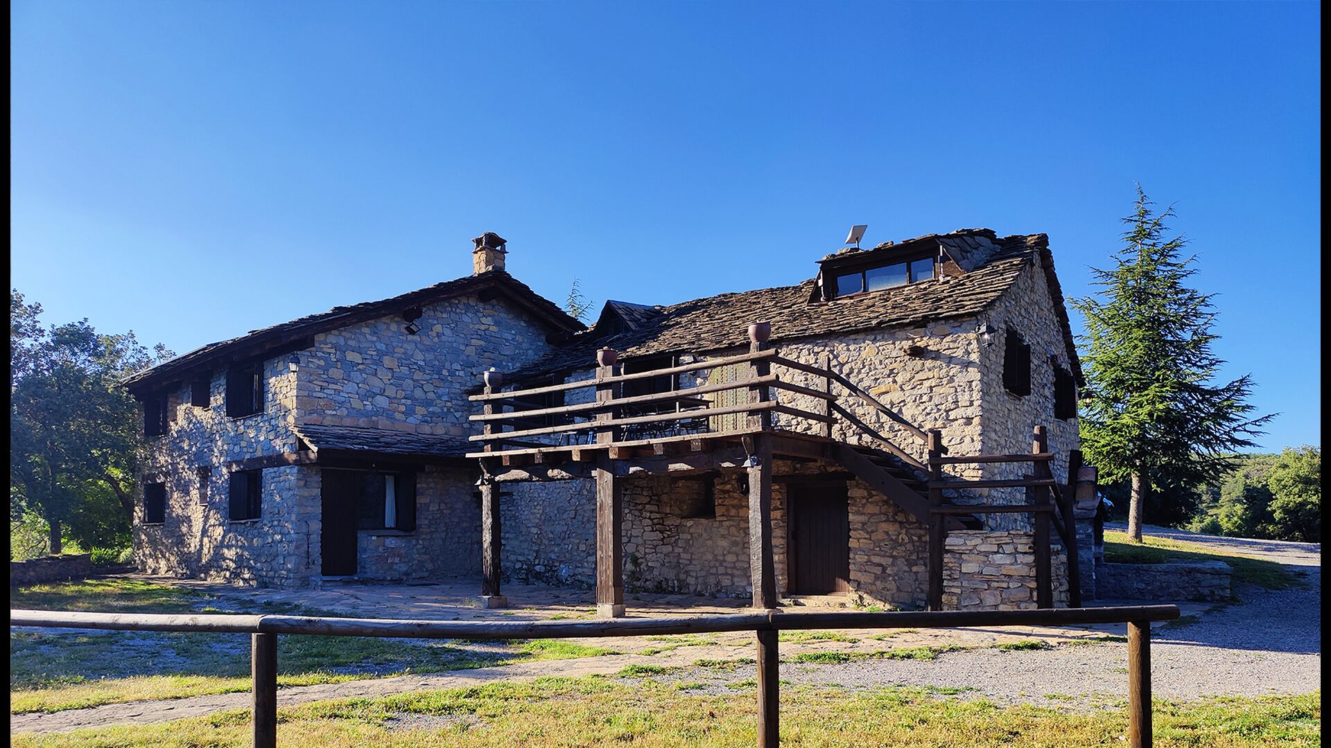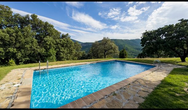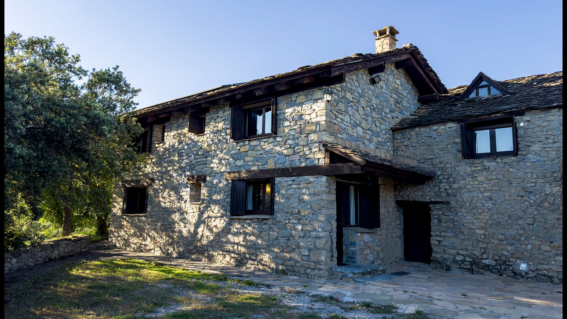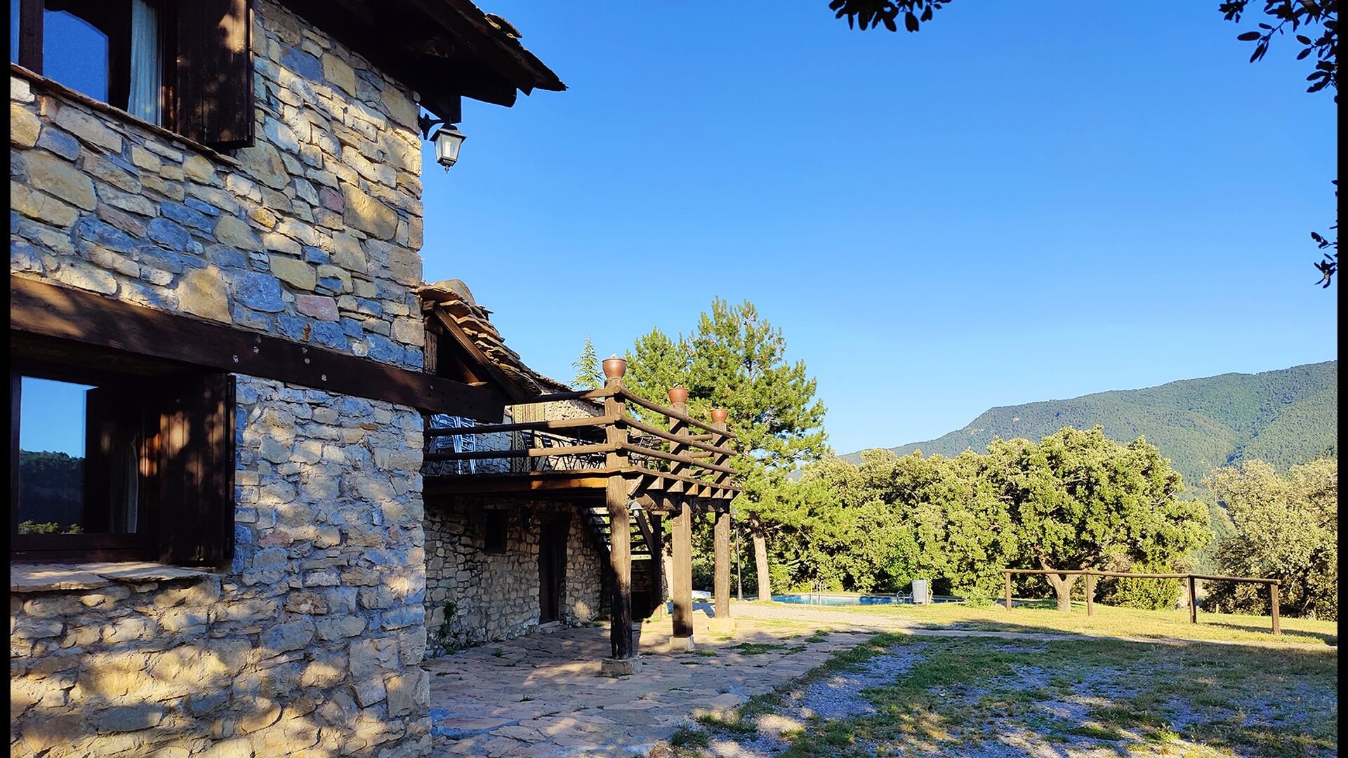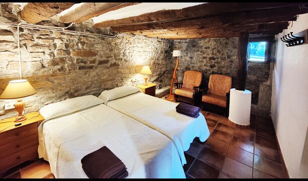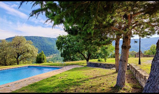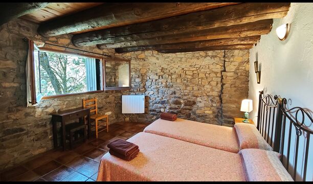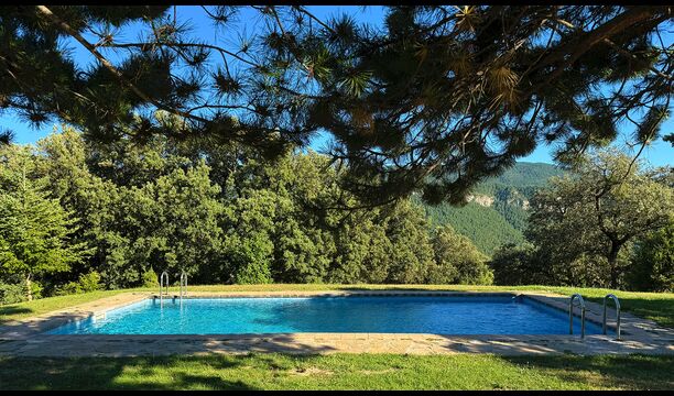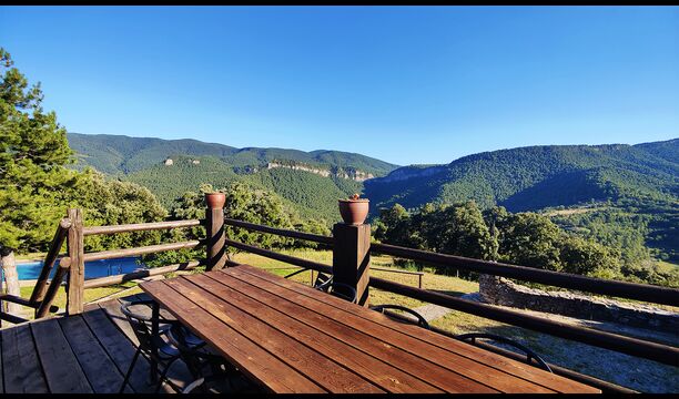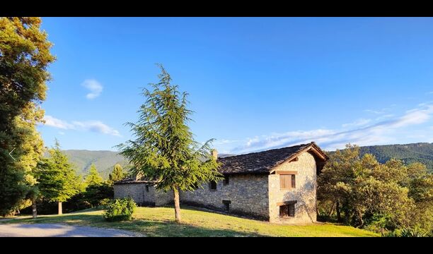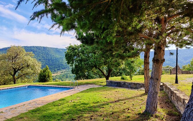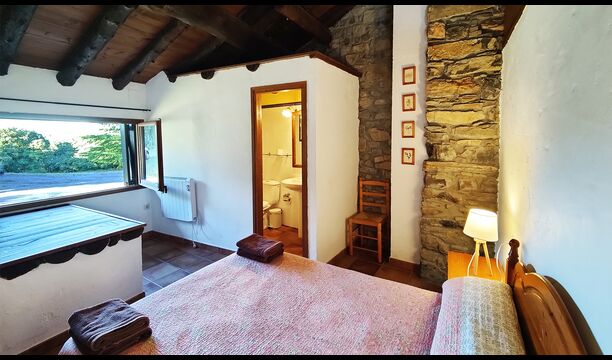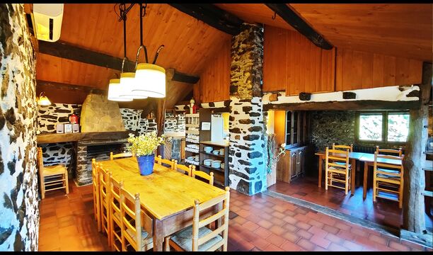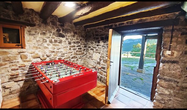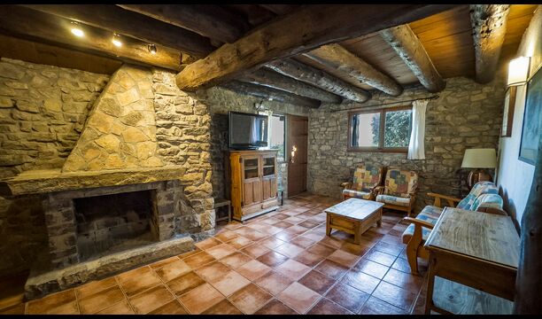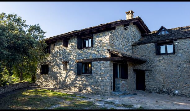 Das Anwesen verbindet traditionelle pyrenäische Architektur – Steinmauern, Holzelemente und natürliche Materialien – mit modernem Komfort. Großzügige Gemeinschaftsbereiche und Außenterrassen laden dazu ein, lange Sommertage zu genießen und die beeindruckende Aussicht auf die umliegenden Berge zu erleben.