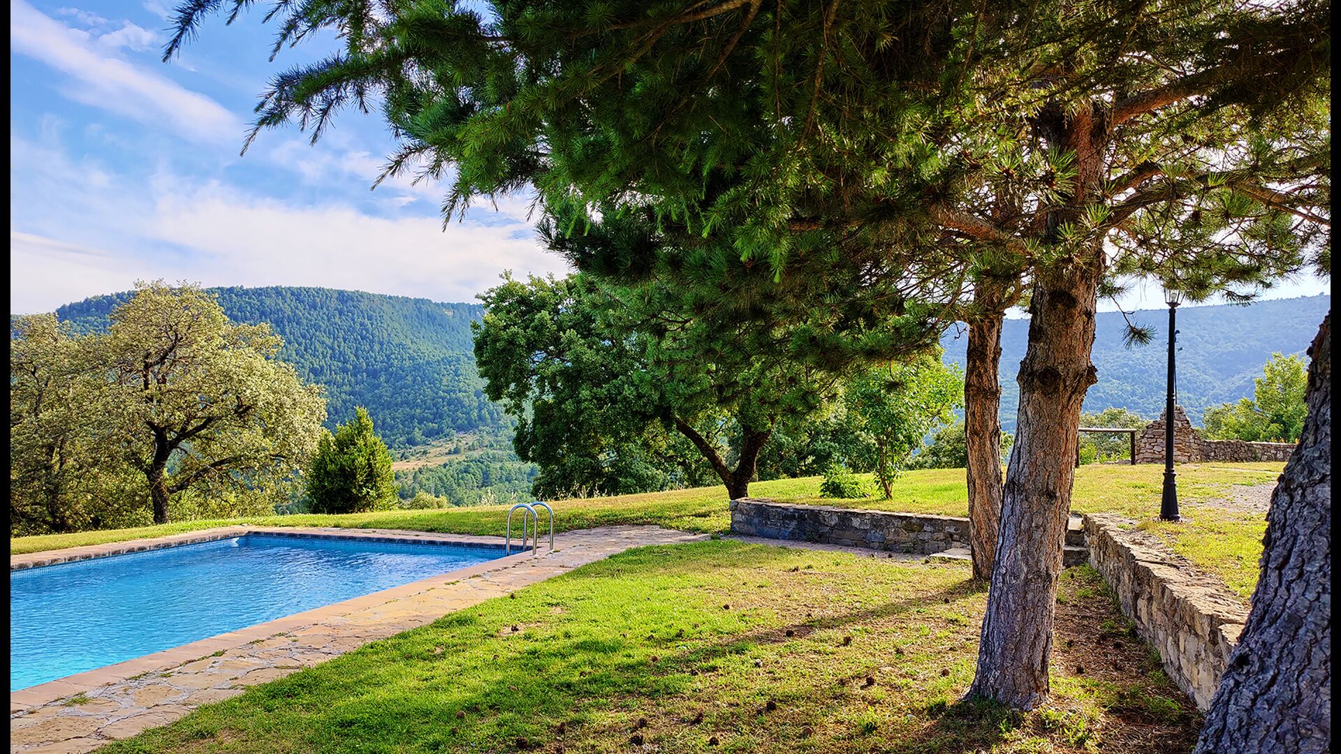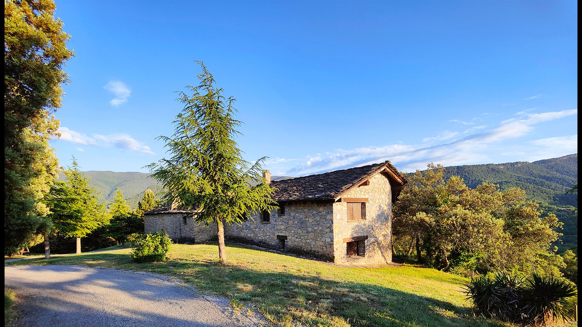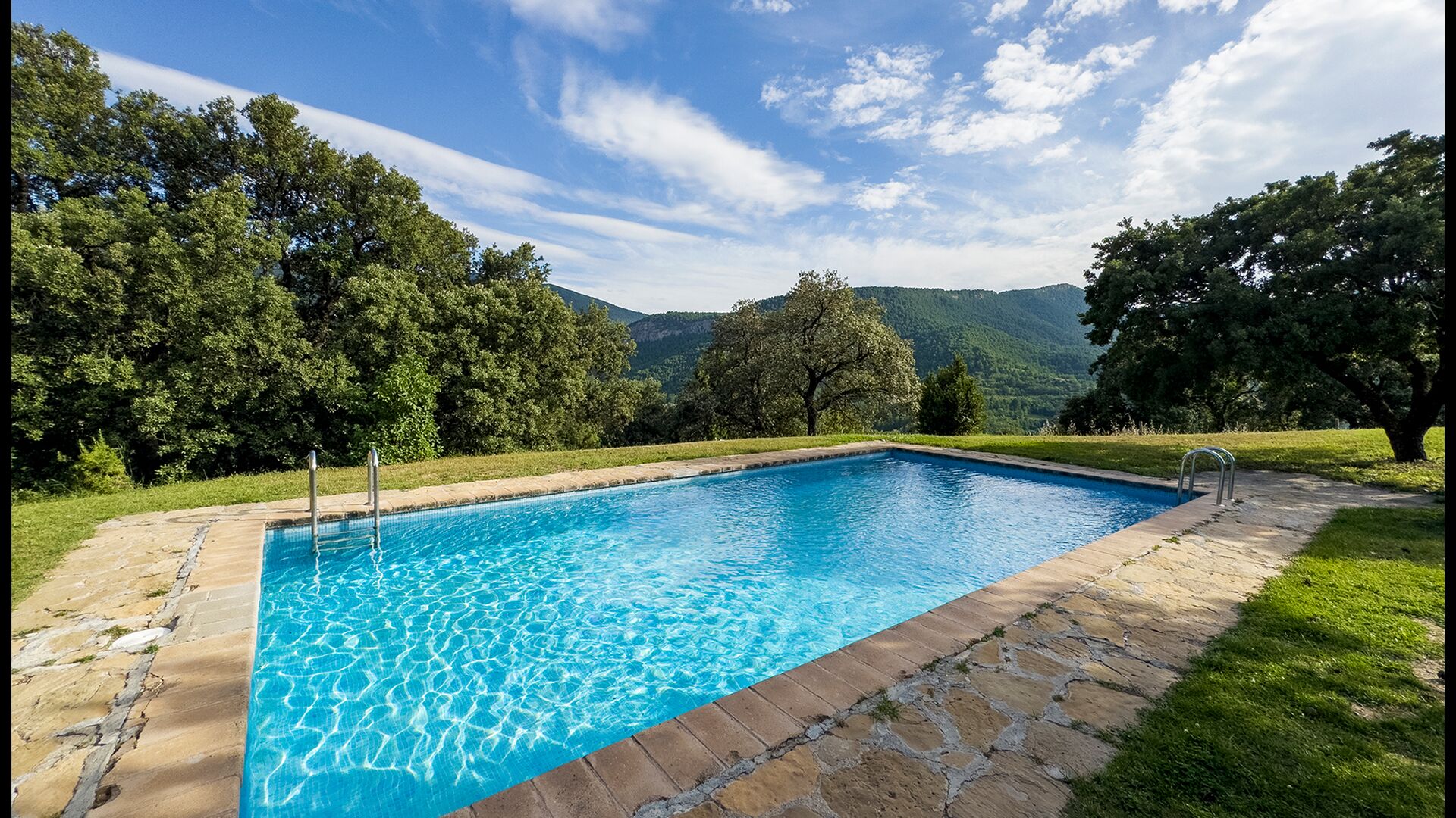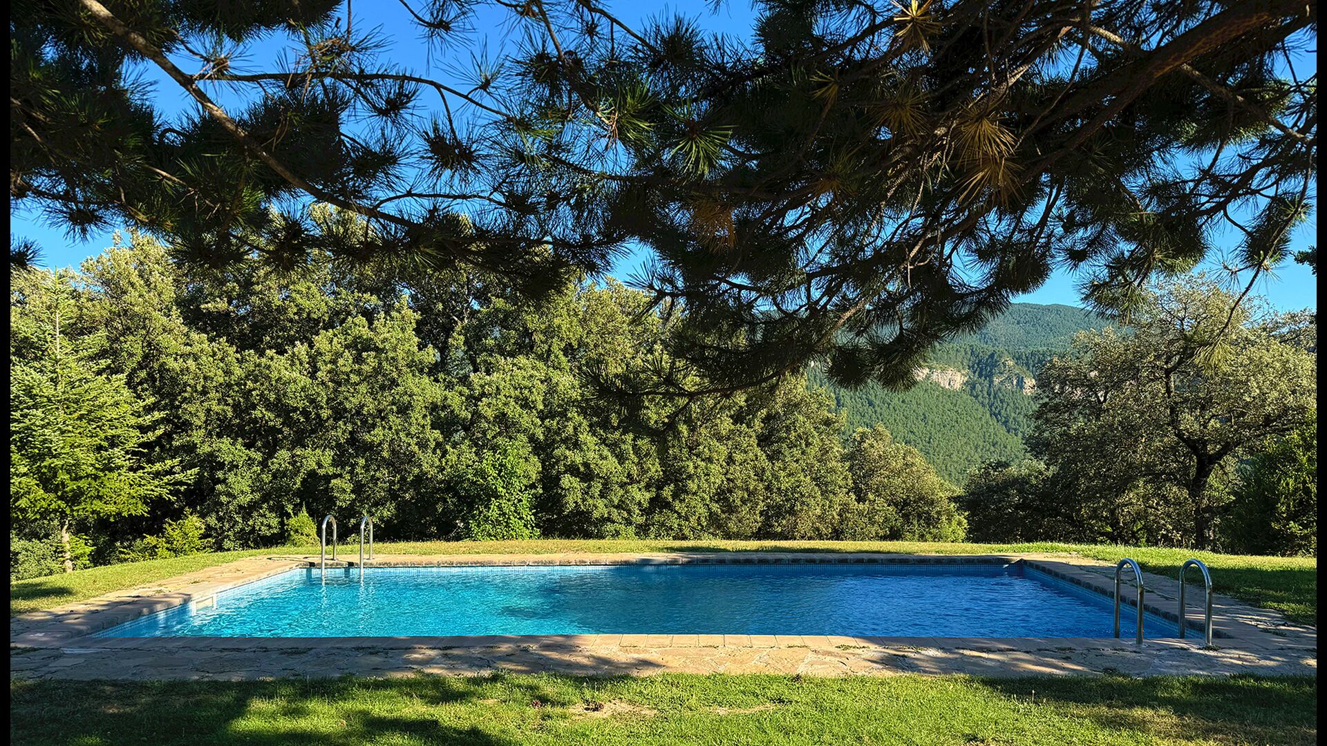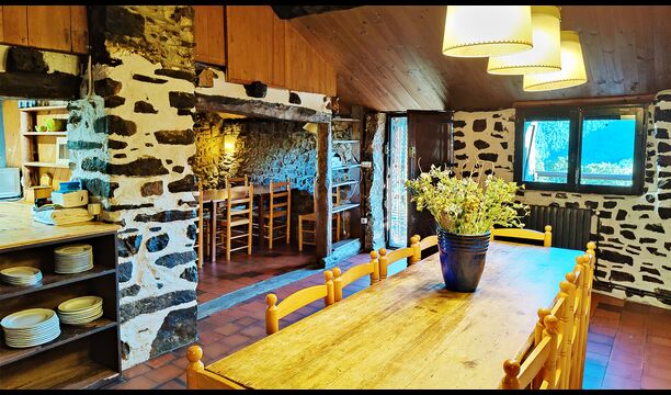 Das Anwesen verbindet traditionelle pyrenäische Architektur – Steinmauern, Holzelemente und natürliche Materialien – mit modernem Komfort. Großzügige Gemeinschaftsbereiche und Außenterrassen laden dazu ein, lange Sommertage zu genießen und die beeindruckende Aussicht auf die umliegenden Berge zu erleben.