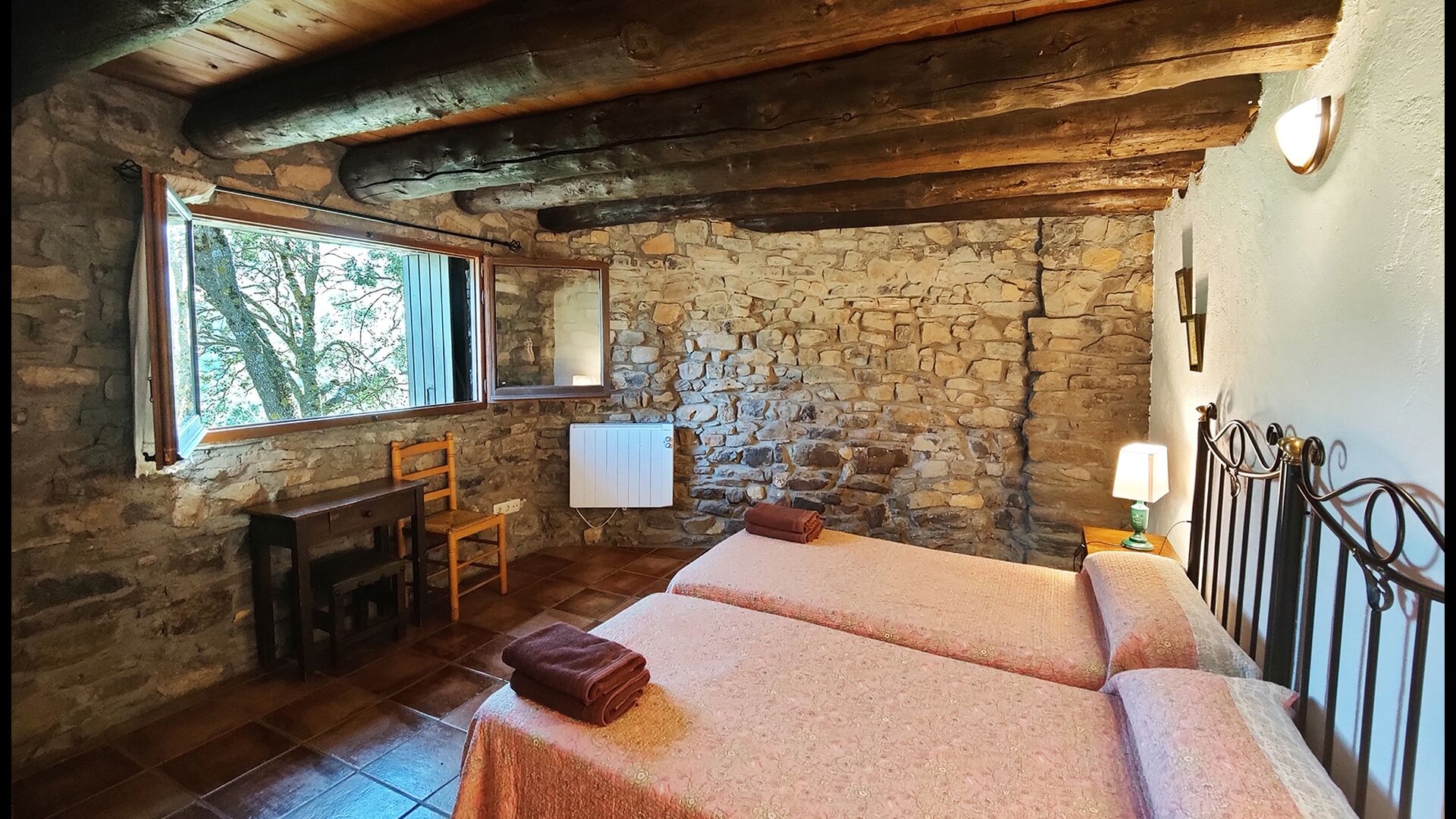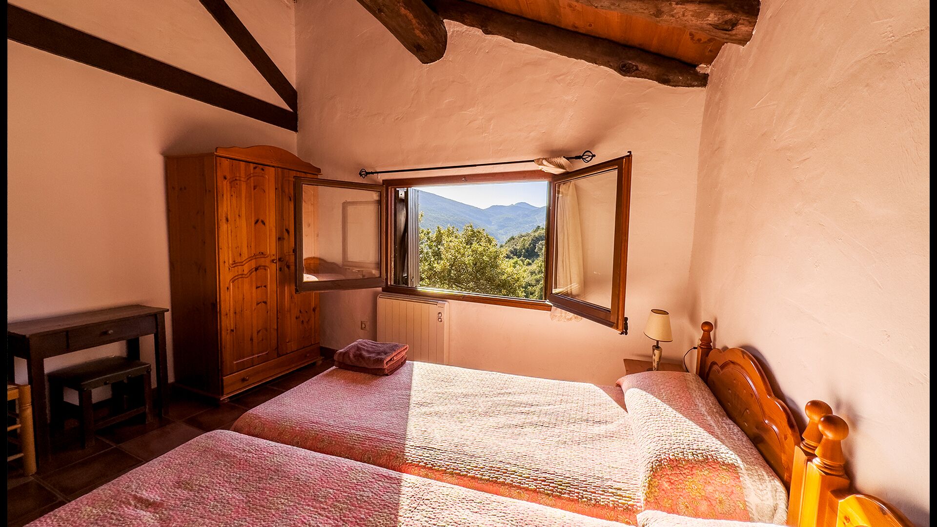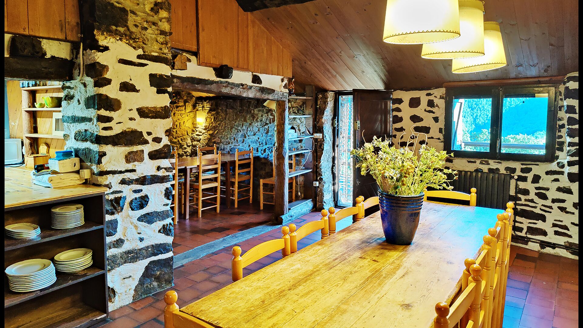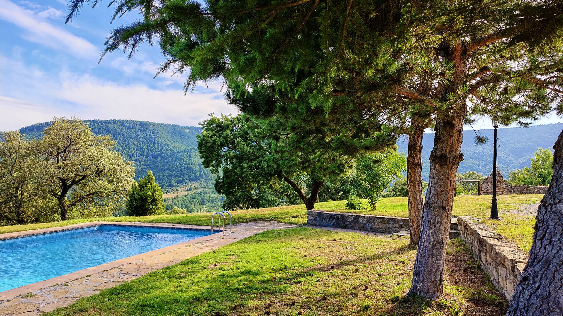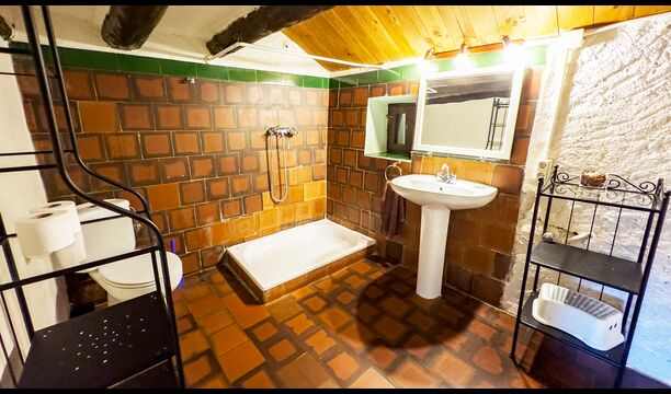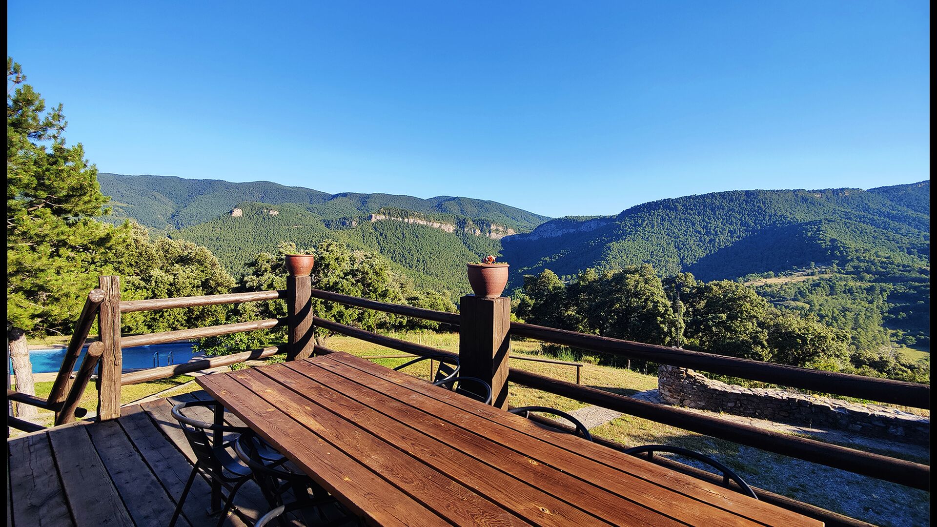 Das Anwesen verbindet traditionelle pyrenäische Architektur – Steinmauern, Holzelemente und natürliche Materialien – mit modernem Komfort. Großzügige Gemeinschaftsbereiche und Außenterrassen laden dazu ein, lange Sommertage zu genießen und die beeindruckende Aussicht auf die umliegenden Berge zu erleben.