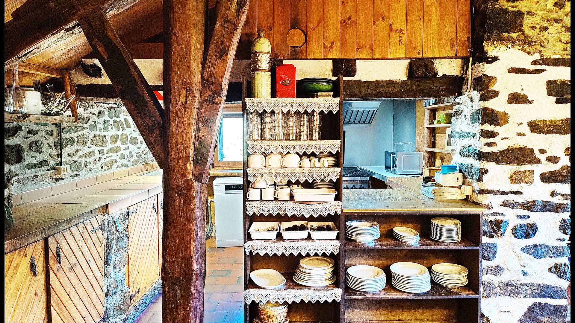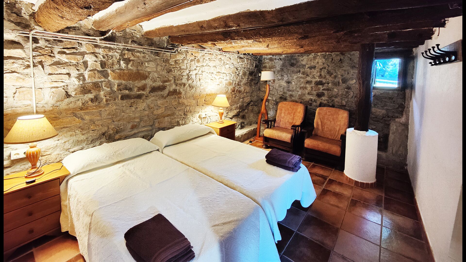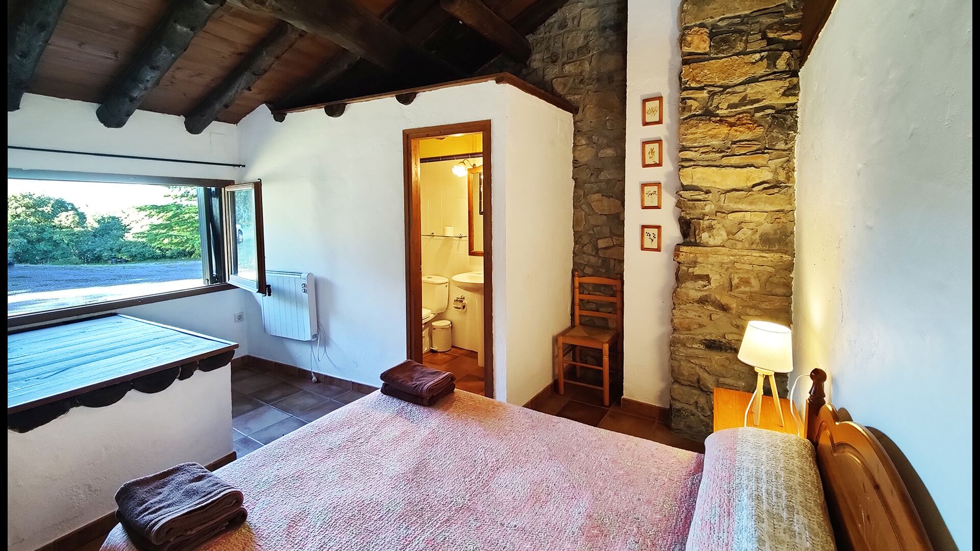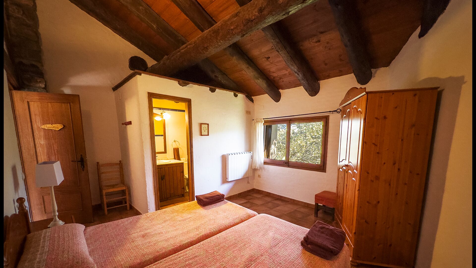 Die Unterkunft verteilt sich auf zwei miteinander verbundene Gebäude, wodurch eine angenehme Balance zwischen gemeinschaftlichen Bereichen und privaten Rückzugsorten entsteht.