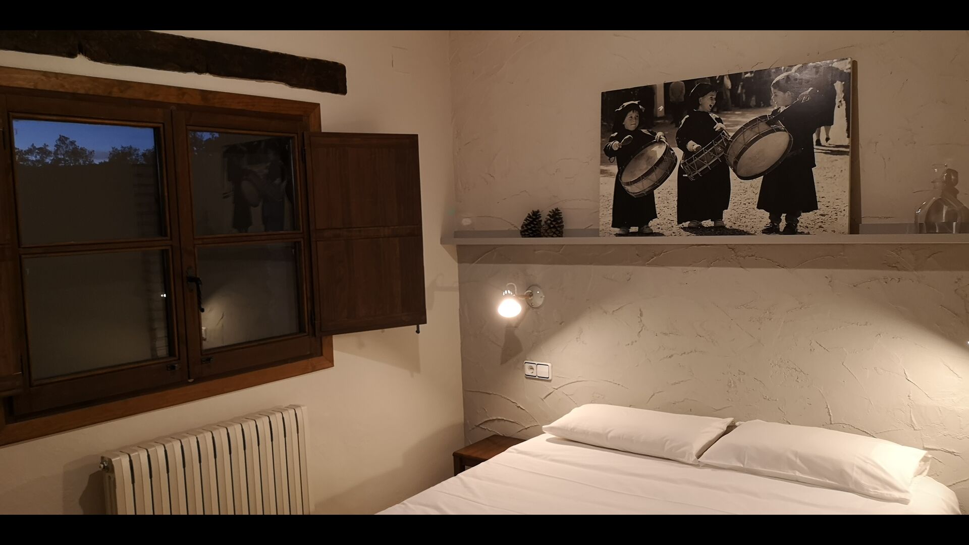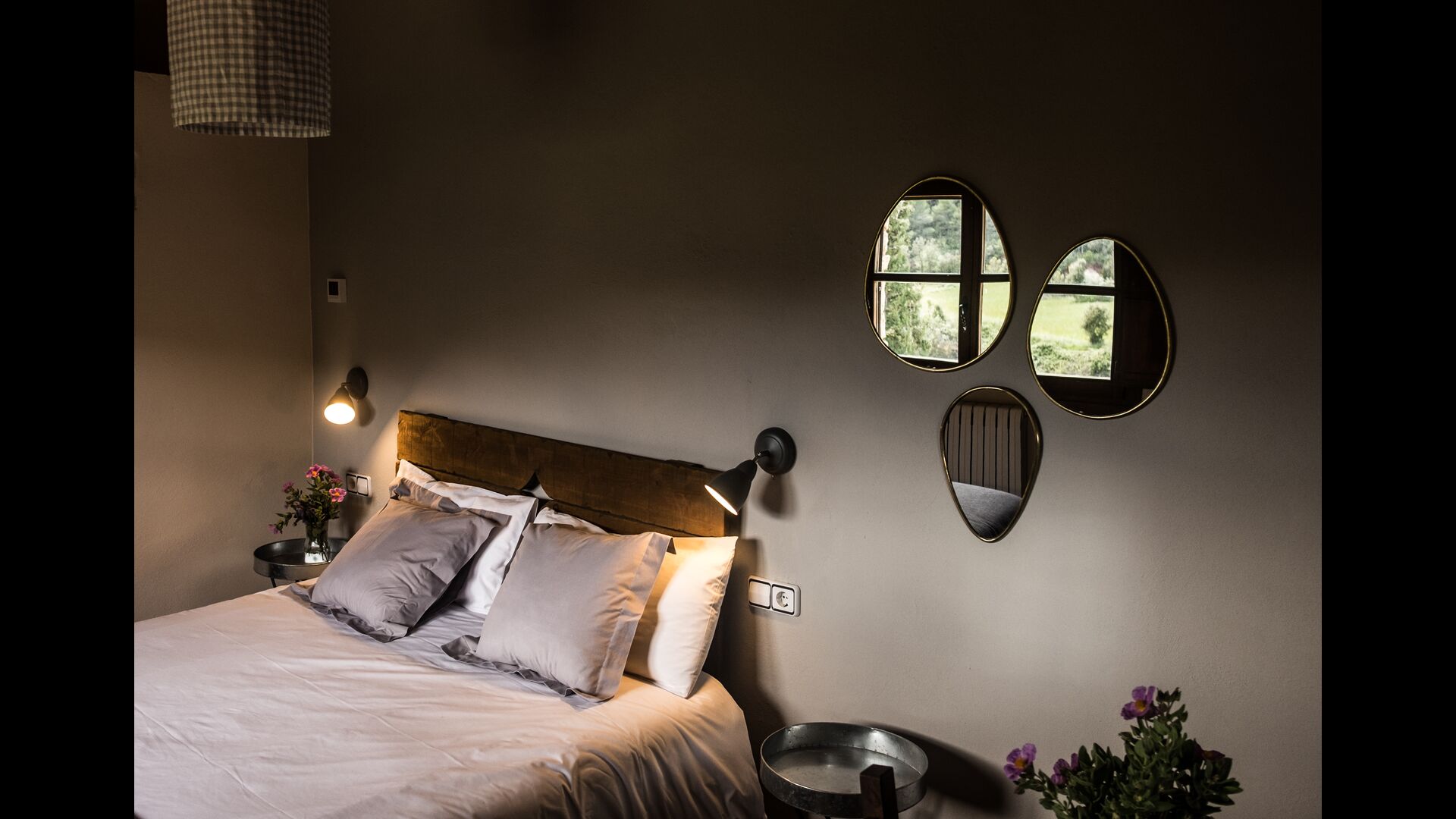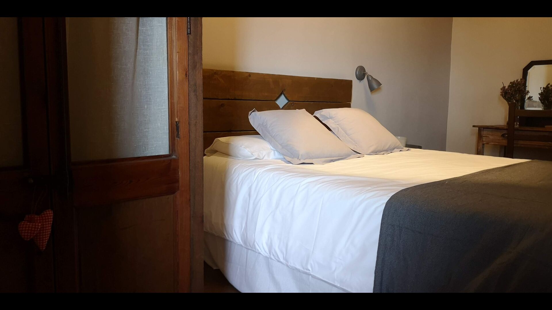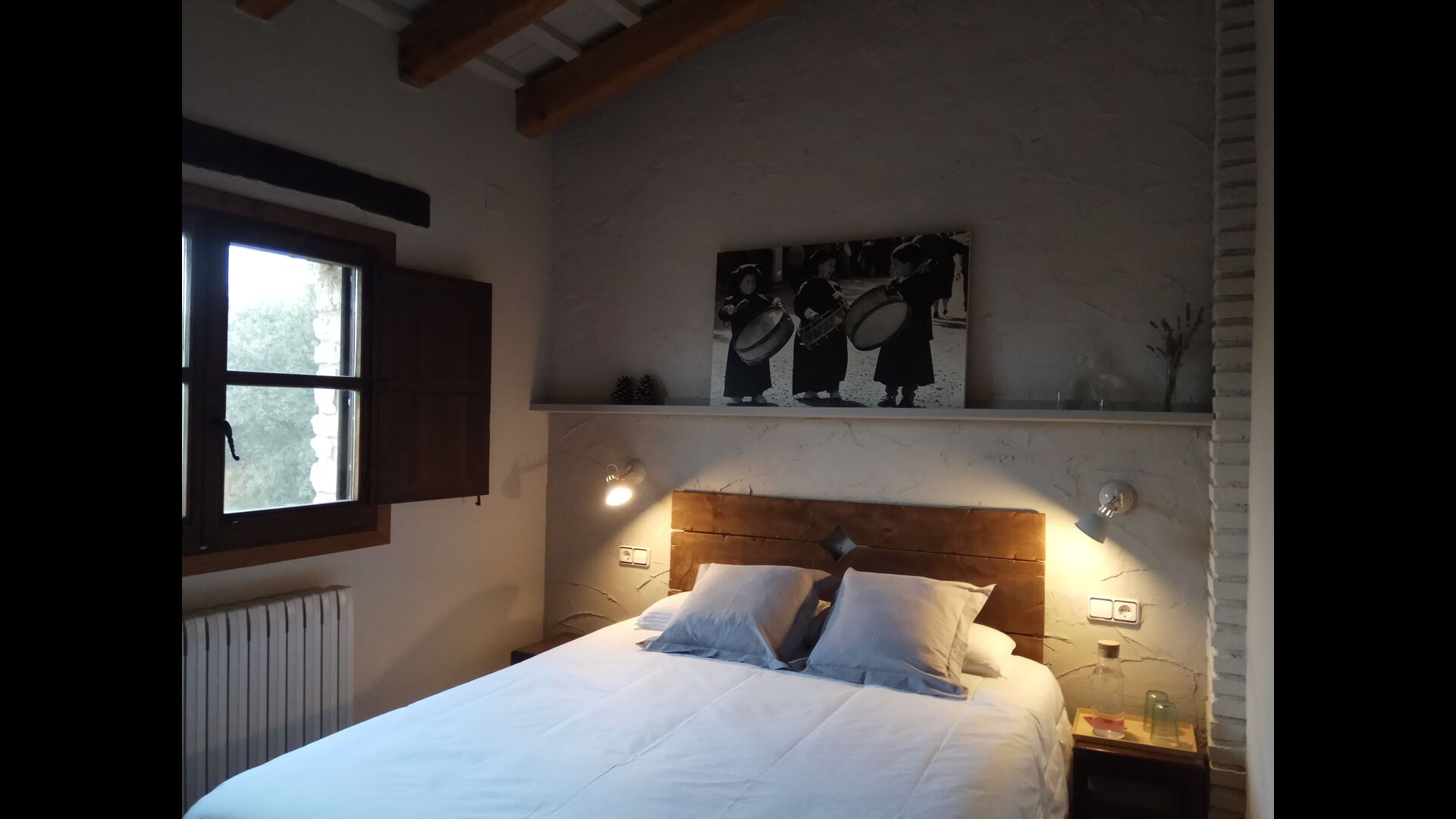 - Mont-Ral: Ein Zimmer mit 1 Doppelbett und eigenem Bad, ausgestattet mit einem klassischen, kleinen katalanischen Holztisch und Blick auf den Garten und die Berge. Die Maße des Bettes betragen 150x190cm.