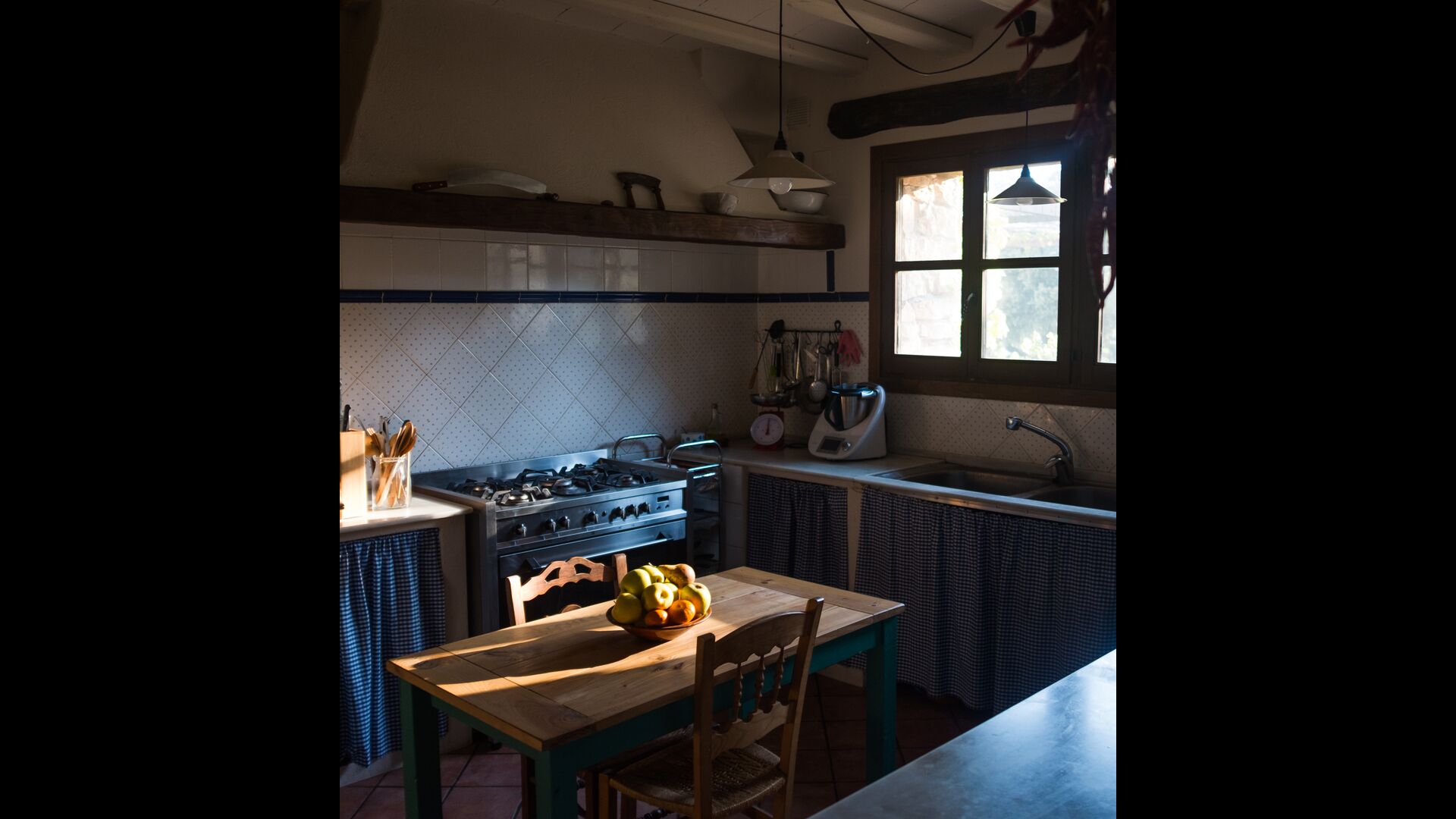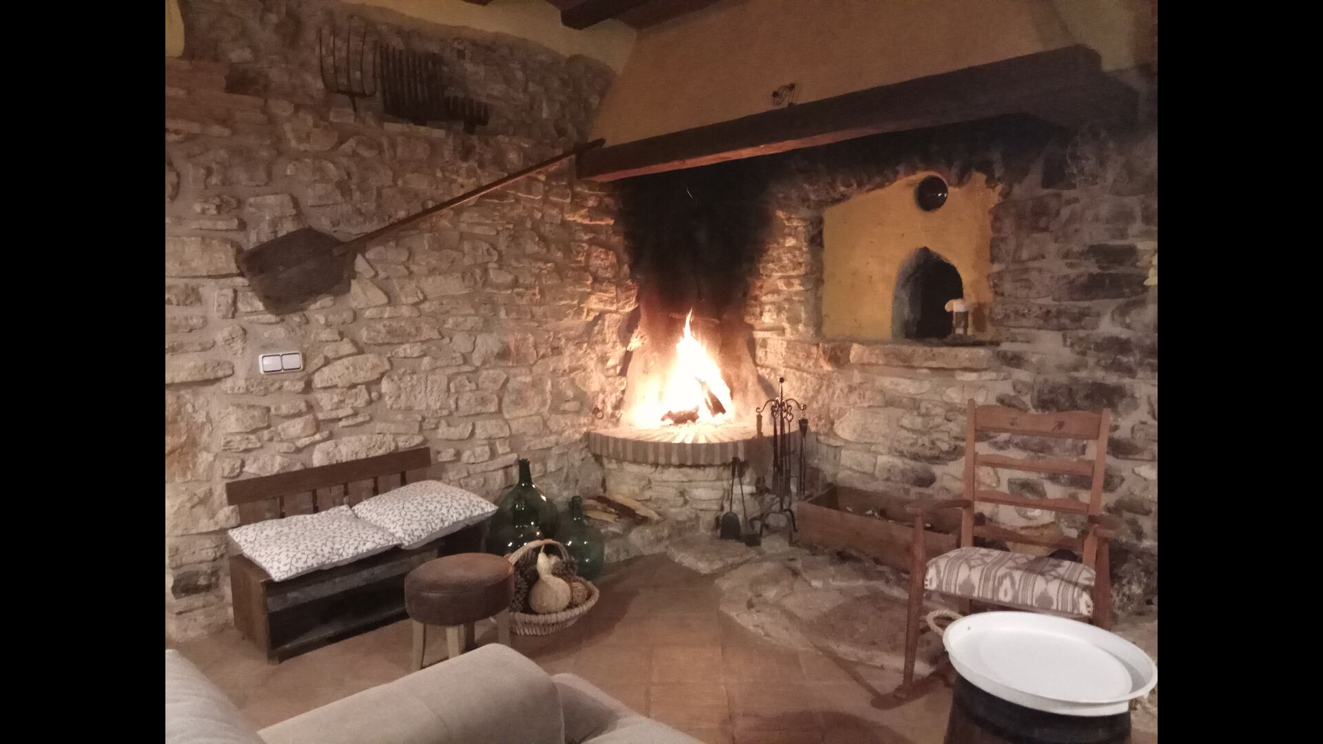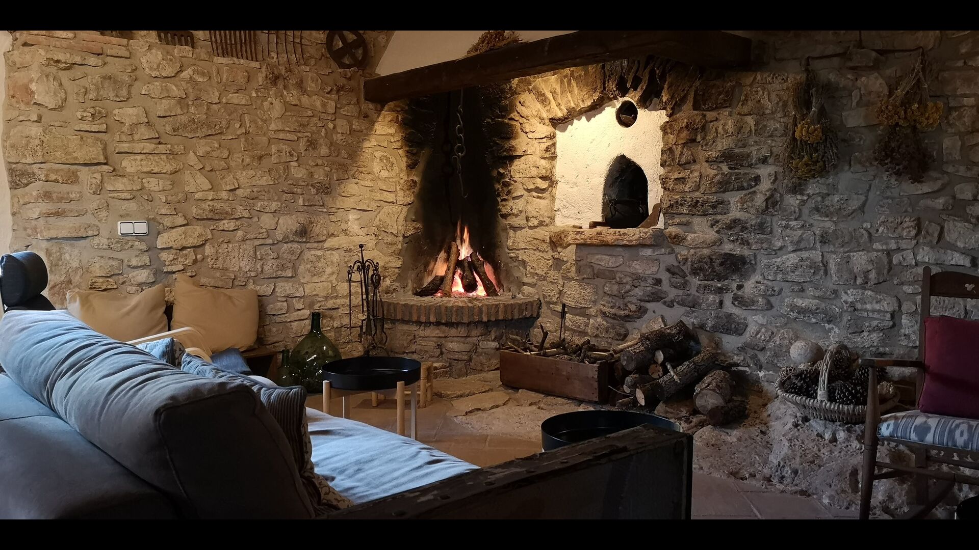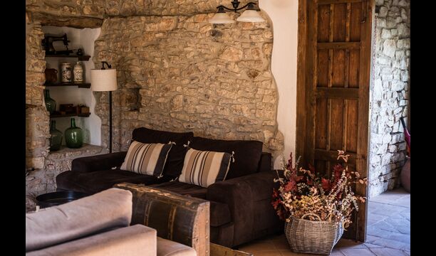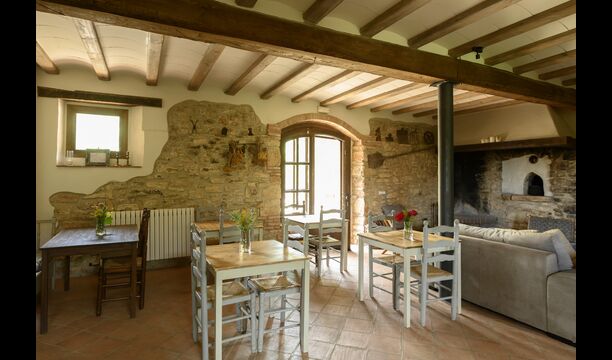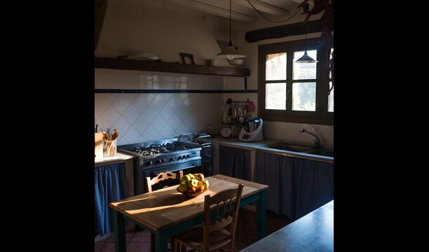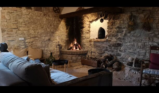 Im Erdgeschoss finden Sie auch einen Lounge-/Wohnbereich mit einem traditionellen Kamin. Setzen Sie sich auf das bequeme Sofa in der Nähe des Feuers und entspannen Sie sich beim sanften Knistern und Knallen des Feuers, während der Abend in die Nacht übergeht. Die gemütlichen und klassischen Steinmauern verstärken nur das Gefühl, in einem maßgeschneiderten Stück katalanischer Ruhe zu leben, und es ist ein idealer Ort zum Entspannen /strong> allein oder mit Freunden/Familie; Entspannen Sie sich, speisen Sie oder genießen Sie angeregte Gespräche bis spät in die Nacht. Im Erdgeschoss finden Sie auch die Küche.