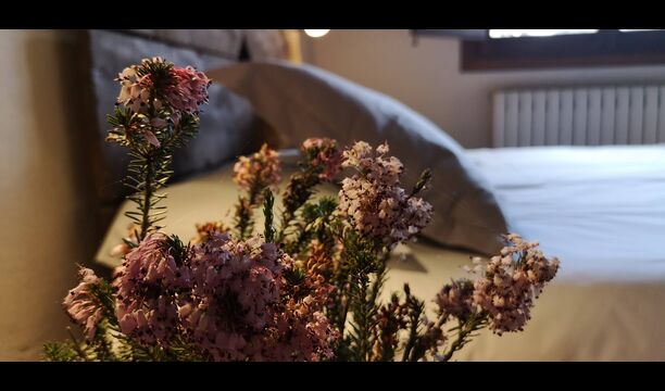 - Farena: Ein Zimmer mit 1 Doppelbett, zwei kleinen Nachttischen mit Lampen und einem eigenen Badezimmer, mit Blick auf den Garten und die Berge, Möglichkeit für ein Zustellbett (35 EUR) und erlaubt Haustiere. Die Maße des Bettes betragen 150x190cm.