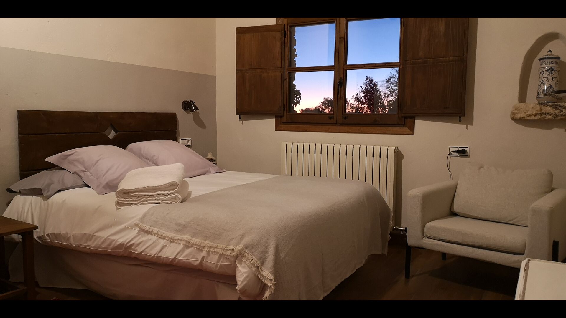 - Rojals: Ein Zimmer mit 1 Doppelbett und eigenem Bad, mit herrlichem Blick auf den Garten und einer Leseecke mit Sofa Stuhl und die Möglichkeit für ein Zustellbett (35 EUR). Die Maße des Bettes betragen 180x190cm.