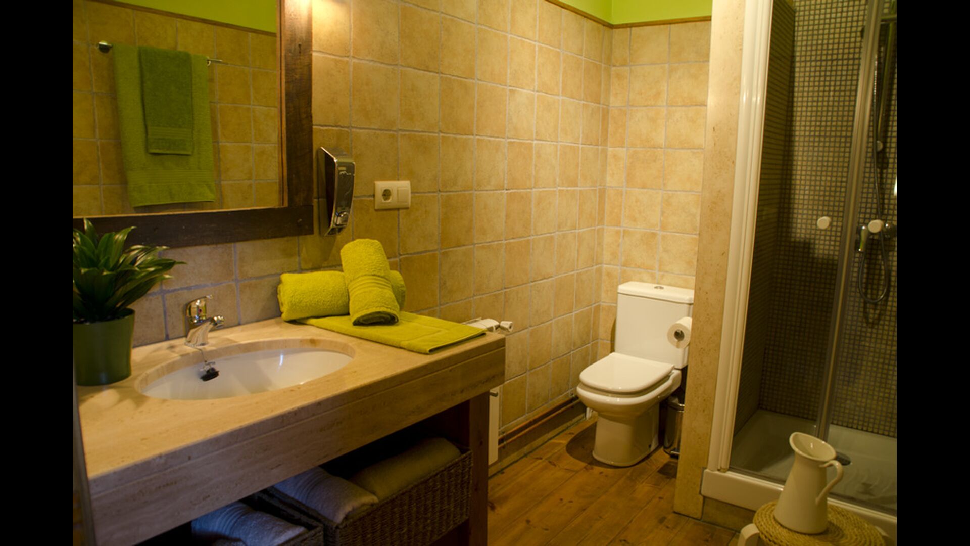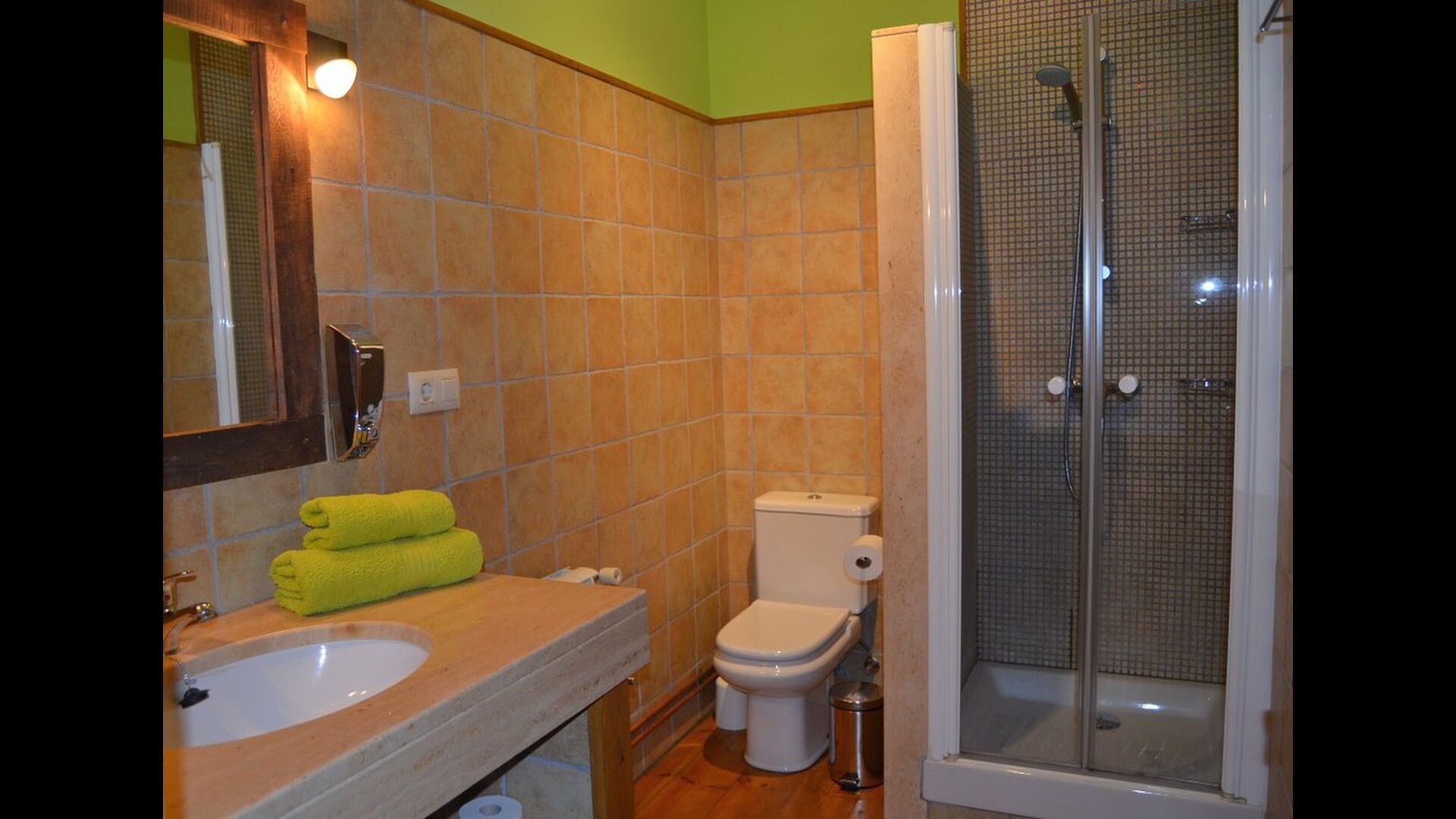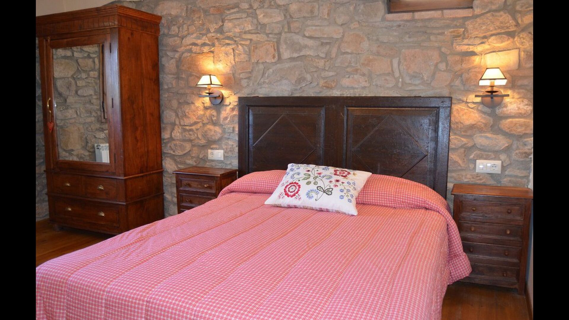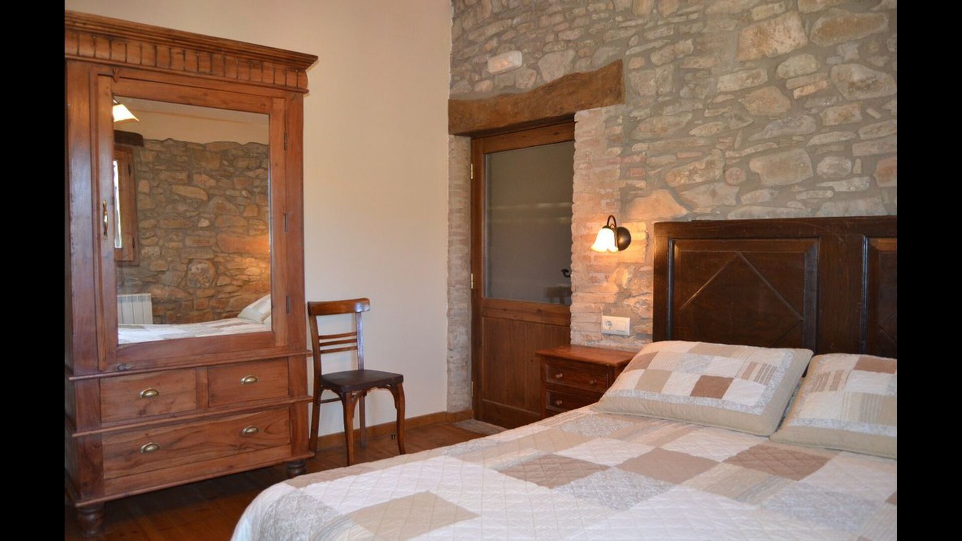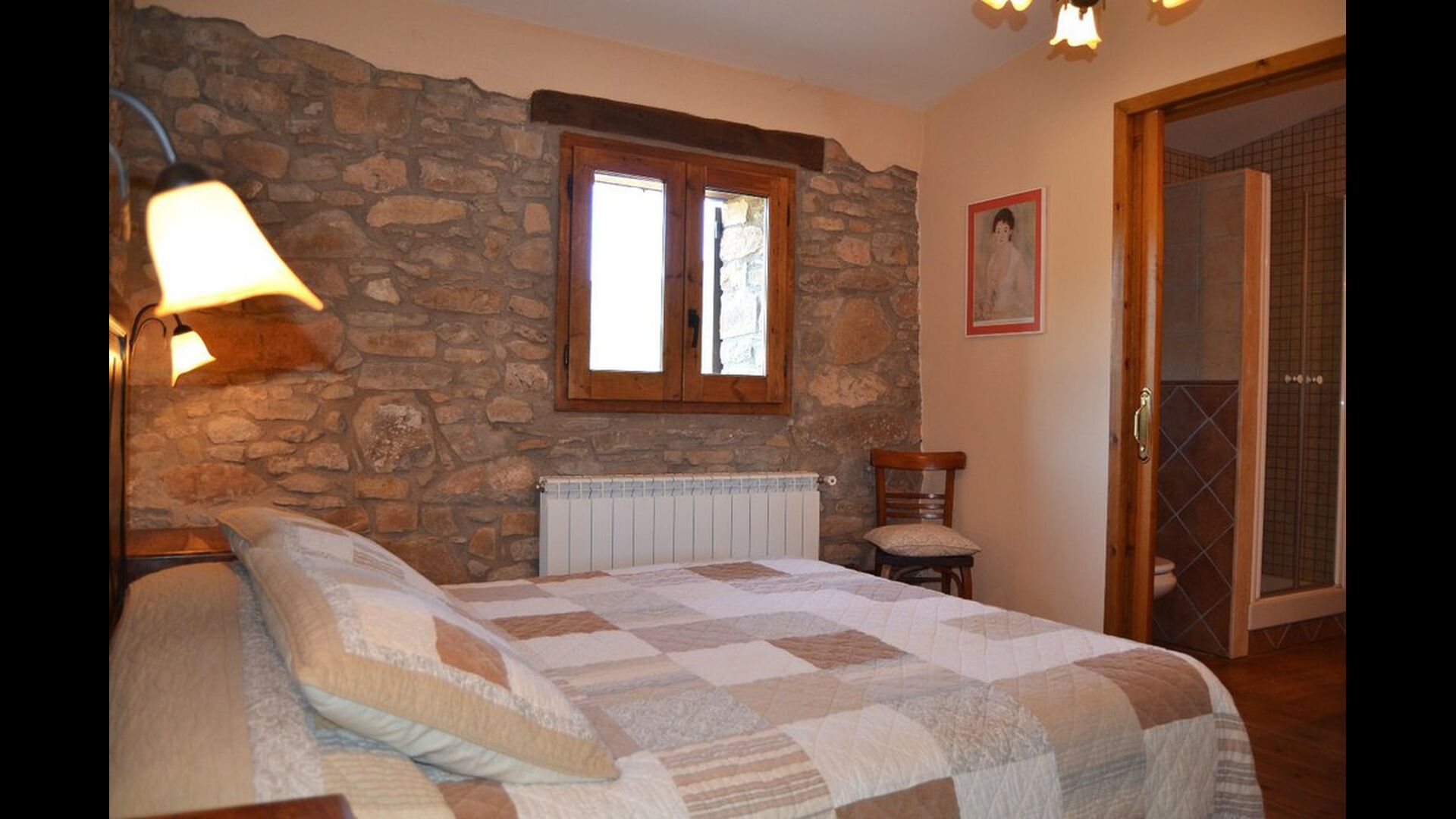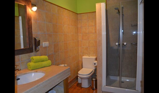 - Die erste Etage erreicht man durch eine Treppe im Esszimmer oder durch einen Eingang von aussen im ersten Stock. Im ersten Stock gibt es eine voll ausgestattete Badezimmer mit Dusche, ein Doppelzimmer, ein Einzelzimmer und ein weiteres Doppelzimmer mit eigenem voll ausgestattetem Badezimmer. Dieses Zimmer hat auch einen Ausgang.