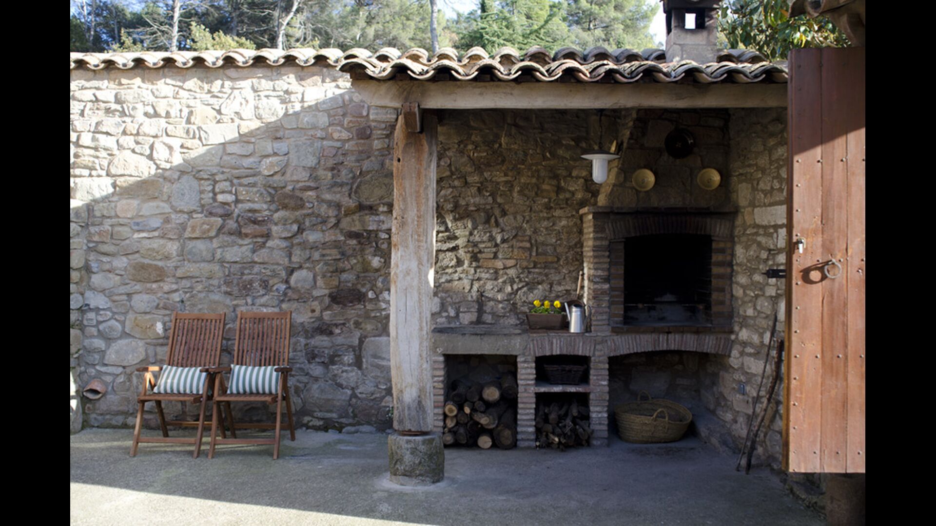 Im Außen gibt es einen privaten Hof mit Terrasse und Grill. im Nachbarhaus wohnt der Besitzer und die beiden Häuser sind von einem wunderschönen Garten umgeben, mit Rasen, Bäumen und viele Punkte mit ausgezeichneten Blick auf das Gebiet, als es sich auf einem Hügel befindet. Es gibt Fahrräder im Haus, die kostenlos benutzt werden können.