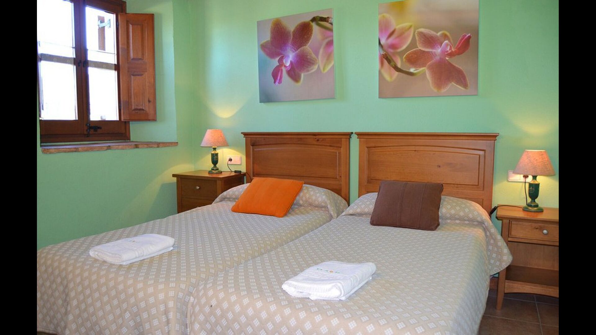 Bei der Ankunft in der Casa Soler fährt man eine schöne Einfahrt entlang, und Sie parken fast vor der Haustür. Am Eingang befinden sich zwei geräumige Doppelzimmer und ein Einzelzimmer. Alle diese Zimmer sind mit eigenen Bädern. Von diesem Schlafzimmer-Bereich geht man weiter zur ersten Etage, und kommt in einen großen Raum. Hier gibt es drei schöne Doppelzimmer - alle mit eigenen Bädern. .