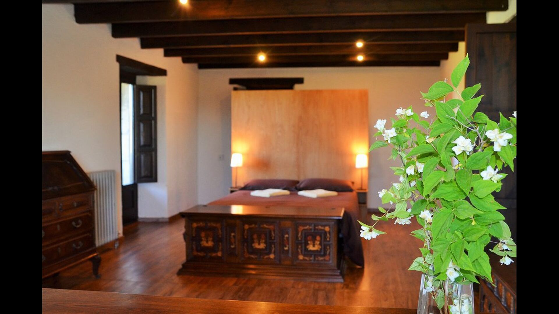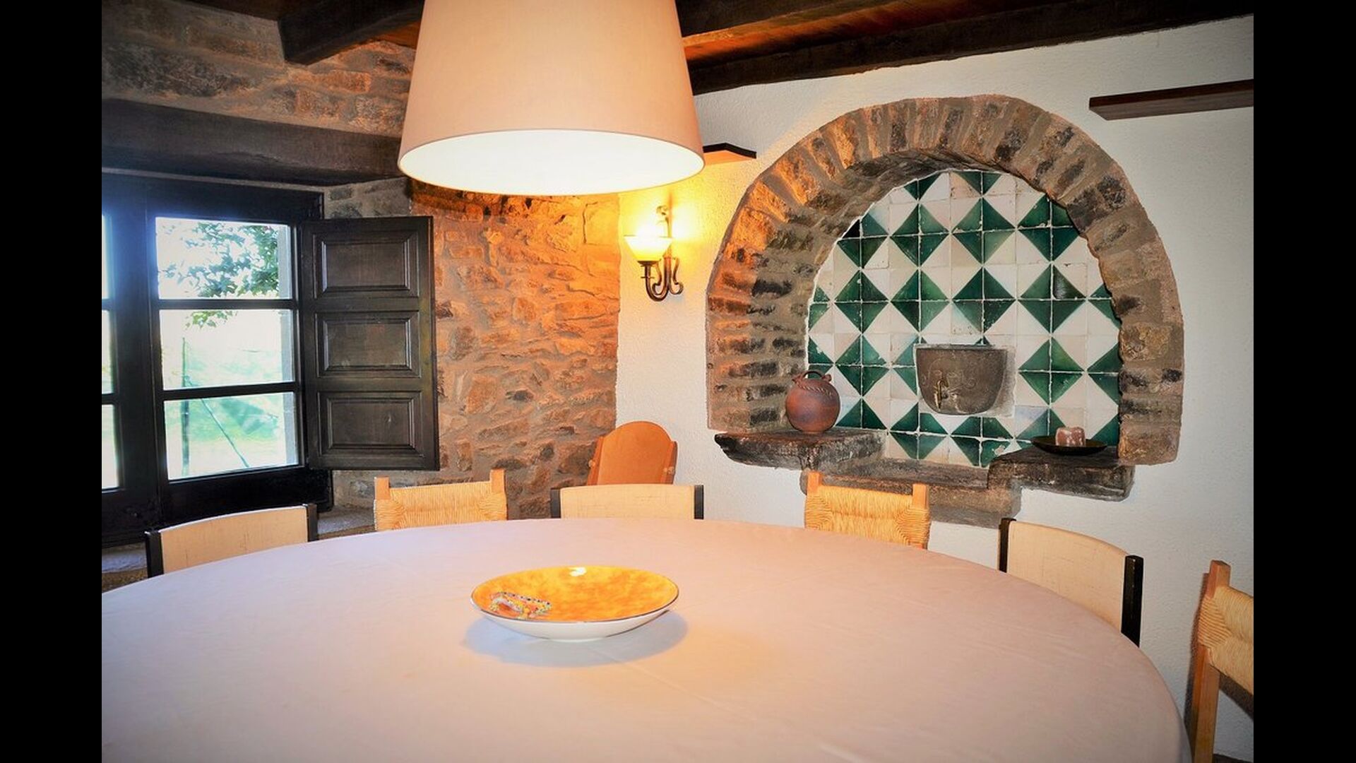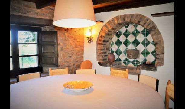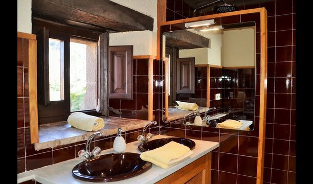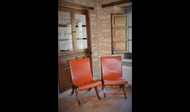 Es ist leicht vorstellbar, wie der Vater des heutigen Besitzers, der ein berühmter katalanischer Schriftsteller und Philosoph war, seine Inspiration bekam. Man hat, unter der sorgfältigen Restaurierung des Hauses, einen Hauch von diesem behalten, die vor allem in der gemütlichen Wohnraummit schönen Stühlen im Erdgeschoss und im sehr großen Schlafzimmer im ersten Stock, zu sehen ist, wo ein Schreibtisch mit Blick auf den Garten und das Tal immer noch da ist.