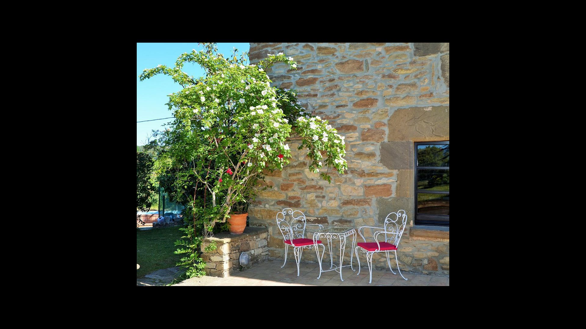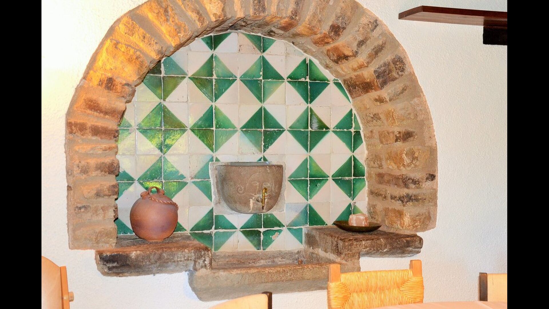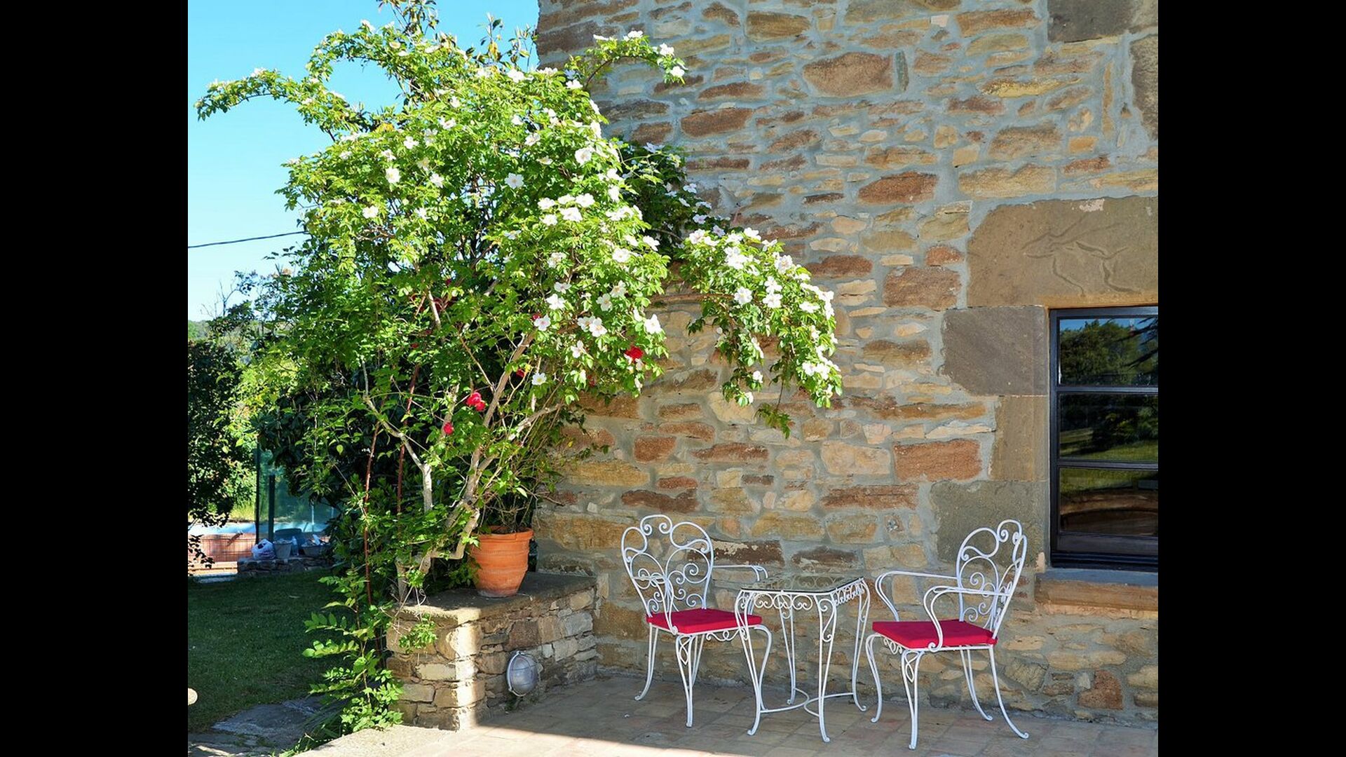 Es ist leicht vorstellbar, wie der Vater des heutigen Besitzers, der ein berühmter katalanischer Schriftsteller und Philosoph war, seine Inspiration bekam. Man hat, unter der sorgfältigen Restaurierung des Hauses, einen Hauch von diesem behalten, die vor allem in der gemütlichen Wohnraummit schönen Stühlen im Erdgeschoss und im sehr großen Schlafzimmer im ersten Stock, zu sehen ist, wo ein Schreibtisch mit Blick auf den Garten und das Tal immer noch da ist.