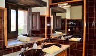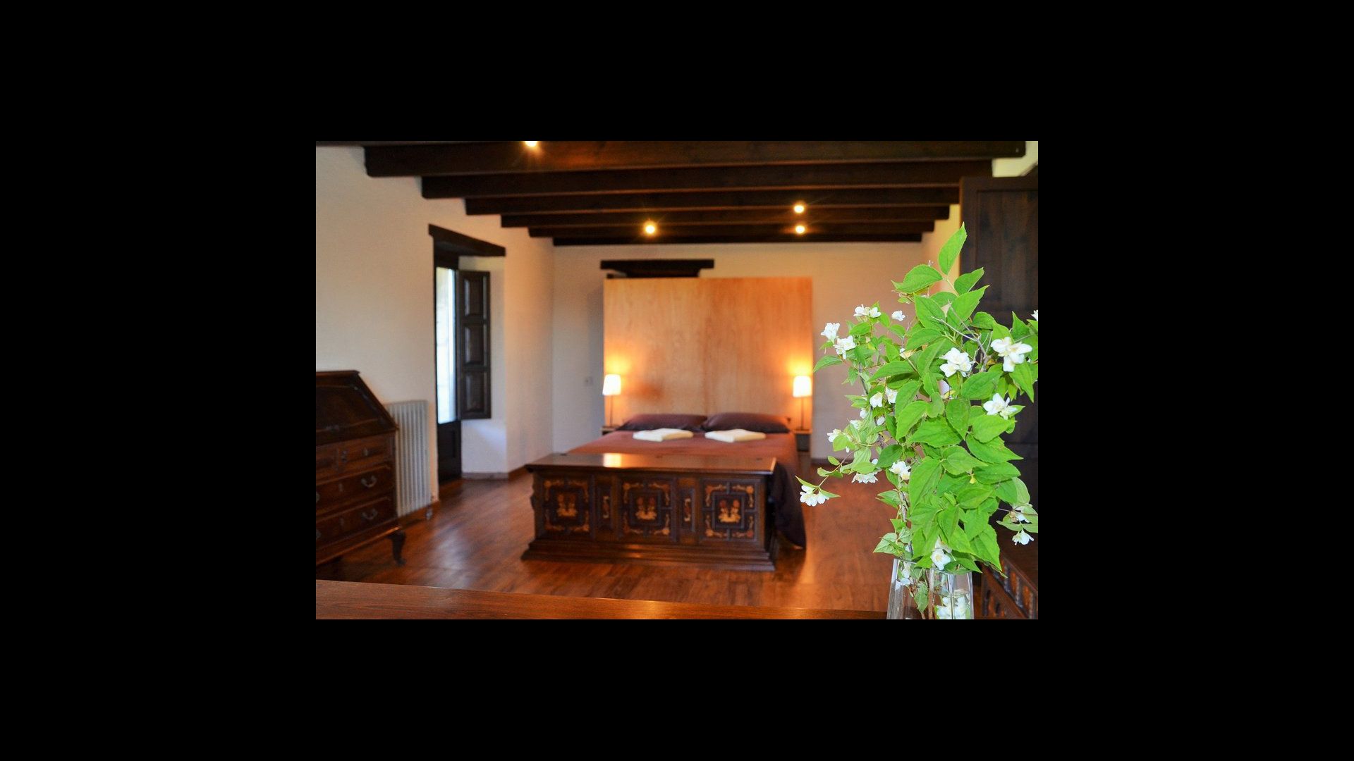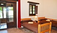 Wenn Sie auf der ersten Etage kommen, gibt’s links ein sehr schönes Schlafzimmer mit Doppelbett und mit einigen sehr schönen Details und Blick auf den Garten. Darüber hinaus gibt es eine kleine Toilette. Der nächste ist das größte Schlafzimmer mit einem Doppelbett und zwei Balkone mit Blick auf den Poolbereich und die Berge. Der Schreibtisch, an dem es viele Bücher geschrieben sind, ist immer noch da als eine angenehme Erinnerung an die Geschichte des Hauses. Wenn nötig, gibt es einige zusätzliche Betten, dass gegen Zuschlag, hier eingestellt werden können. Dieses Schlafzimmer hat eigenes Bad. Schließlich gibt es ein drittes geräumiges Doppelzimmer mit eigenem Bad.
