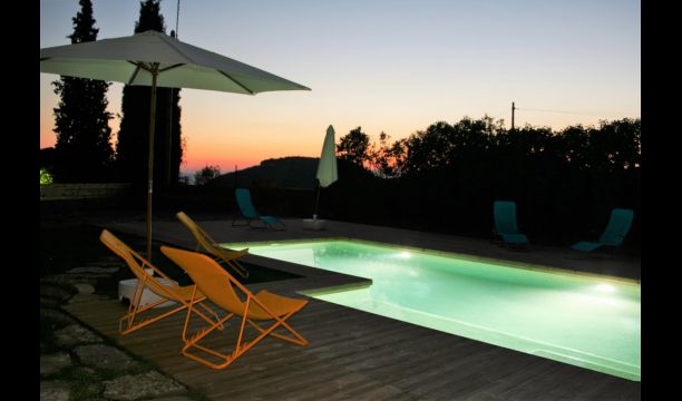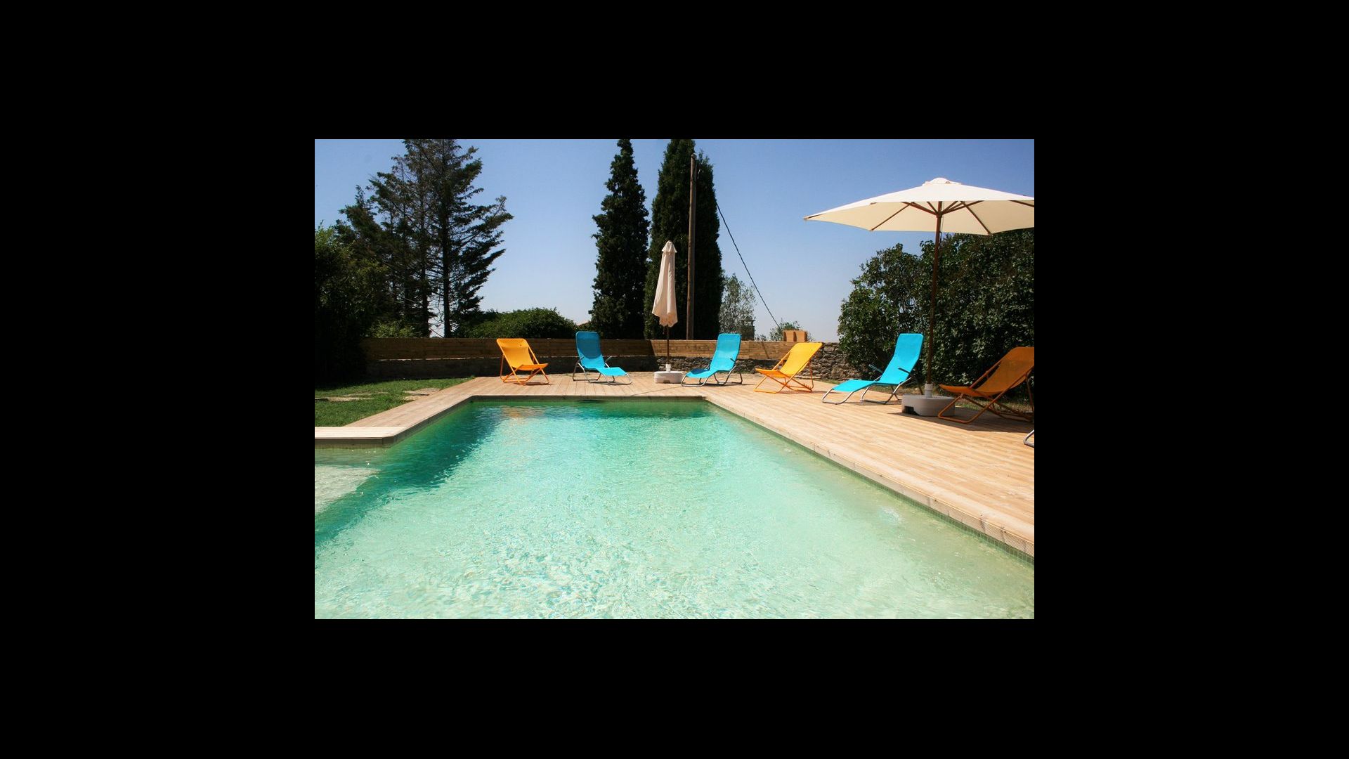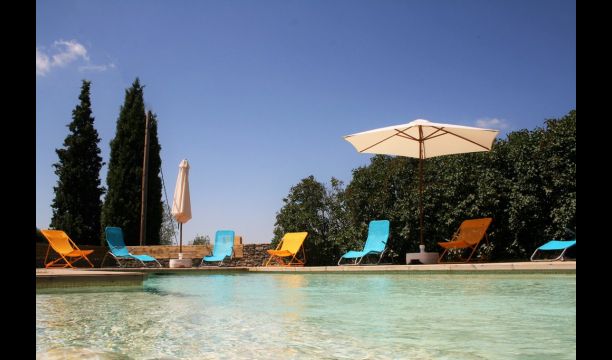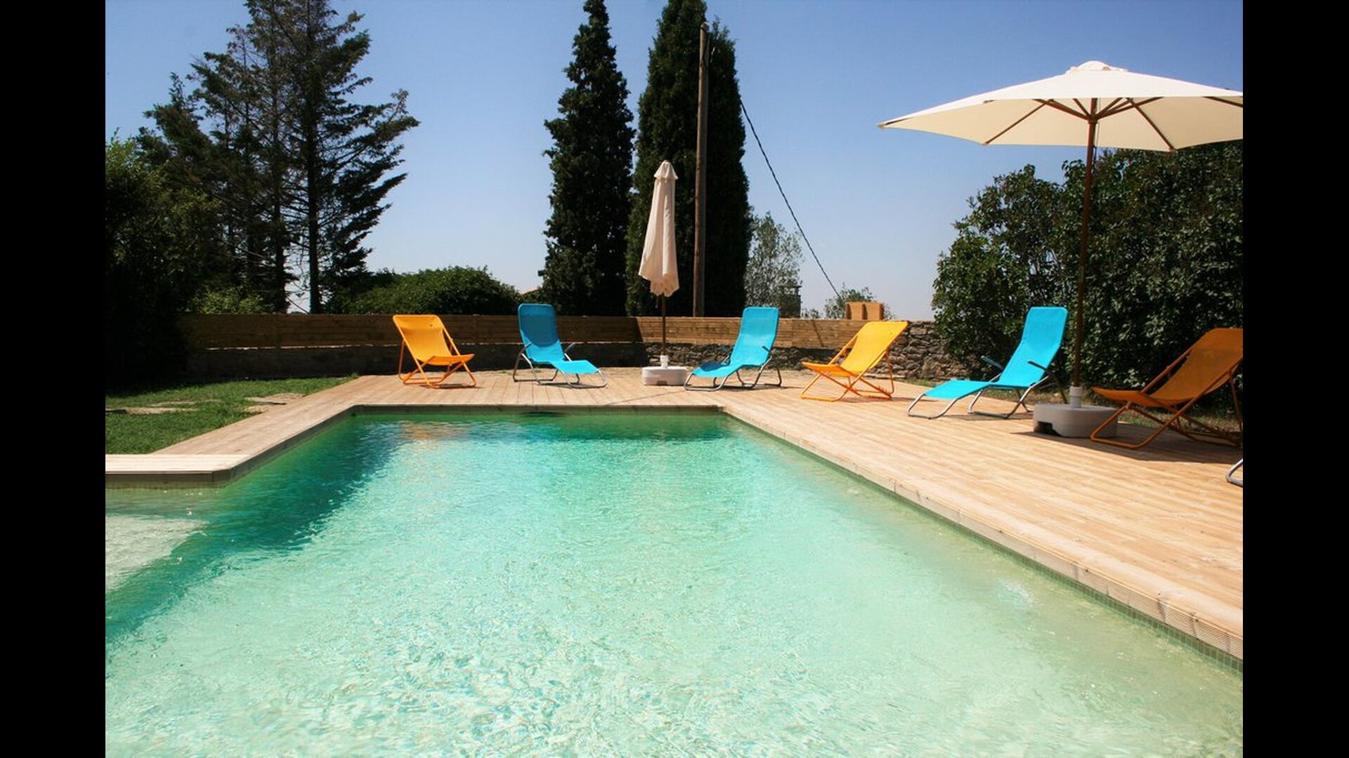 Der Poolbereich ist die perfekte Aufenthaltsort im warmen katalanischenSommer. Es ist sehr gut für kleine Kinder geeignet, da es sowohl eine kleine Treppe als auch einen flachen Bereich hat. Der Hauptteil der Pool ist 8x4 Meter und damit perfekt für ein wenig schwimmen. Die Holzterrasse mit Liegestühlen ist ideal fü Sonnenbaden, oder Sie können eine schattige Ecke wählen, wenn es zu heiß wird.