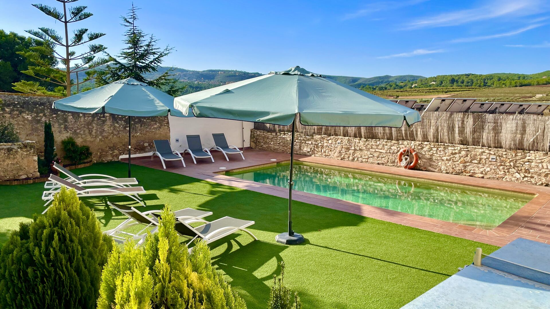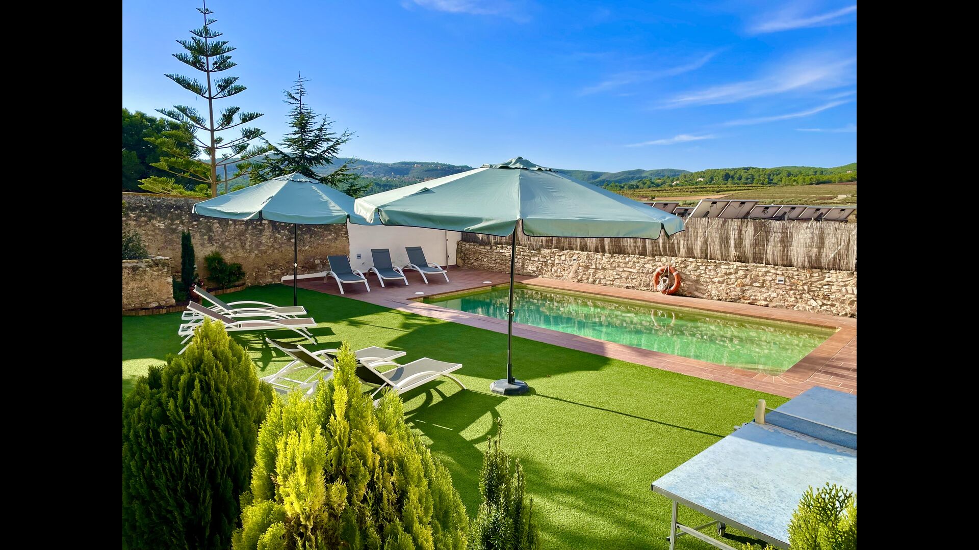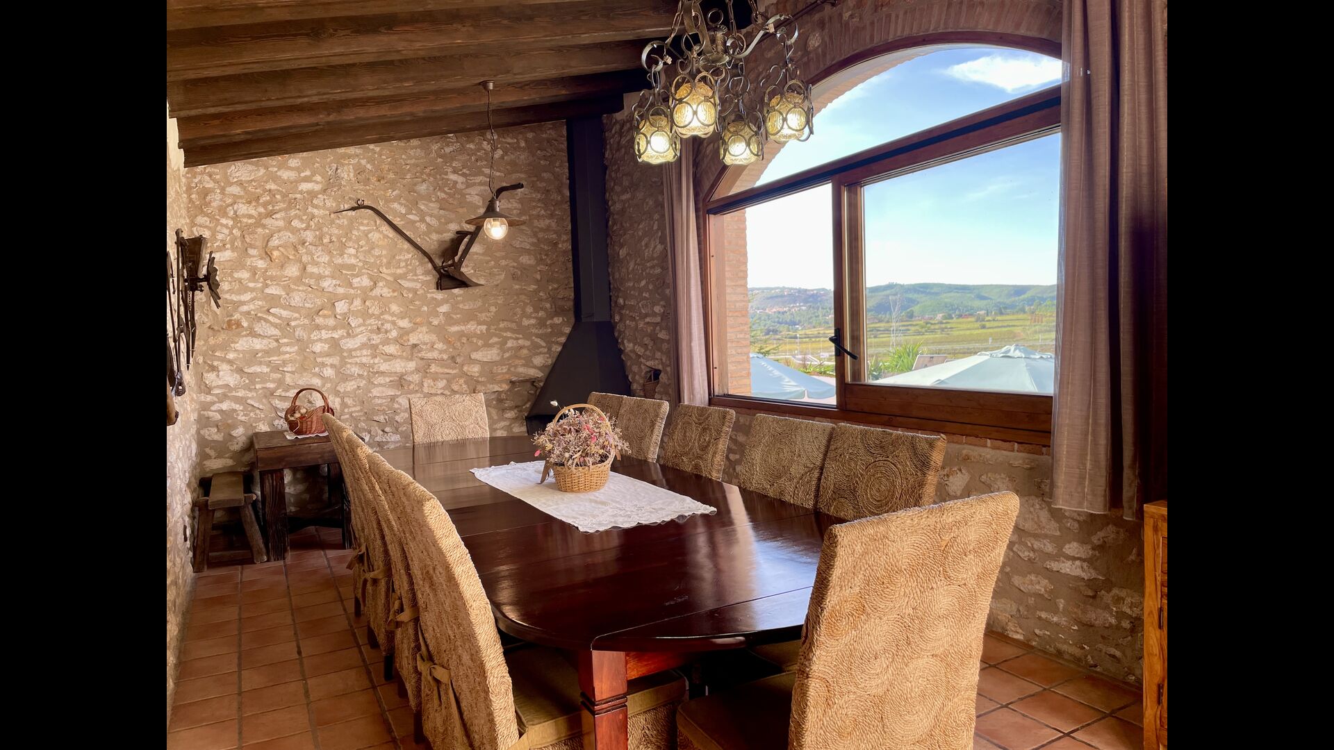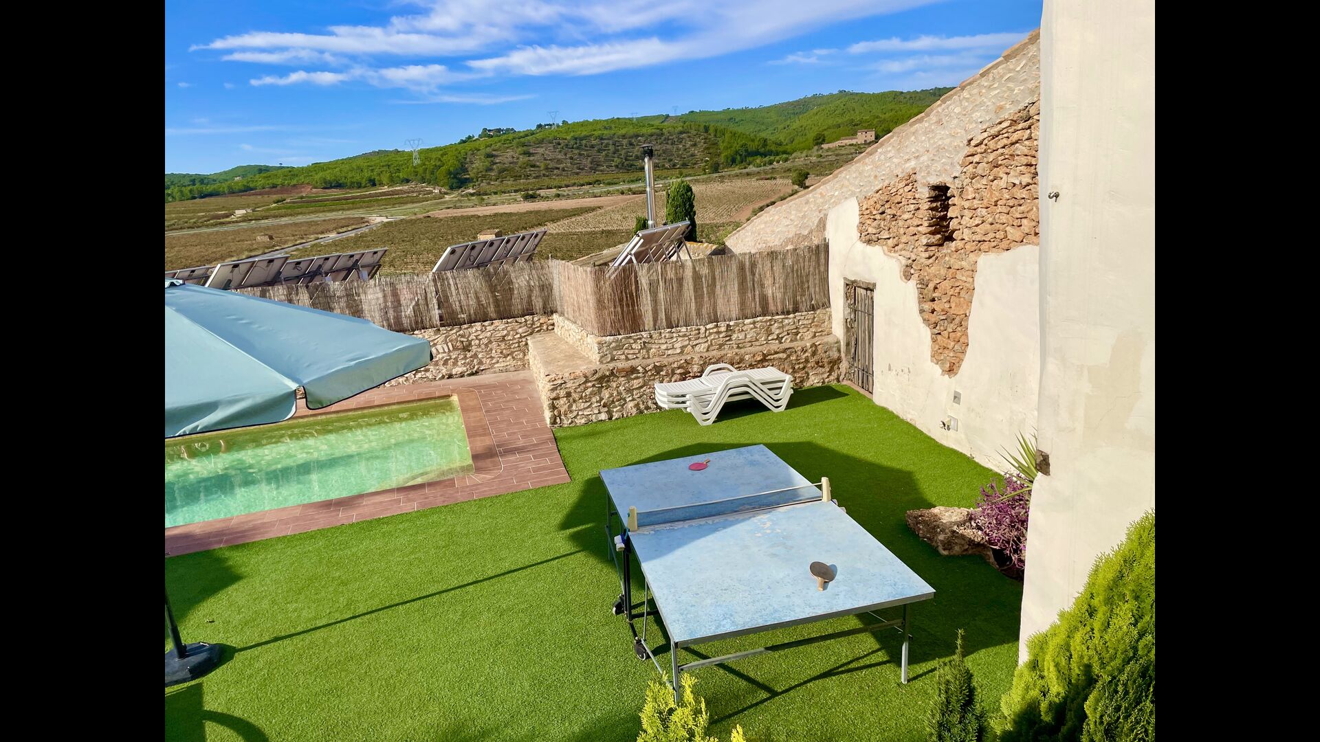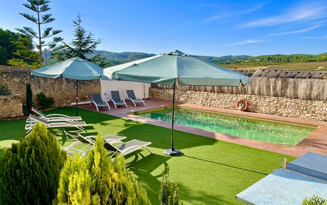 Dies ist das Ferienhaus, von dem Sie nur träumen können– liegt mitten in einem Weinberg – mit nur 10 km. zu den Stränden der Costa Daurada und nur wenige Gehminuten vom nächsten Dorf entfernt. Diese außergewöhnliche Villa bietet einen herrlichen Poolbereich mit einem überdachten Ruhebereich mit wirklich bequemen Sonnenliegen, Jacuzzi, Sauna und einem Spielsaal mit Billard und Tischtennis . Der Innenhof verfügt über einen Grillbereich und hier befindet sich auch der Eingang zu einem überdachten Essbereich im Erdgeschoss. Der Blick über den Weinberg ist hervorragend und das 500 m² große Ferienhaus Masia Lagostea wurde mit einem fantastischen Sinn für seine Geschichte dekoriert!